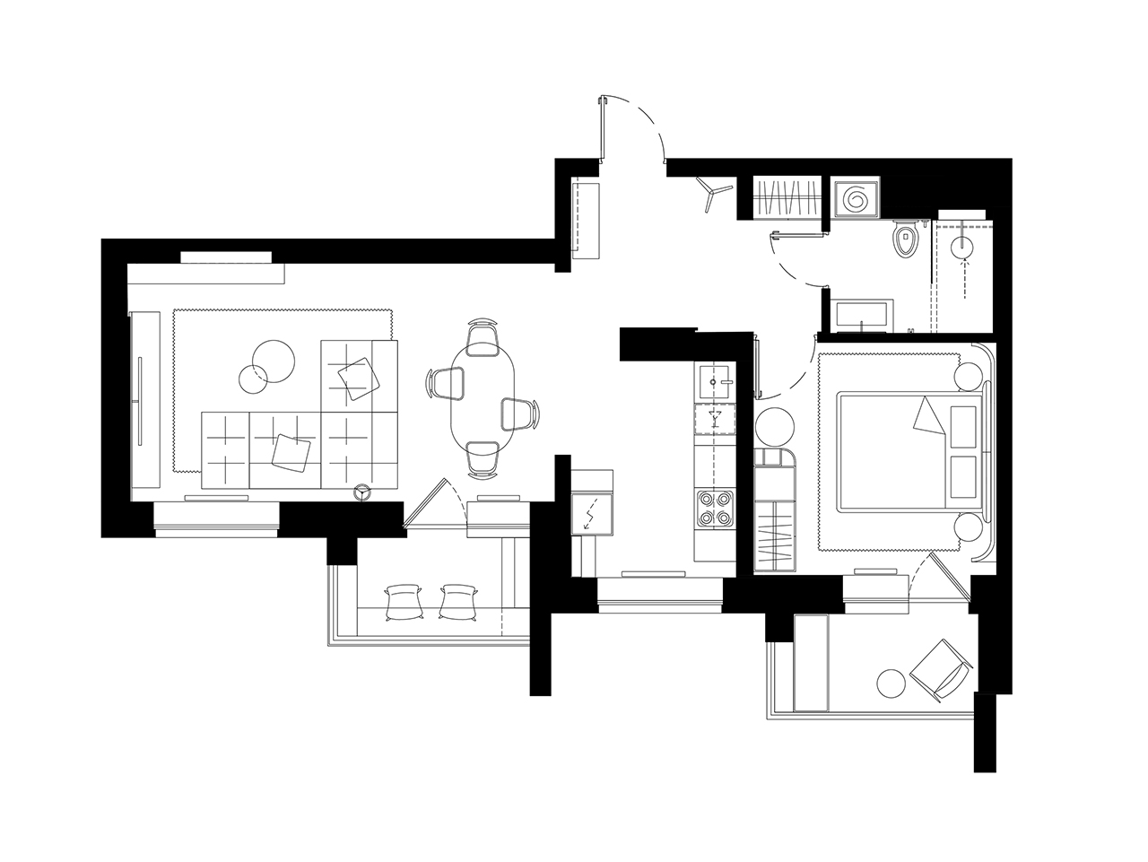 Хозяин этой квартиры, молодой айтишник, обратился к нам с задачей создать брутальный интерьер, при этом уютный и не слишком мрачный. Интерьер, рассчитанный на одного человека, но с перспективой совместного проживания с девушкой.