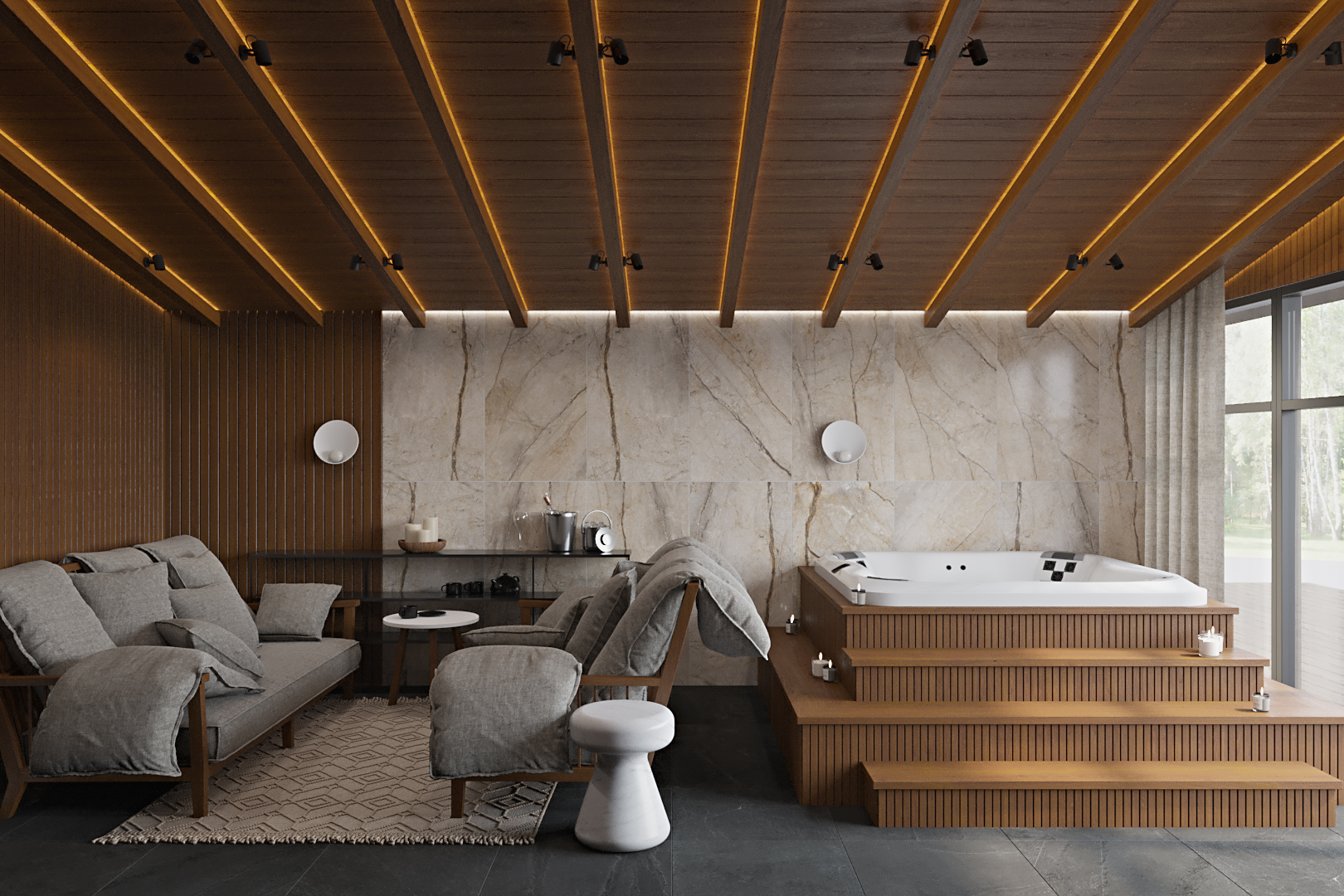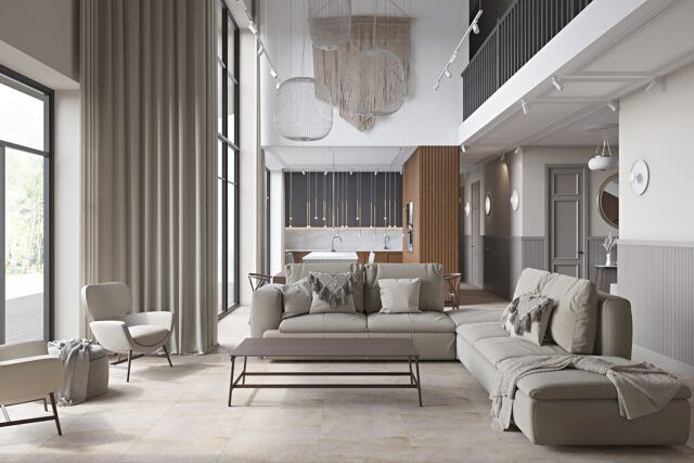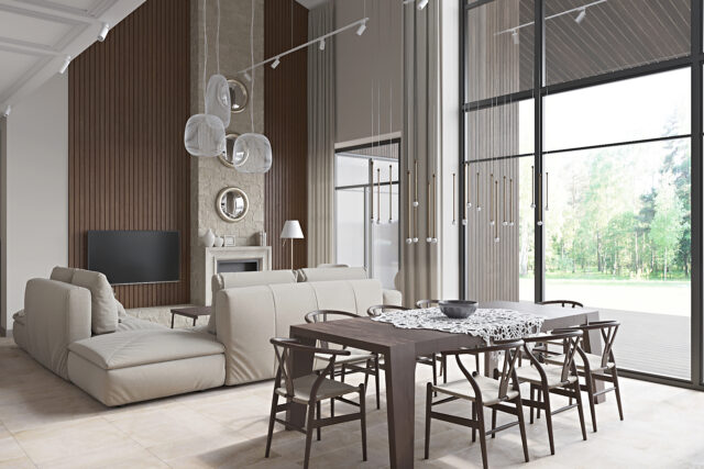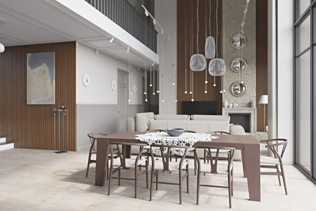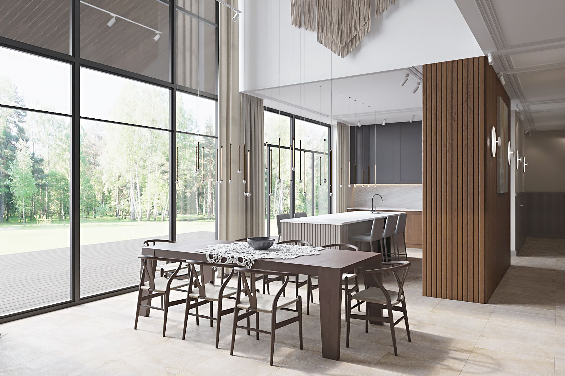 Концепция дизайна интерьера проекта AB-6.Заказчиком была поставлена задача совместить желание иметь атмосферу загородного дома, все удобства современного интерьера и любимые для хозяев элементы классических интерьеров. Дом находится в живописном месте среди буйствующей природы и аутентичной атмосферы загородной жизни. Благодаря большим окнам красота природы вошла в интерьер и задача дизайнера была оставить виды из окон важными, но в тоже время вписать все предпочтения и взгляды заказчика в атмосферу дома, учесть архитектуру строения. Этот дом должен создавать настроение умиротворения, отдыха и гармонии, собирать всю семью за большим столом.