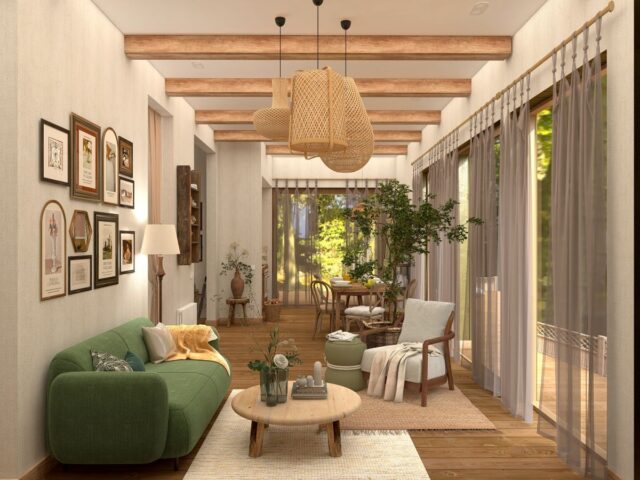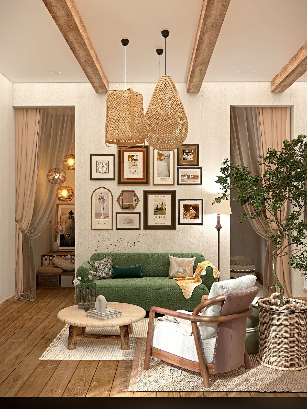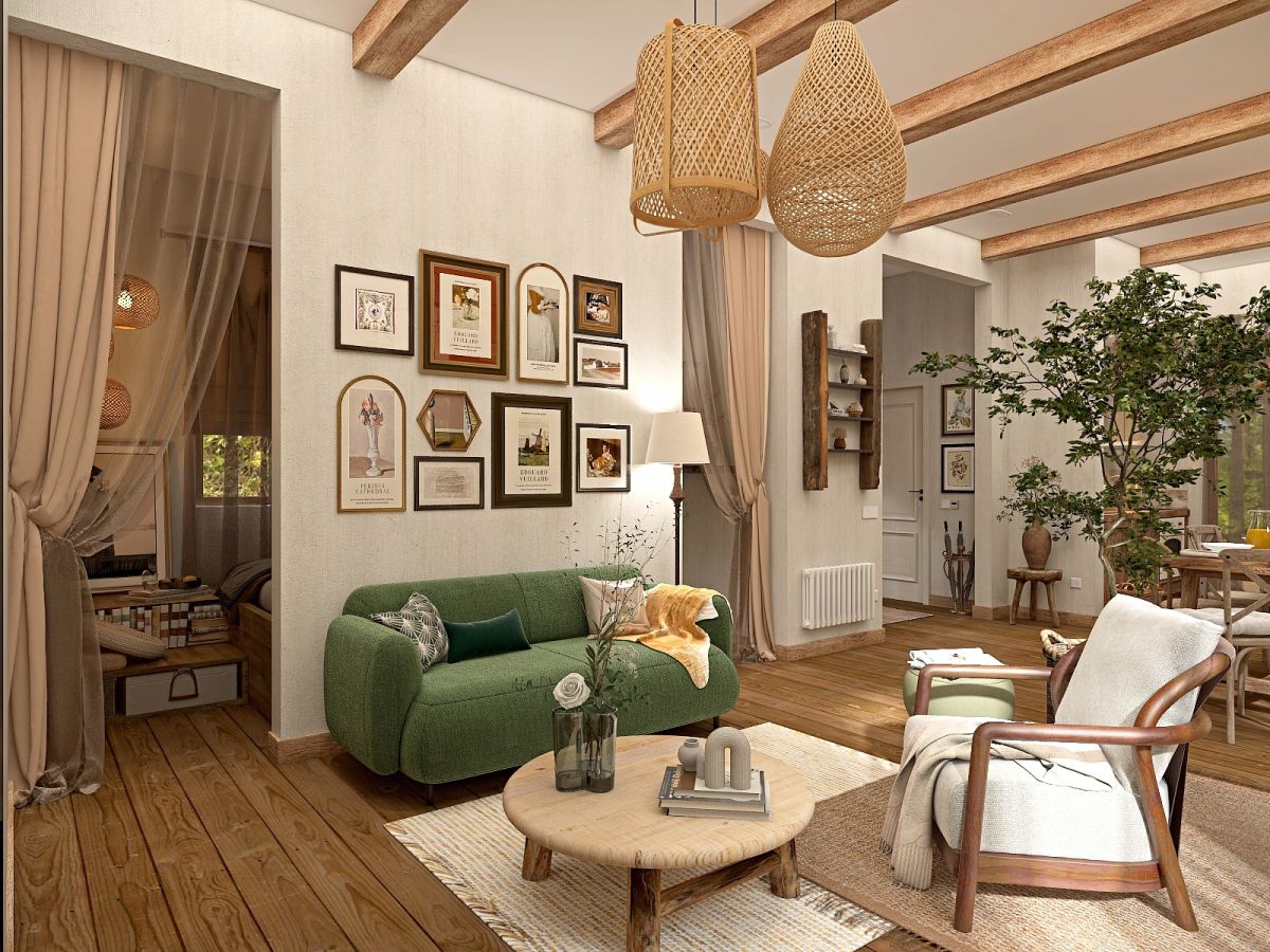 «Green house. Back in nature» — это дизайн-концепция, возвращающая человека к гармонии с природой через интерьер, где каждая деталь дышит естественностью и осознанностью. Интерьер строится на сочетании грубоватых текстур и теплых натуральных материалов, создавая убежище от городской суеты.