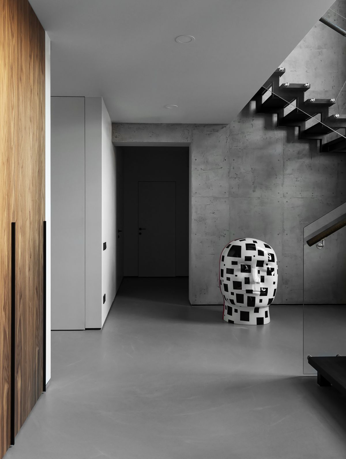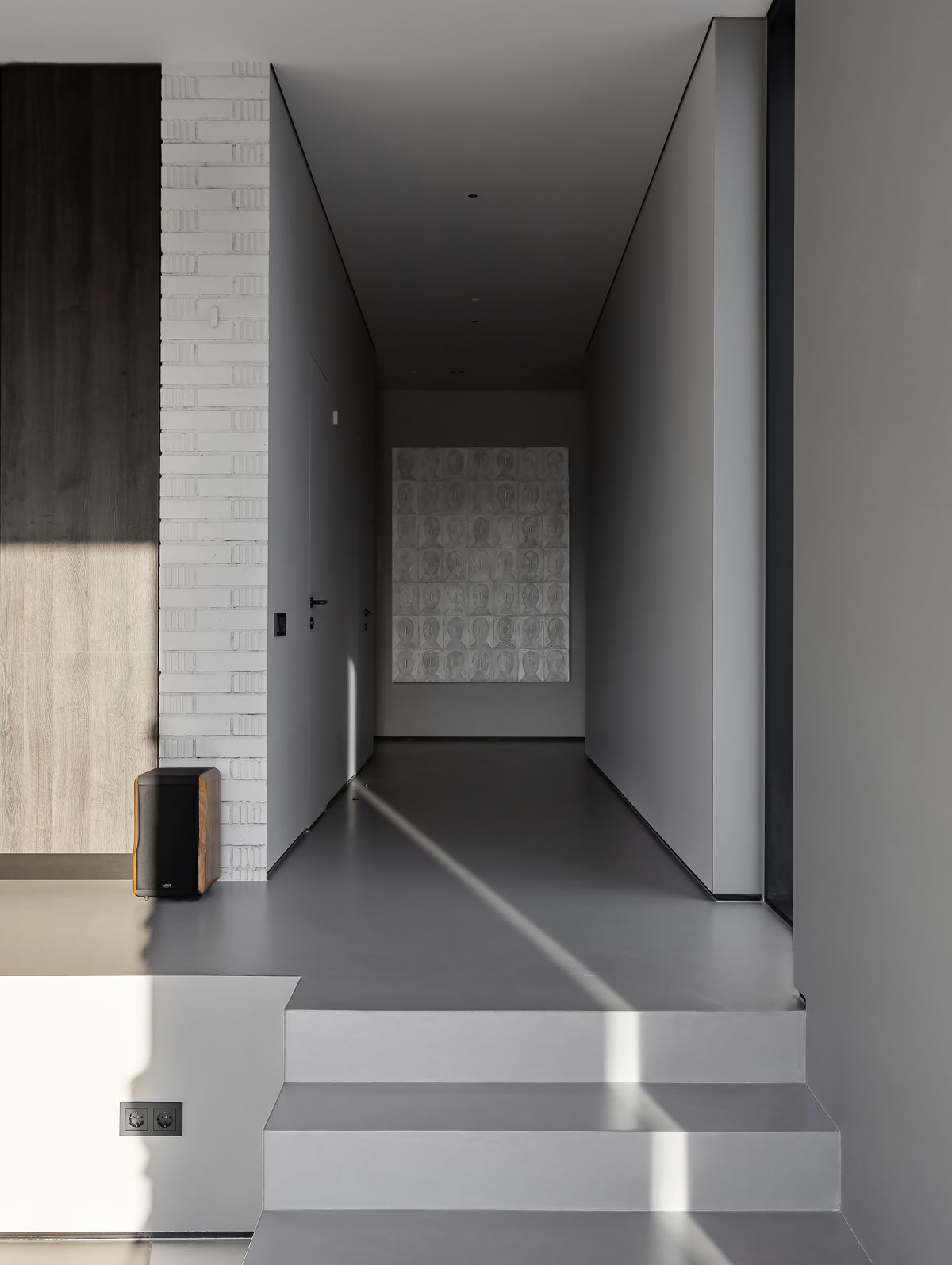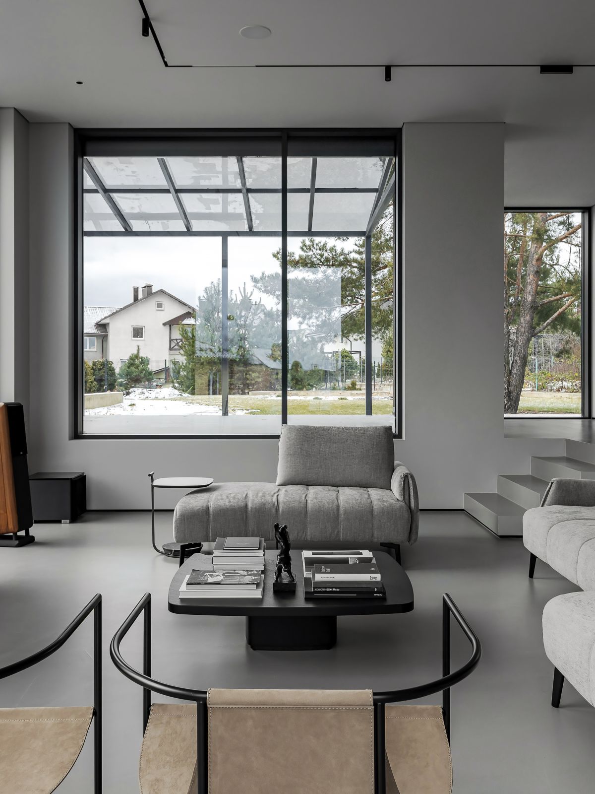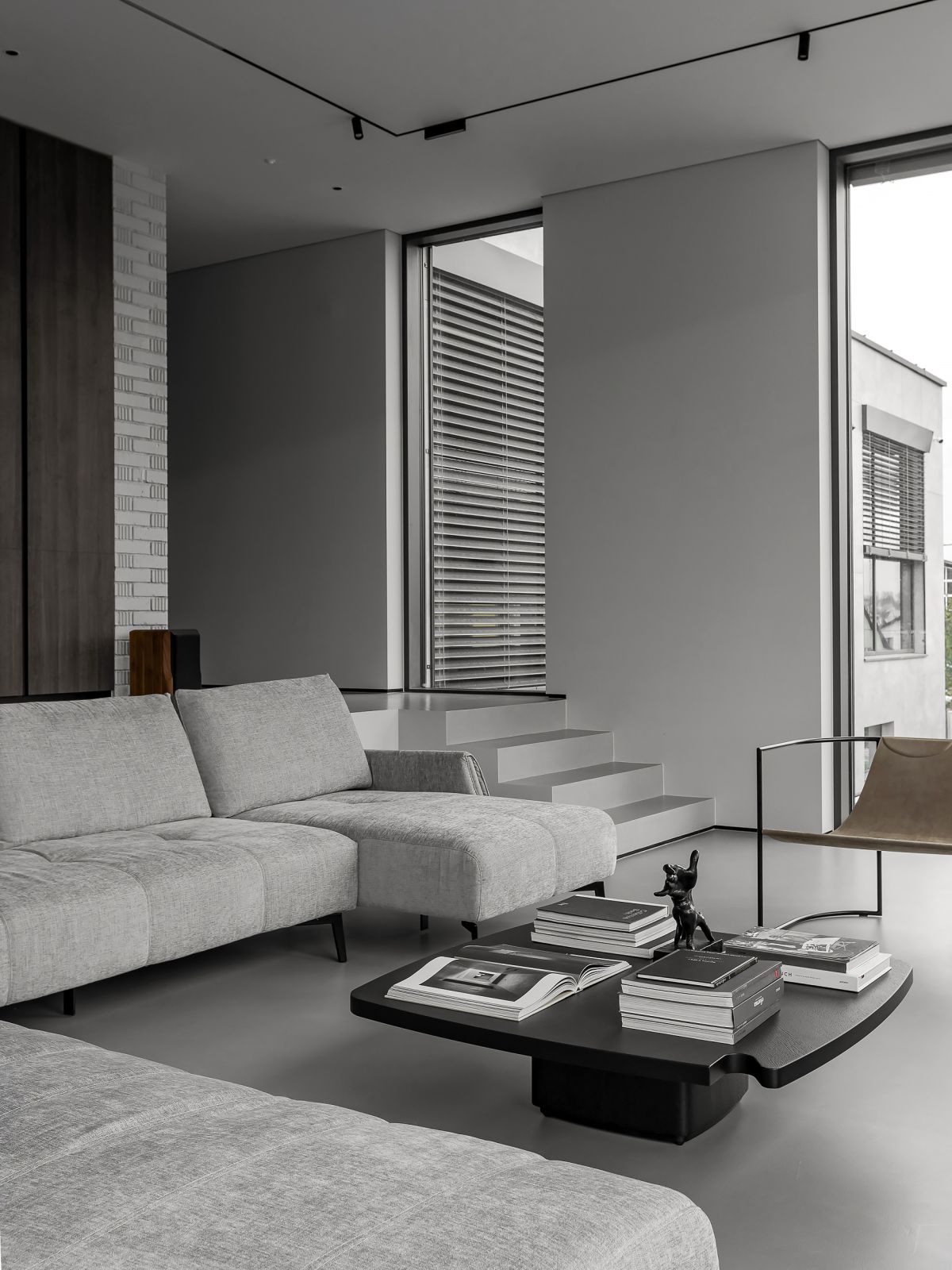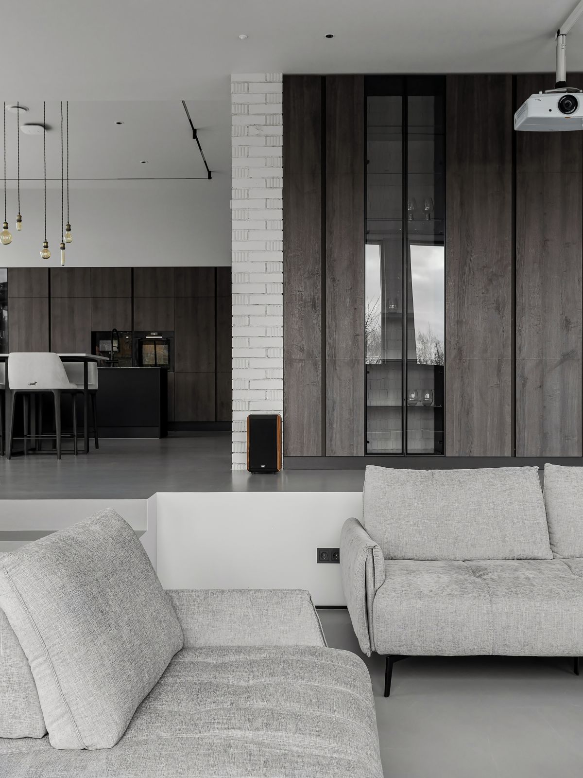 Любовь к минимализму, перетекающее пространство, гармония между интерьером и экстерьером, проникновение и взаимодействие – основная концепция этого интерьера.