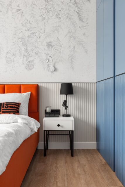 Этот интерьер – яркий пример смелого сочетания цветов и фактур, где современные формы встречаются с уютными акцентами. В основе проекта – баланс между насыщенными оттенками и нейтральными поверхностями, создающий ощущение динамики и гармонии.