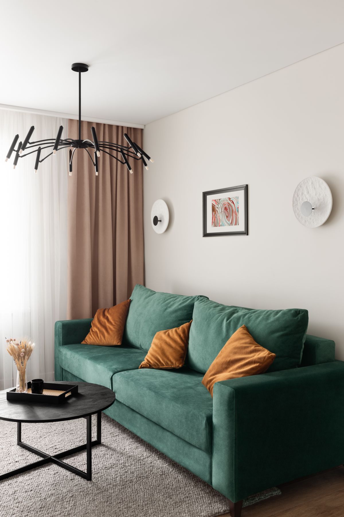 Этот интерьер – о смелости, уюте и эстетике современного городского стиля, где каждая деталь дополняет общую композицию.