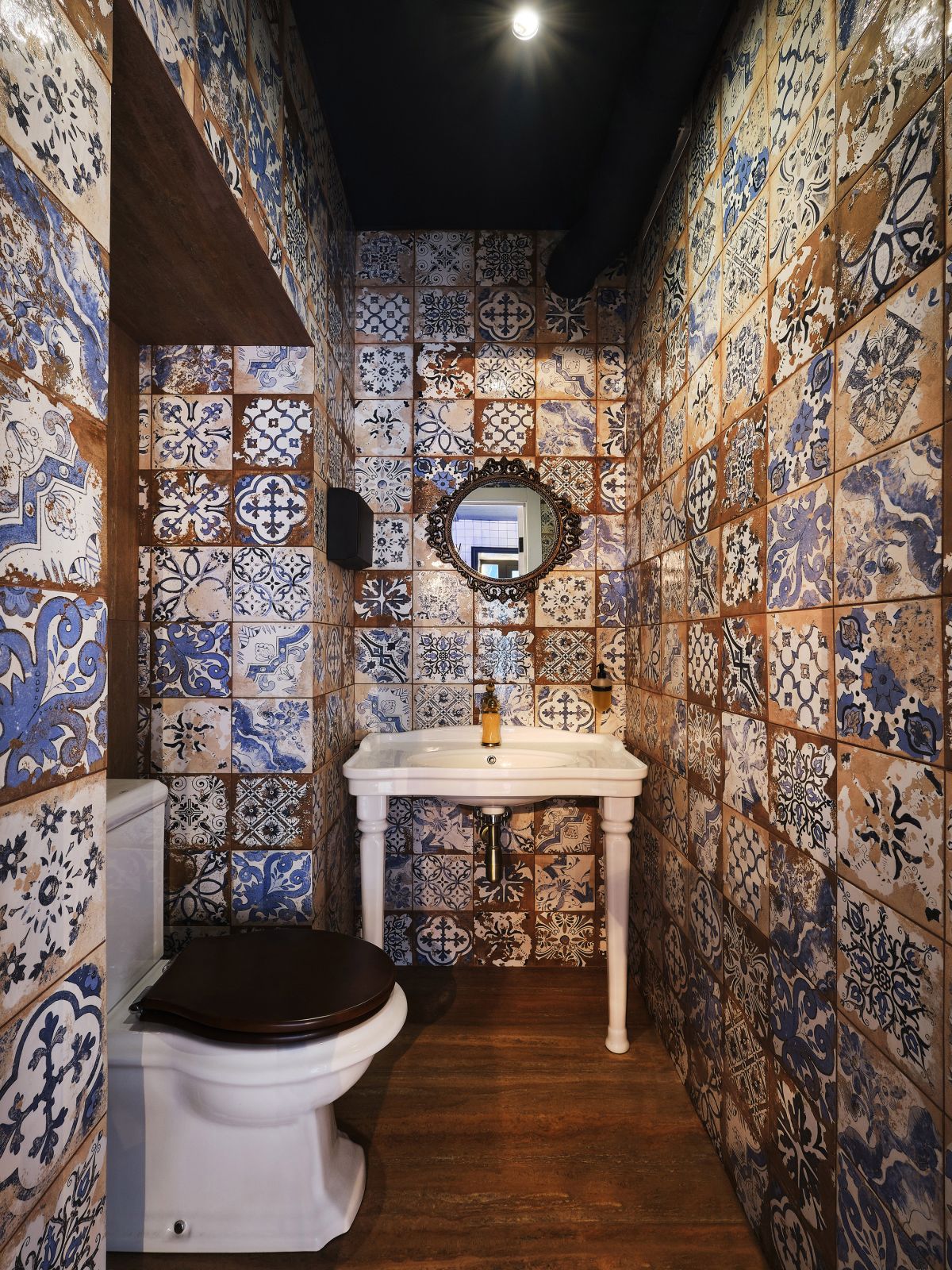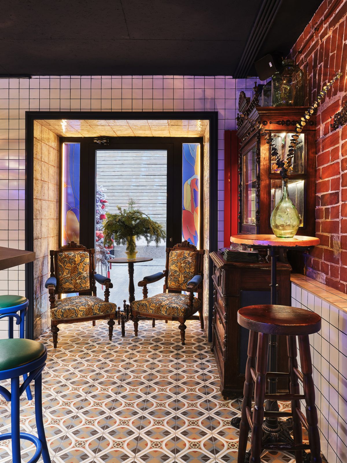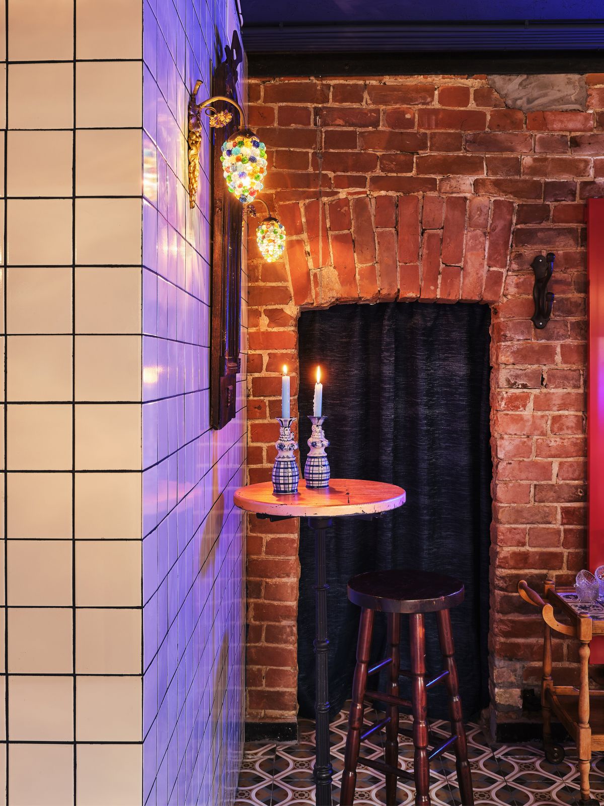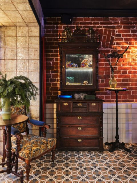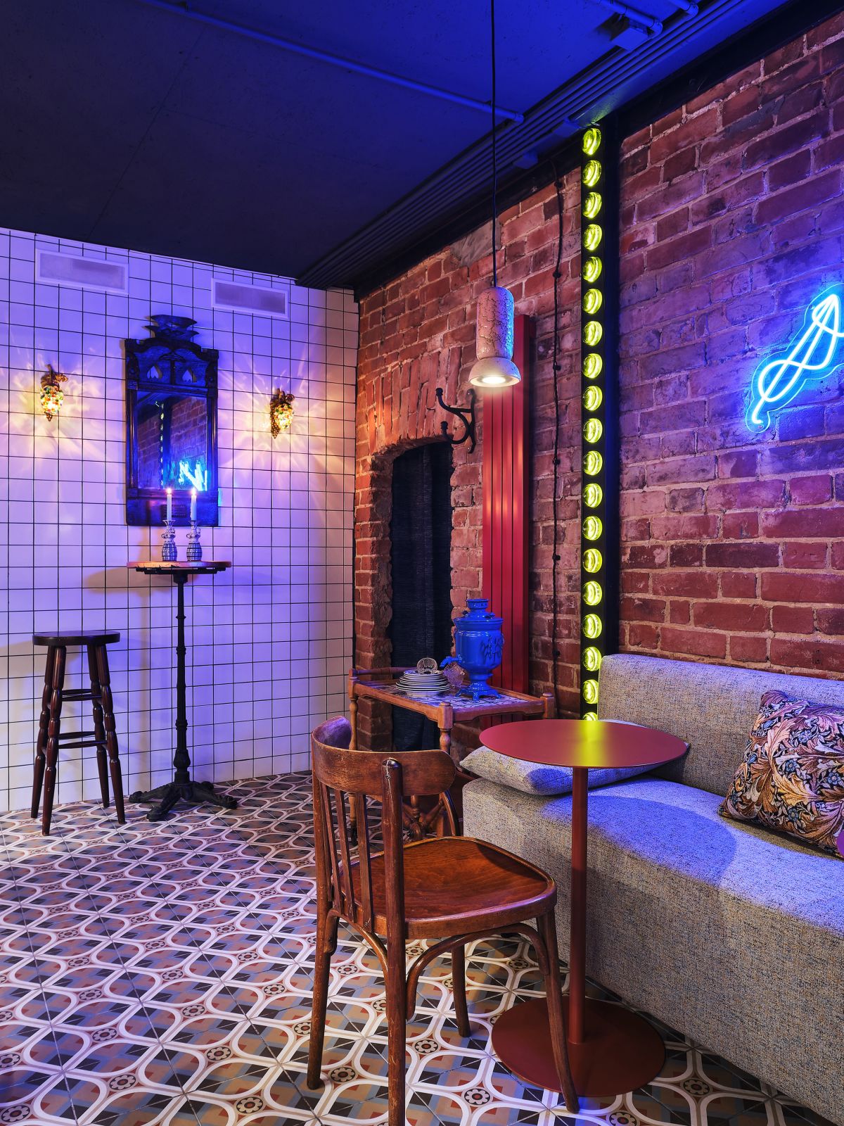 Идеи использованные в интерьере: Синий цвет — как цвет глаз Менделеева, стеклоблоки Фальконье в декоре, точно такие же, как были в детстве Менделеева в доме его матери — мы нашли современных производителей, которые смогли изготовить такие же. Чемоданы тоже не зря заняли свое место в интерьере, ведь знаменитый химик любил их делать, по словам его жены – так он отдыхал от умственного напряжения.