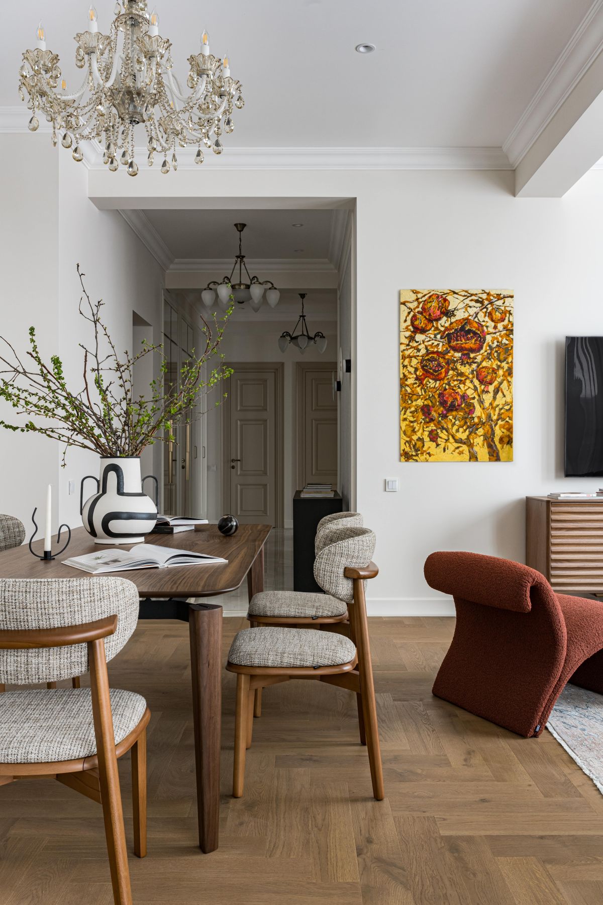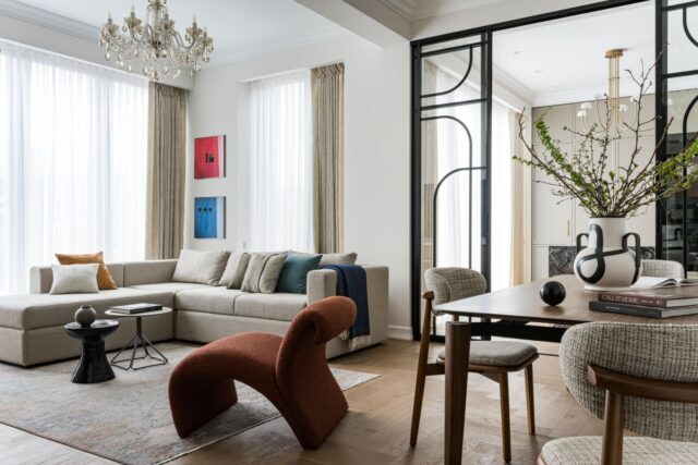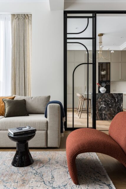 Квартира с видом на горы, в Алматы, была создана дизайн-студией «Amali design» для взрослой пары, которая живет на Кипре, но так же нежно любит Алматы и часто приезжает в свой родной город.