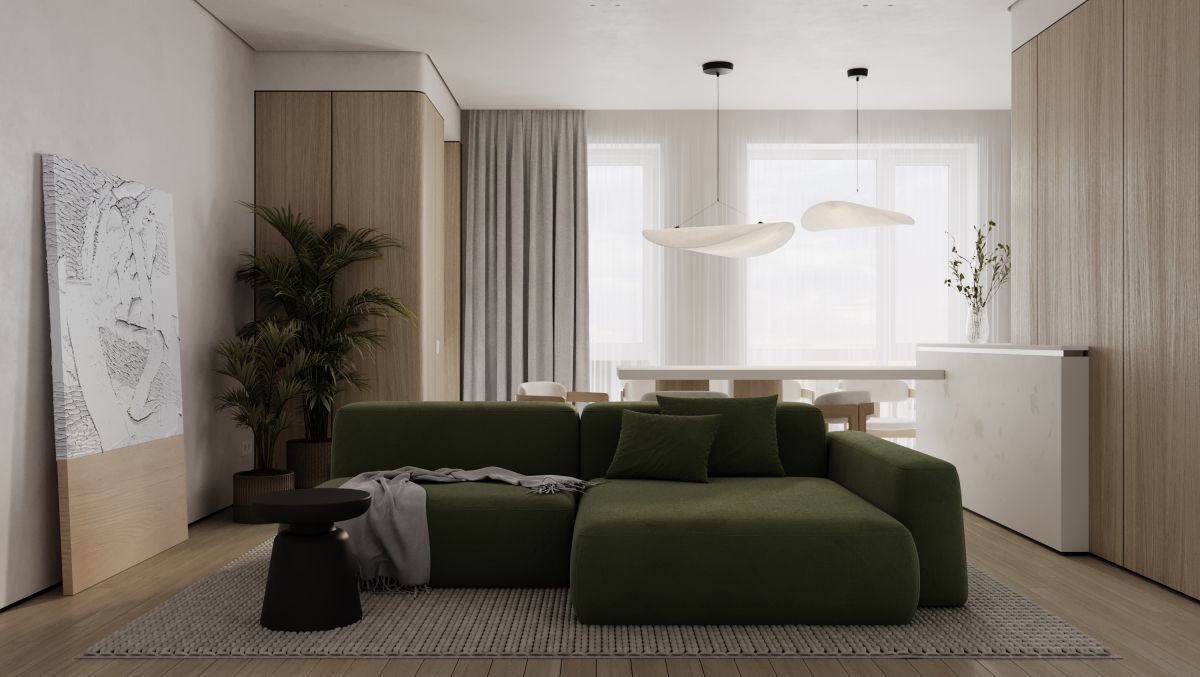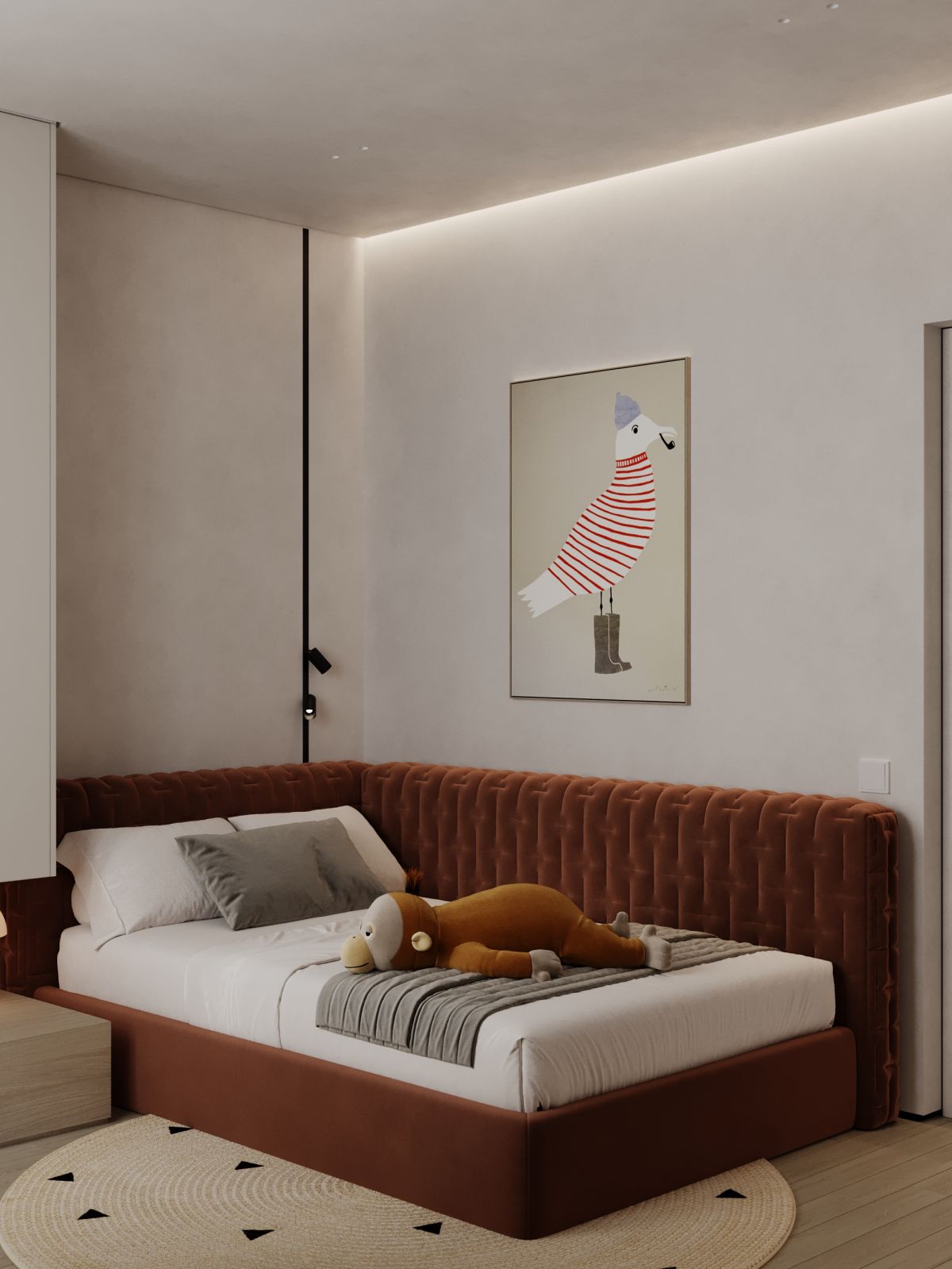 Основная концепция интерьера — создание лаконичного и функционального пространства для молодой семьи с ребенком, где каждая деталь продумана до мелочей.