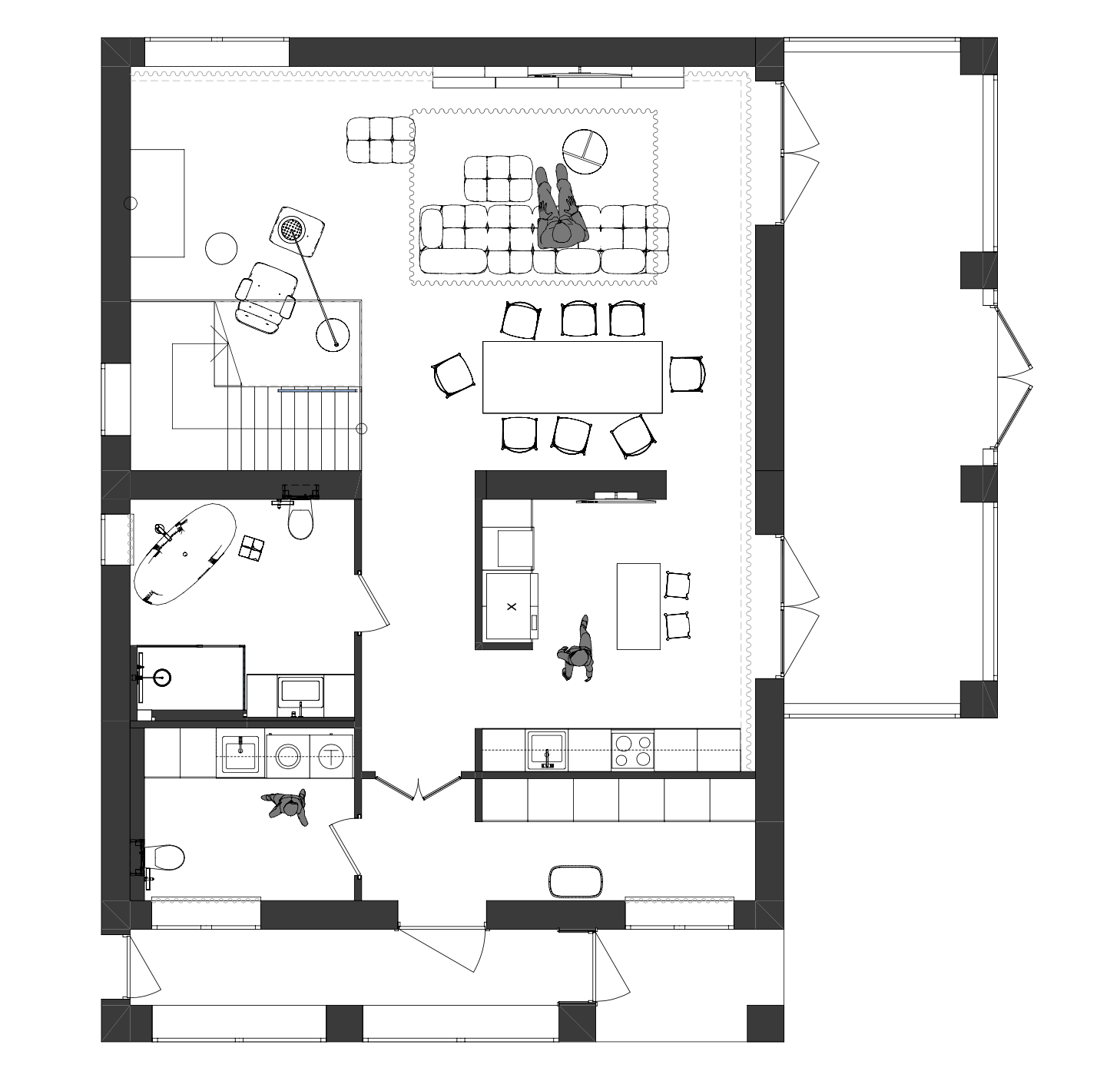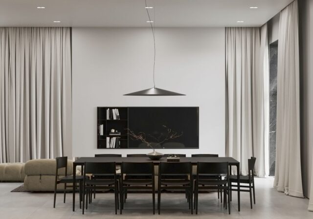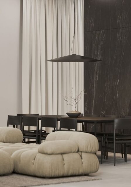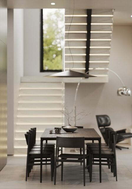 Мы внедрили акценты темных цветов и фактур. Это добавляет интерьеру глубину и изысканность, а также позволяет создать интересные контрасты с пастельными тонами. Темные элементы, такие как деревянные фактуры, использованные в отделке, или акцентные предметы мебели, привносят нотки динамики и выразительности, обогащая общую палитру. Каждое помещение в доме продумано до мелочей. Мы уделили особое внимание освещению, которое создает атмосферу тепла и уюта, делая вечерние посиделки особенно запоминающимися. Использование натуральных материалов, таких как дерево и камень, не только подчеркивает связь с природой, но и обеспечивает долговечность и практичность.