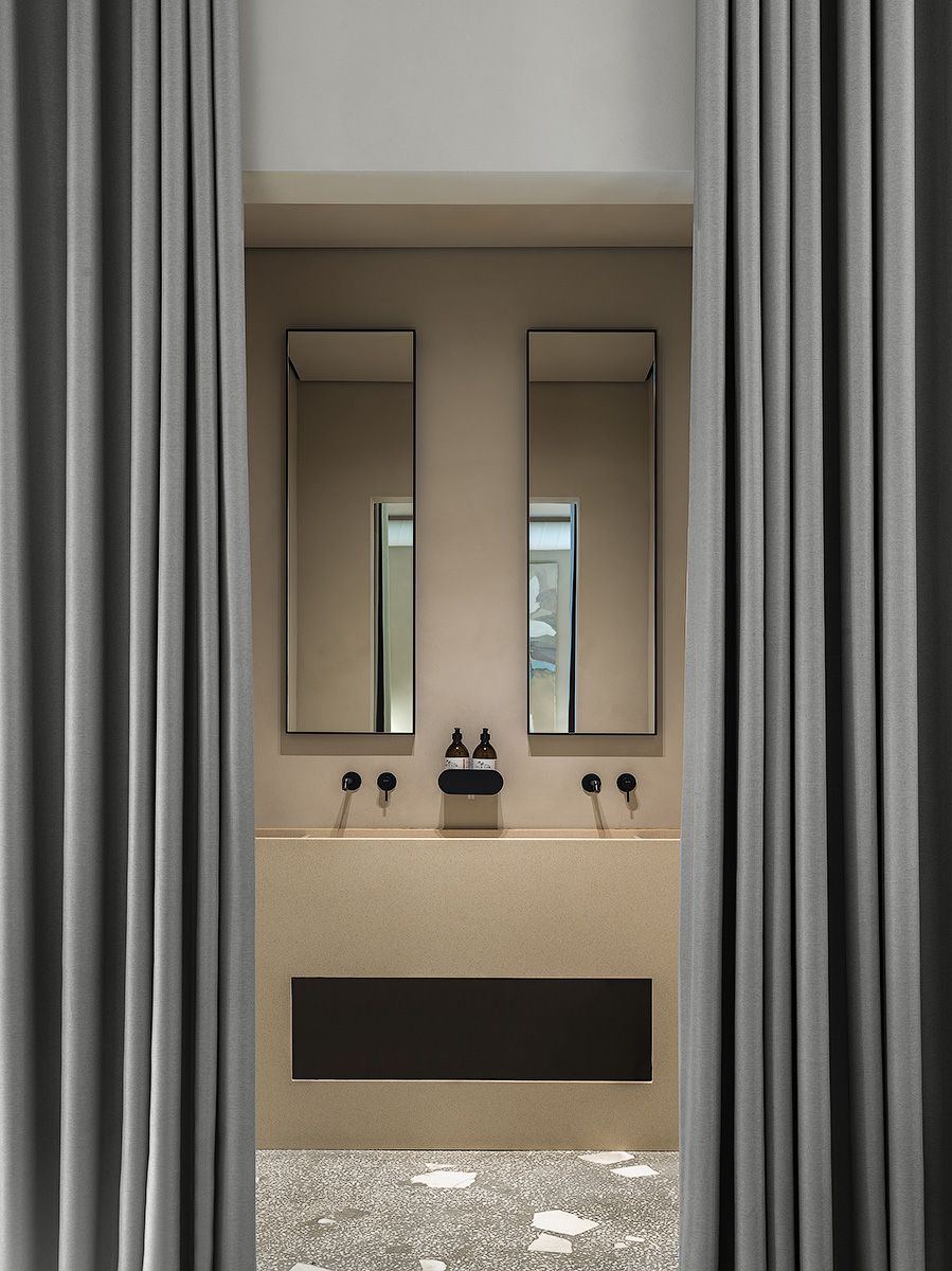 Сочетание натуральных материалов и спокойных оттенков создает ощущение умиротворения и комфорта. Предметы интерьера созданы российскими дизайнерами, некоторые элементы мебели спроектированы и изготовлены по чертежам архитекторов студии.