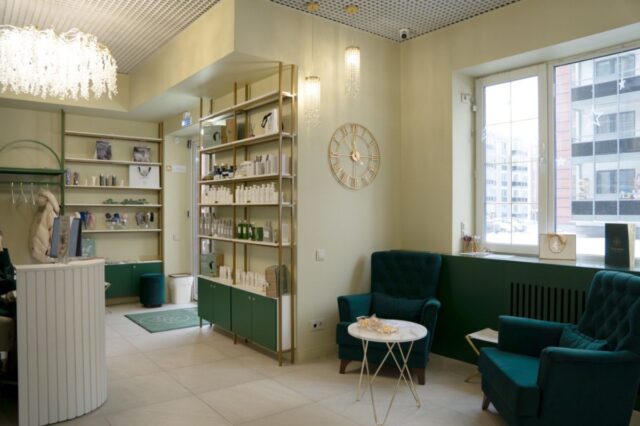 Заказчицы хотели сочетать в дизайне роскошь, элегантность и изысканность. Этот салон красоты создан для отдыха души и тела.Помимо комфорта в этом интерьере предусмотрено ультрафиолетовая рециркуляция воздуха, что обеспечивает профессиональную бактерицидную защиту.
