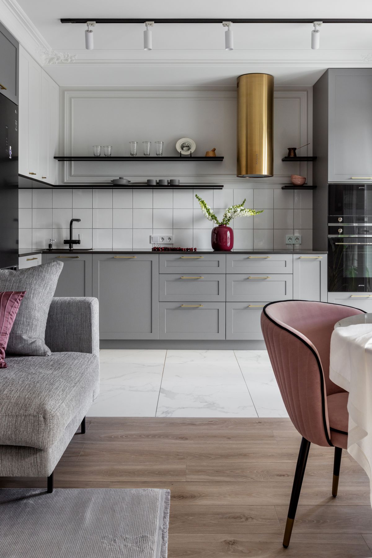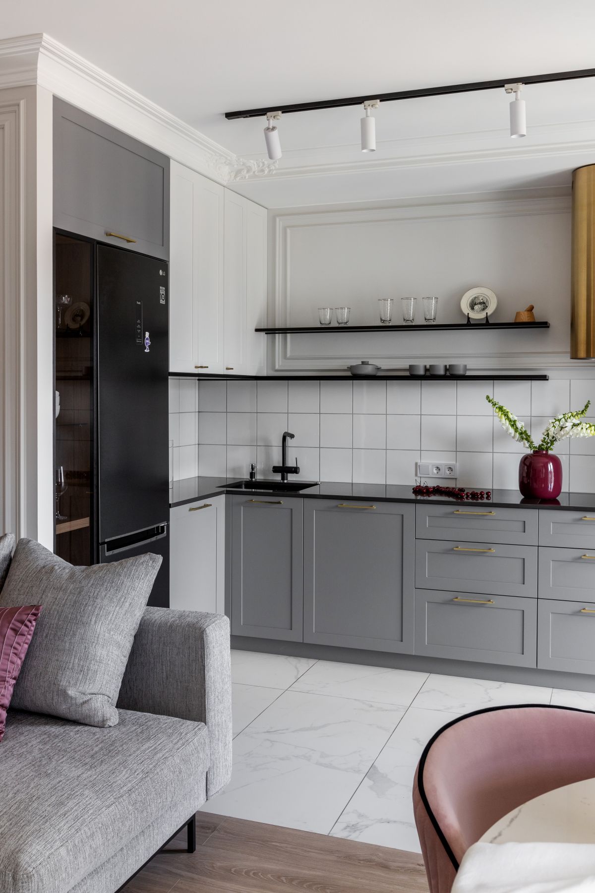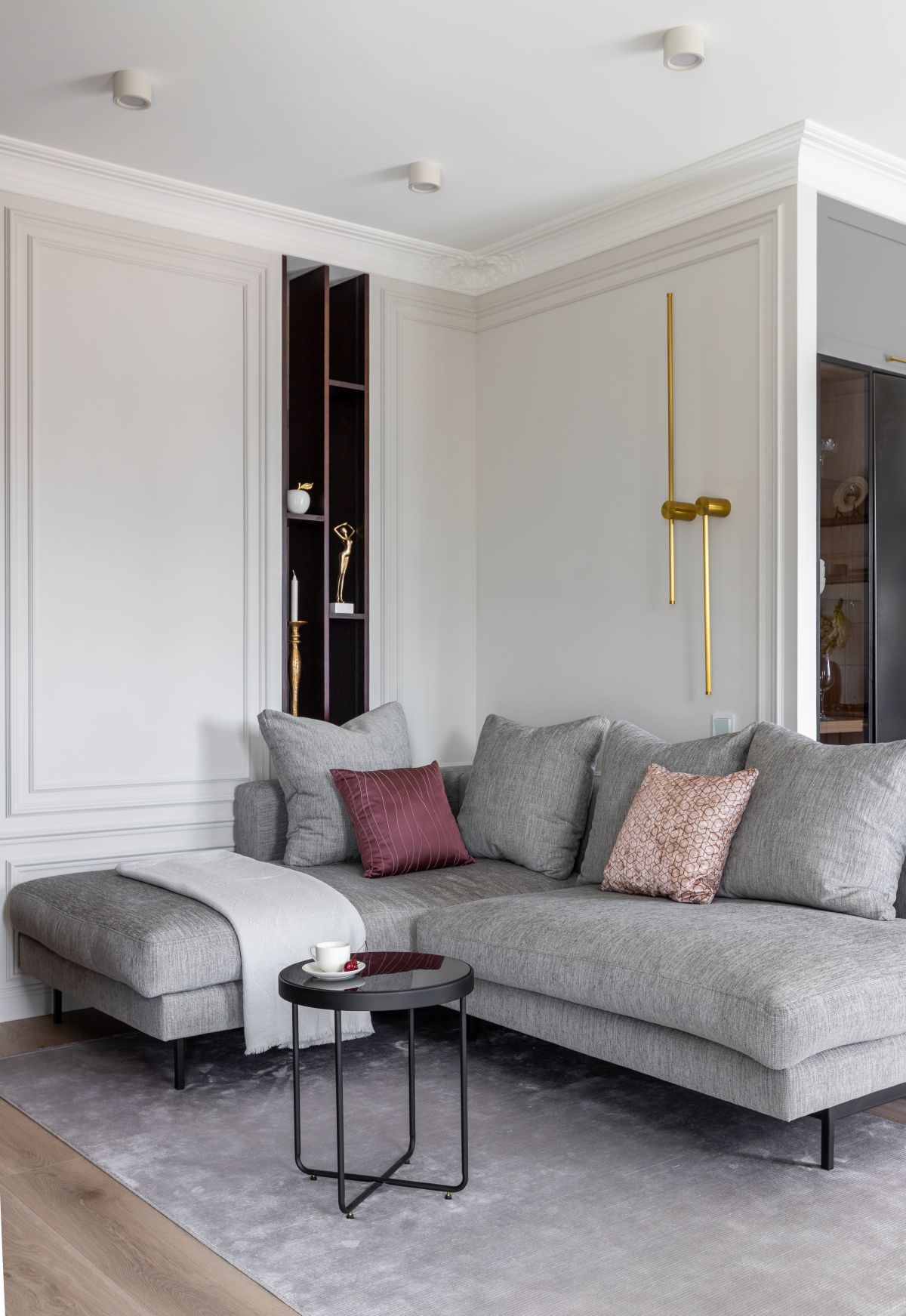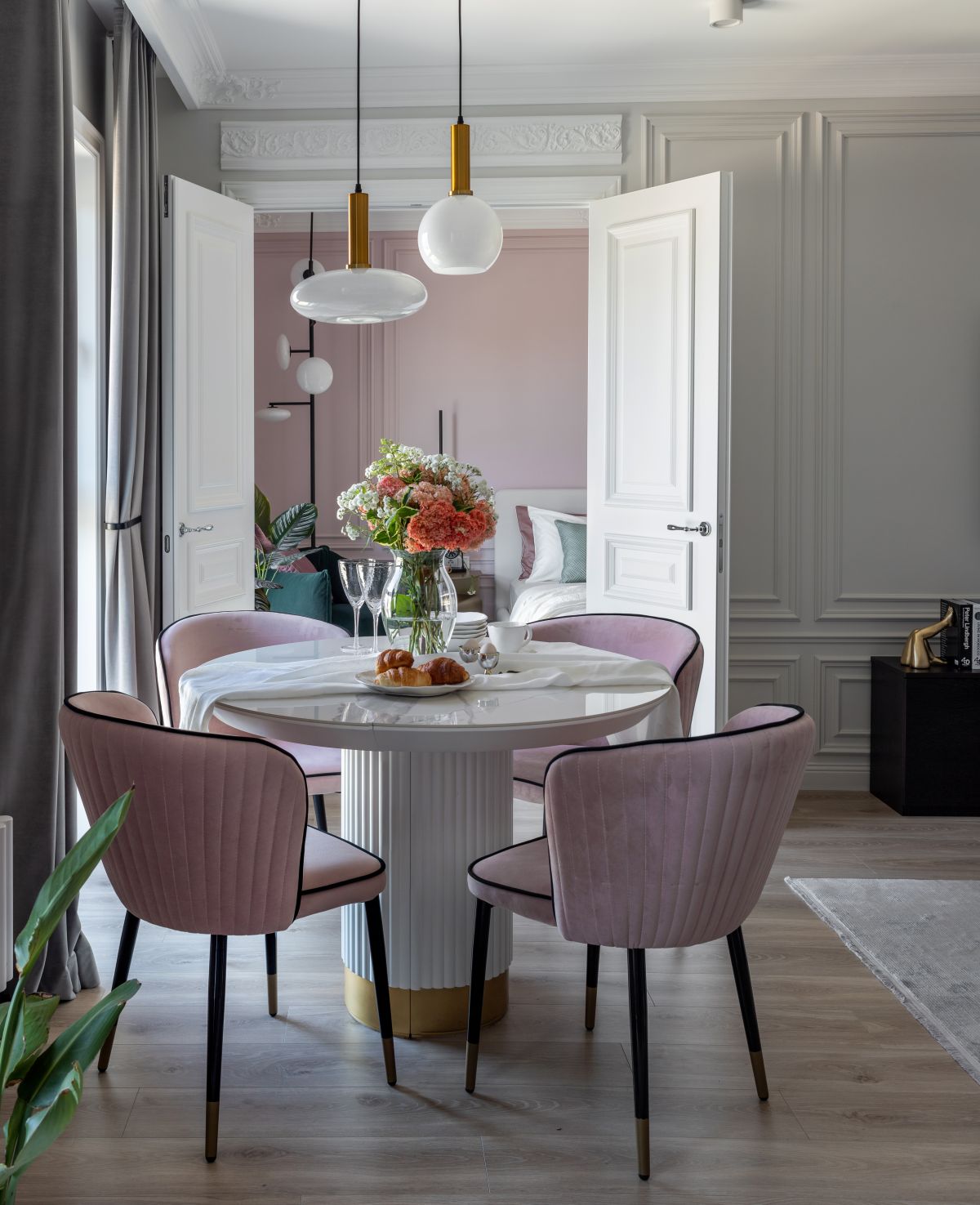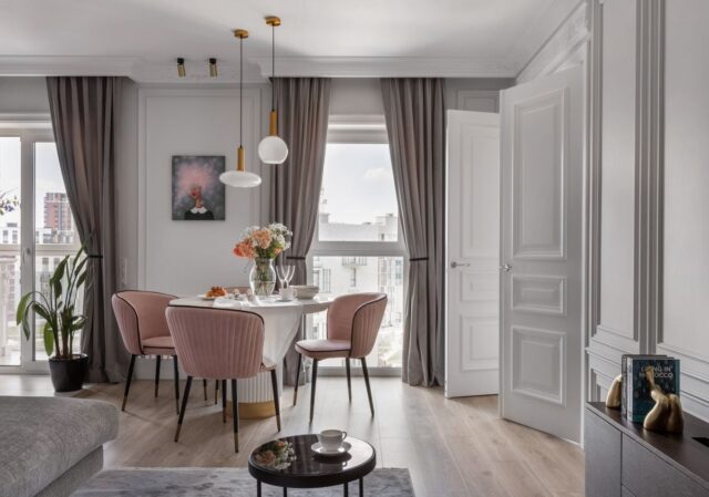 Вся история и задумка с подбором декора закрутилась вокруг хозяйки квартиры – самодостаточной успешной молодой женщины, хрупкой внешне, но с непростым характером)) Также задача была не просто вписать красивые изделия в интерьер, а сделать так, чтобы они подчёркивали задумку дизайнера при работе над этим объектом и передать атмосферу, в которой есть что-то питерско-парижское))