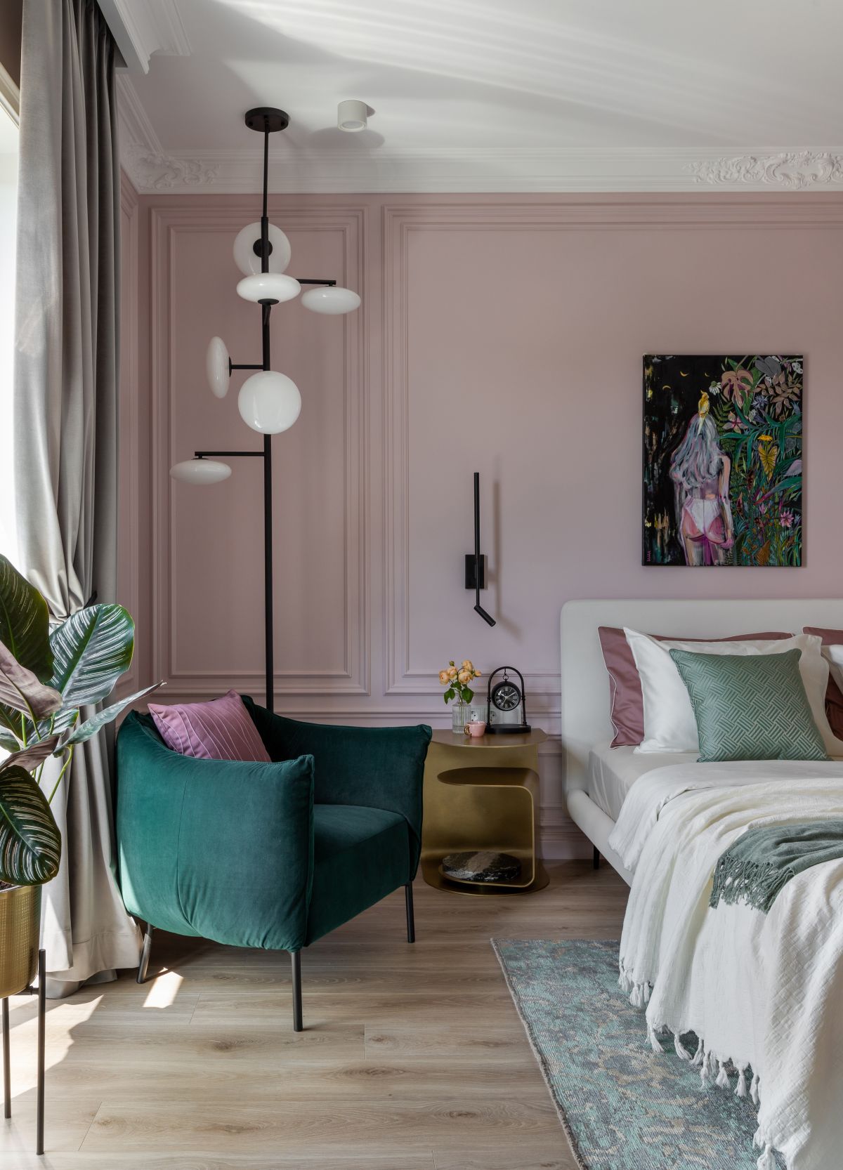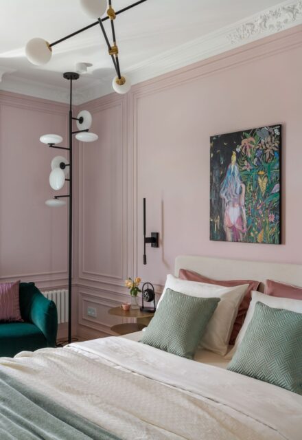 Самое большое внимание я уделила подбору искусства. А энергичная, сочная, провокационная работа молодой белорусской художницы Петры Климович добавила перчинки в элегантный интерьер спальни и «зажгла» её. И это моментально нашло отклик у хозяйки, которая увидела в этой работе что-то про себя.