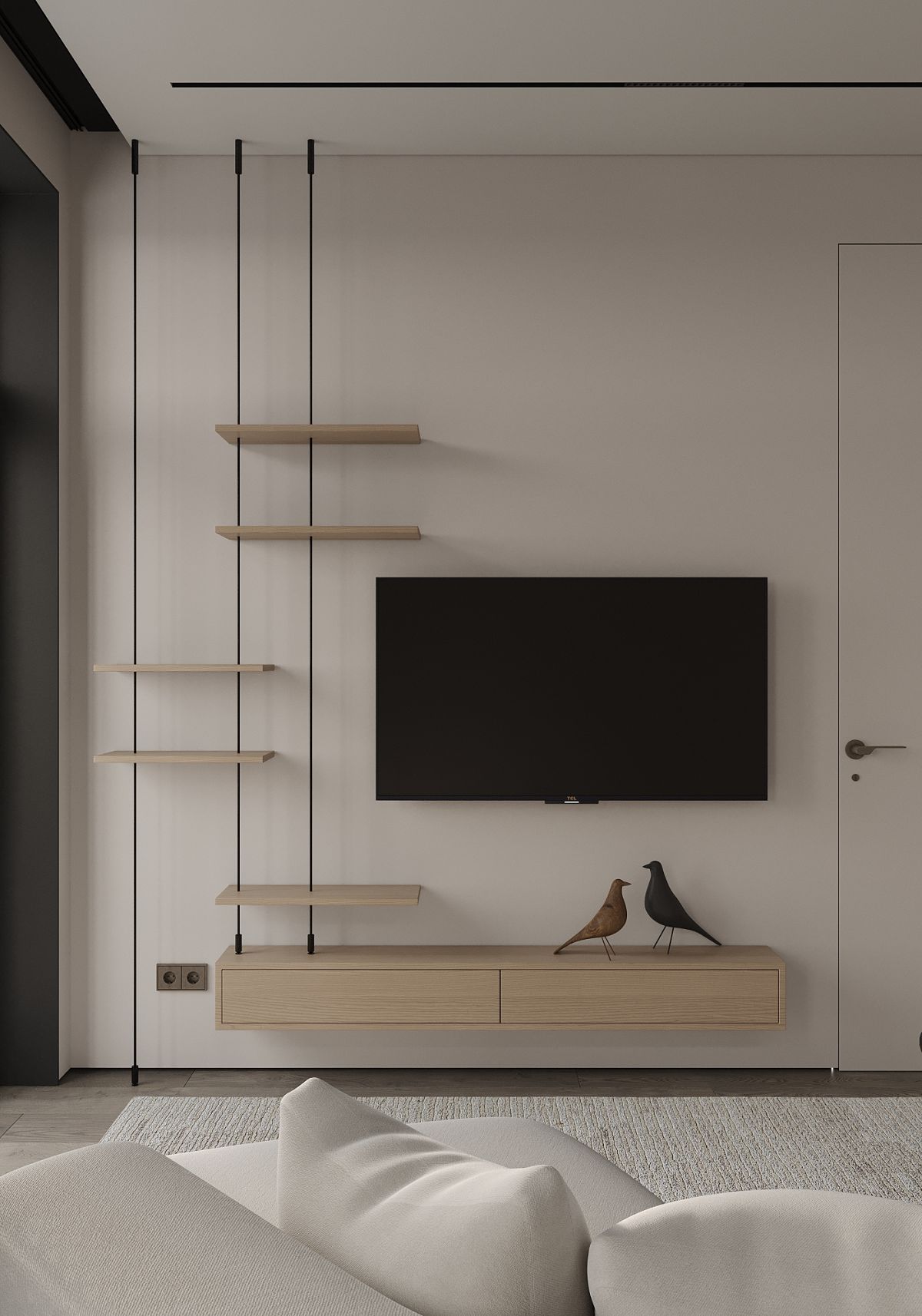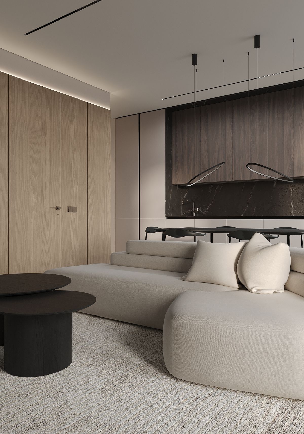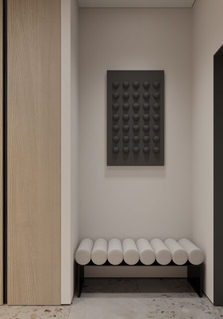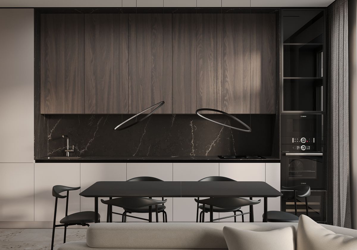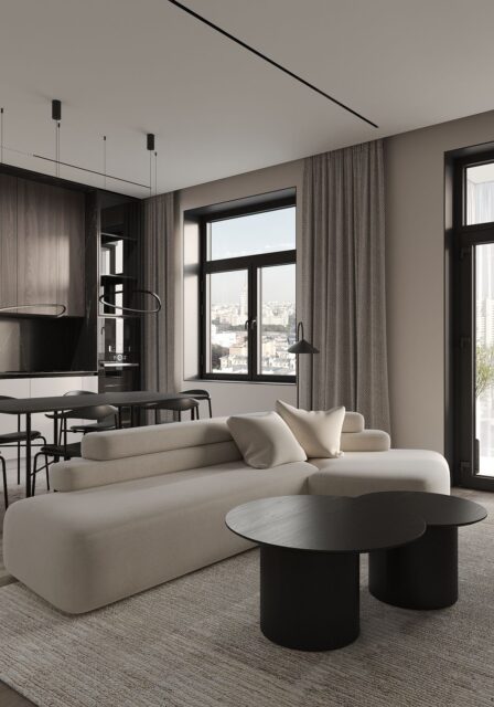 Квартира для молодой, активно работающей семьи, которая после долгого трудового дня встречается лишь вечером. Дом для них – это место, где им необходимо расслабиться и набраться сил для нового дня. Место, где все выдыхают и наслаждаются общением друг с другом, готовят ужин и смотрят фильм. Всё должно быть уютно и комфортно для глаз, без лишних деталей и кричащих акцентов. Свой интерьер Заказчики представляют в современном стиле, с элементами минимализма, в приятных природных оттенках и светлых тонах. Мебель простая и не громоздкая. Это место должно вдохновлять и расслаблять одновременно, не создавая визуальный шум и ощущение тяжести.