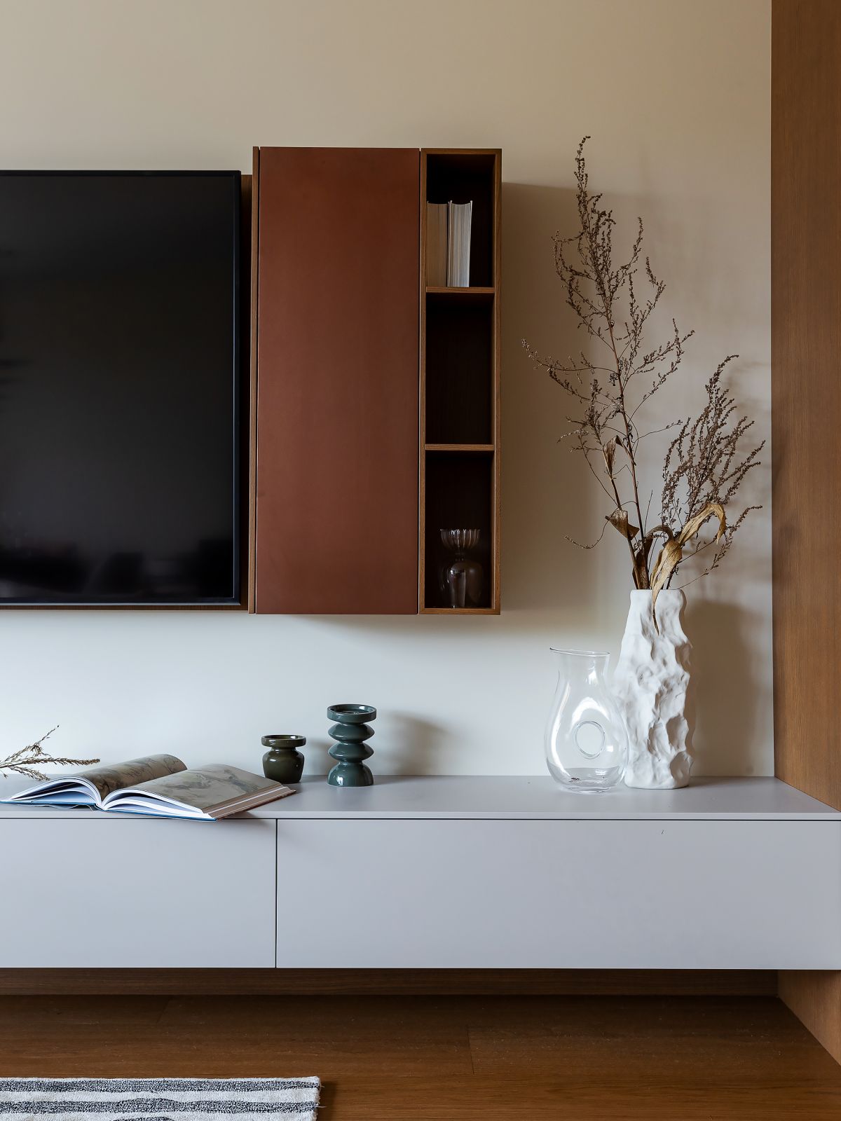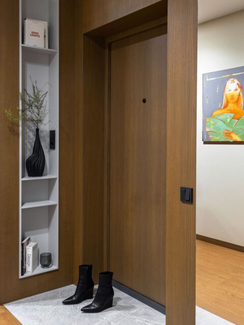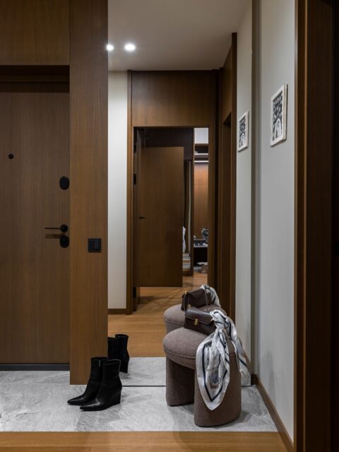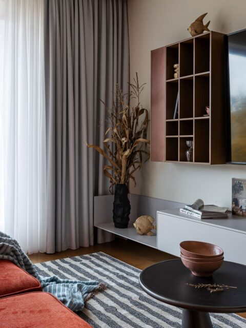 В интерьере дизайн студии используются природные оттенки и текстуры, что придает квартире уют и умиротворение.