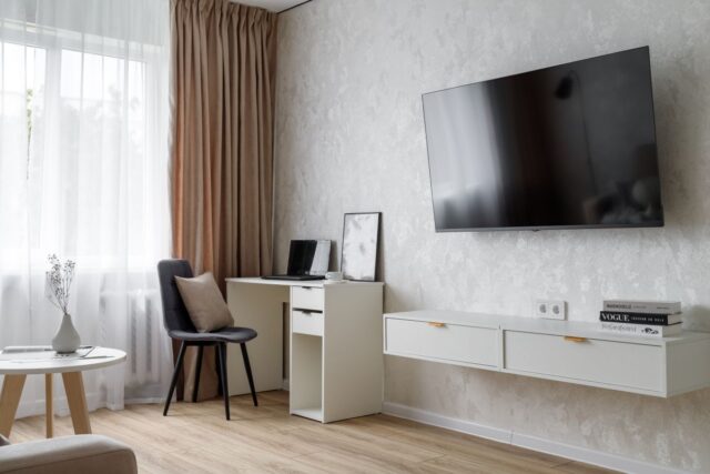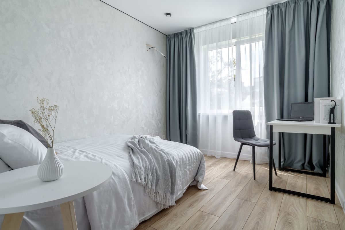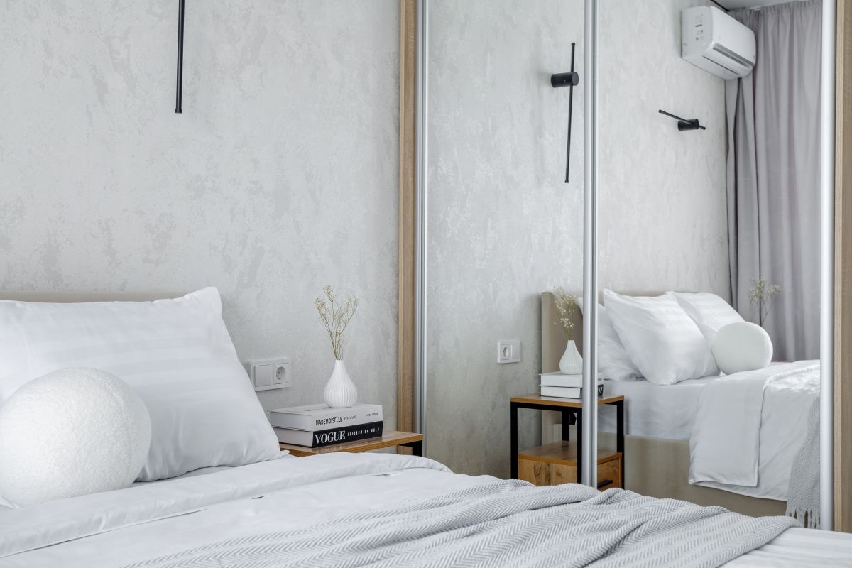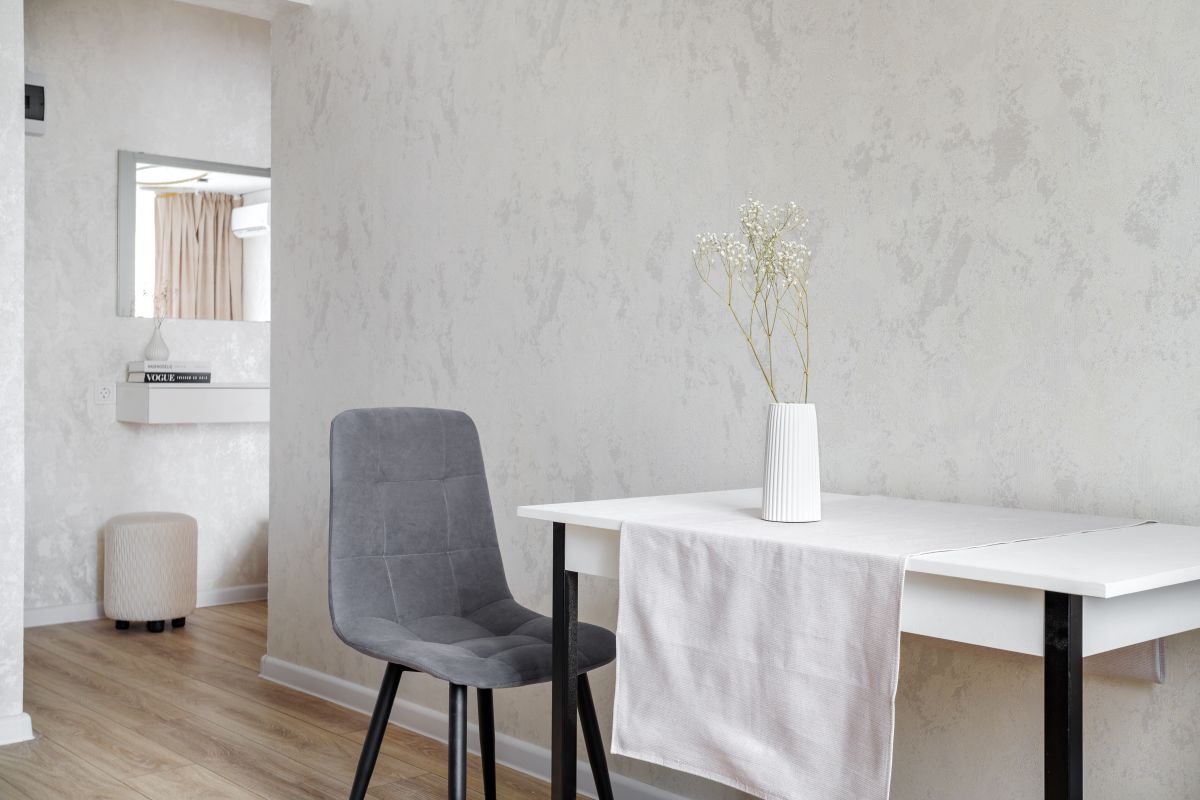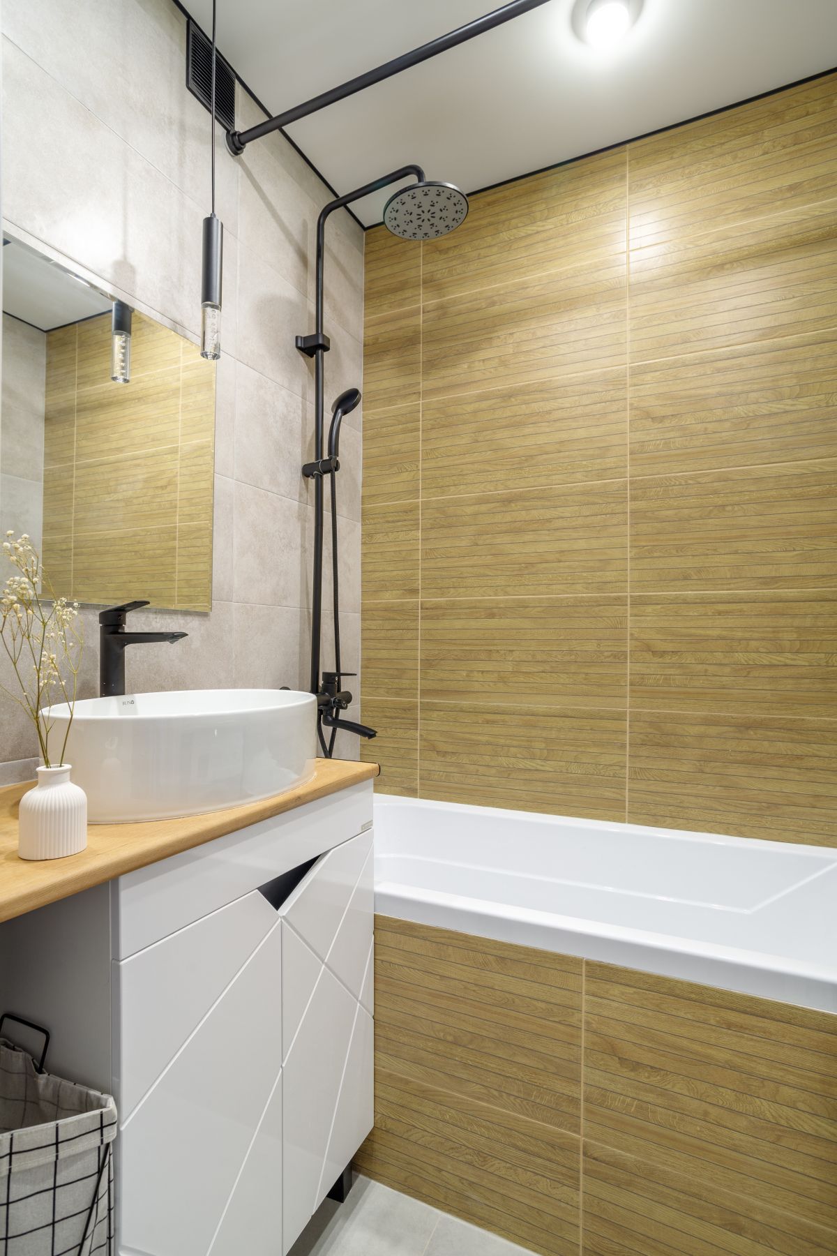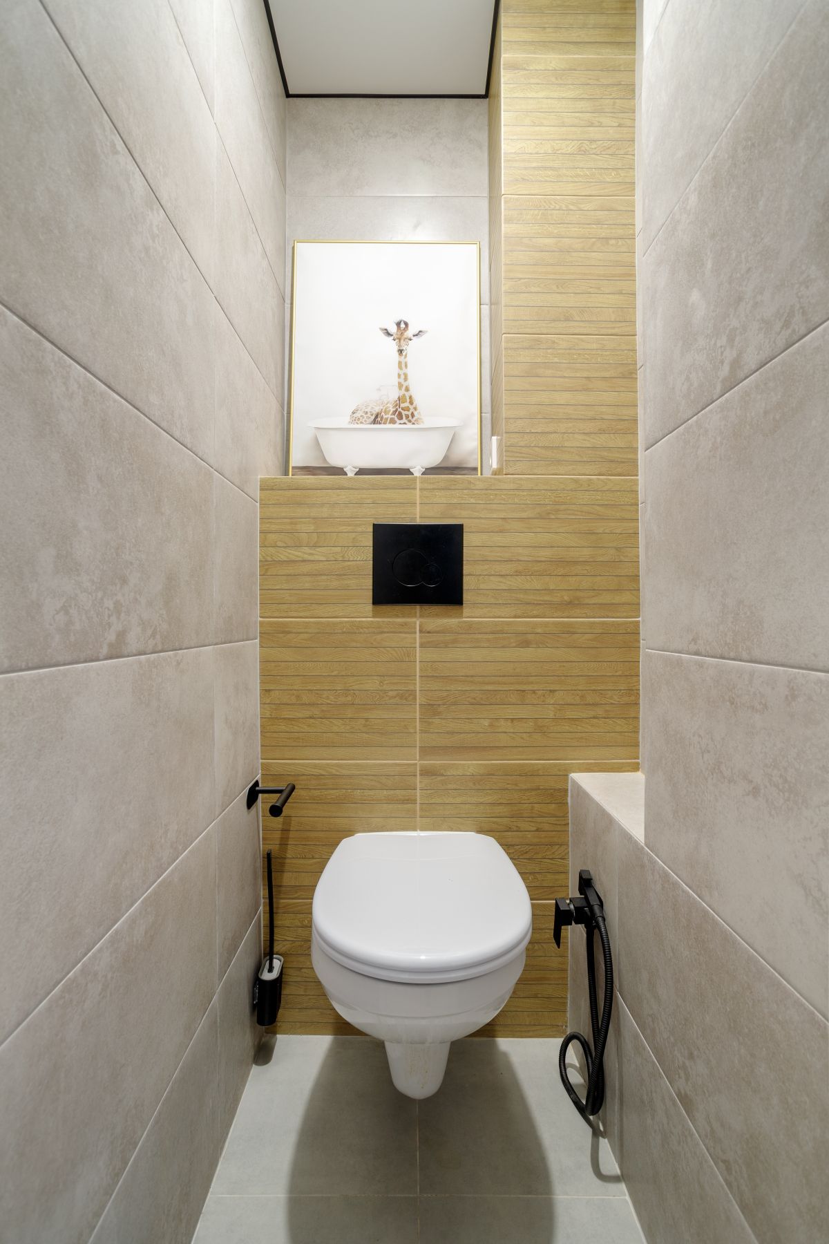 На само декорирование и фотографирование был 1 день. И в виду ограниченности бюджета было принято решение о доминирование белых оттенков, которые позволили визуально расширить пространство, наполняя его светом и «воздухом». Гармоничное сочетание с текстурой природного дерева привнесло в интерьер тепло и уютную атмосферу, а акценты серого как финальные штрихи подчеркнули баланс между строгими линиями и мягкими текстурами. Картина с жирафом была выбрана не случайно, как бы комично она не выглядела – она удачно вписалась в санузле и придала ту самую изюминку уникальности.