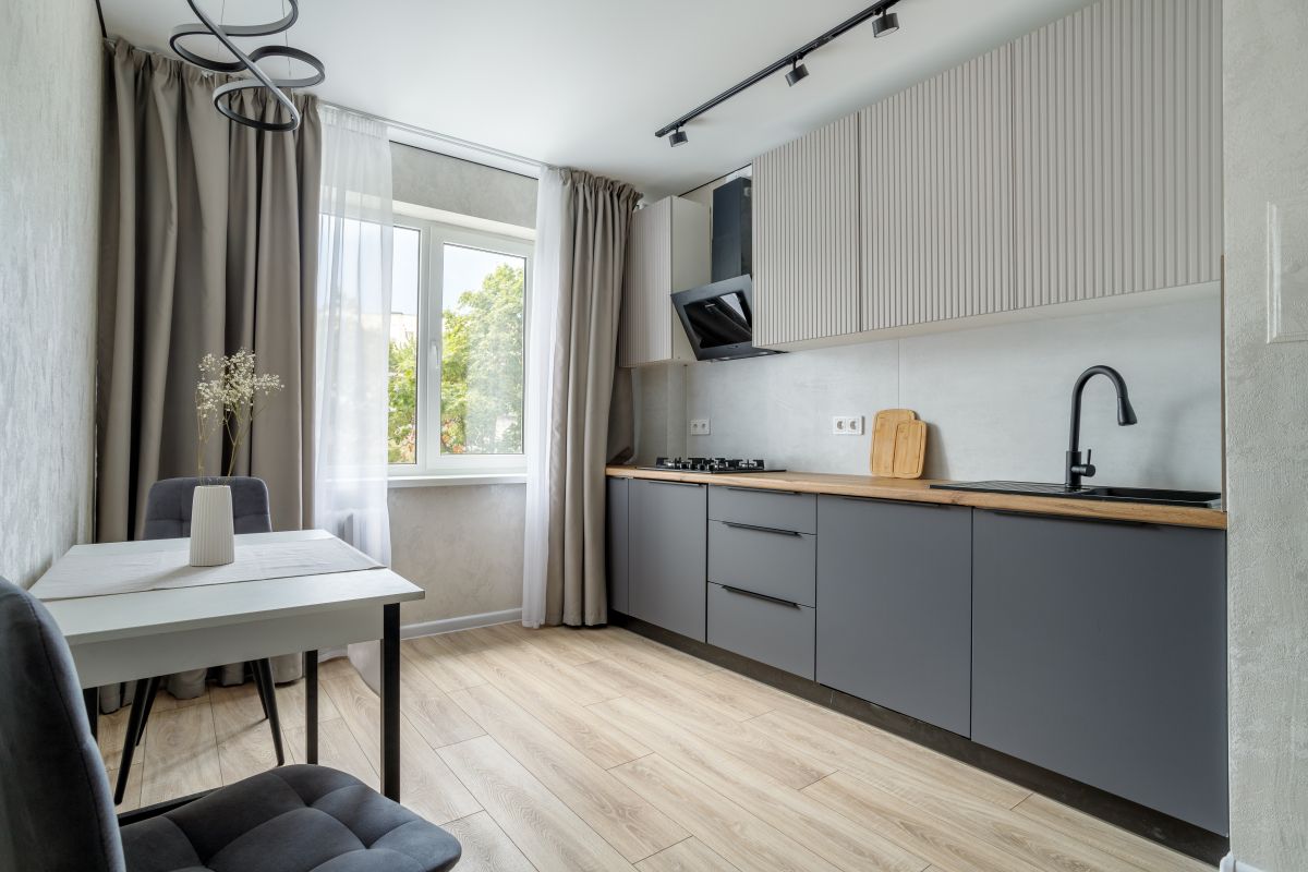 В квартире присутствовала основная мебель, в том числе кухонный гарнитур, а вот вторая комната была совершенно пустой…