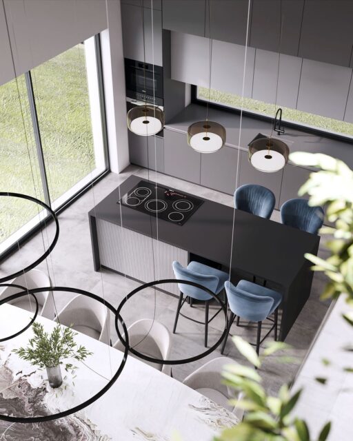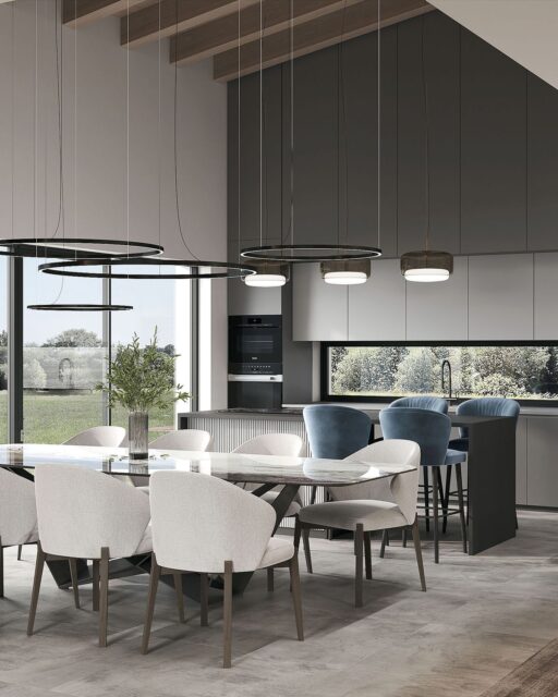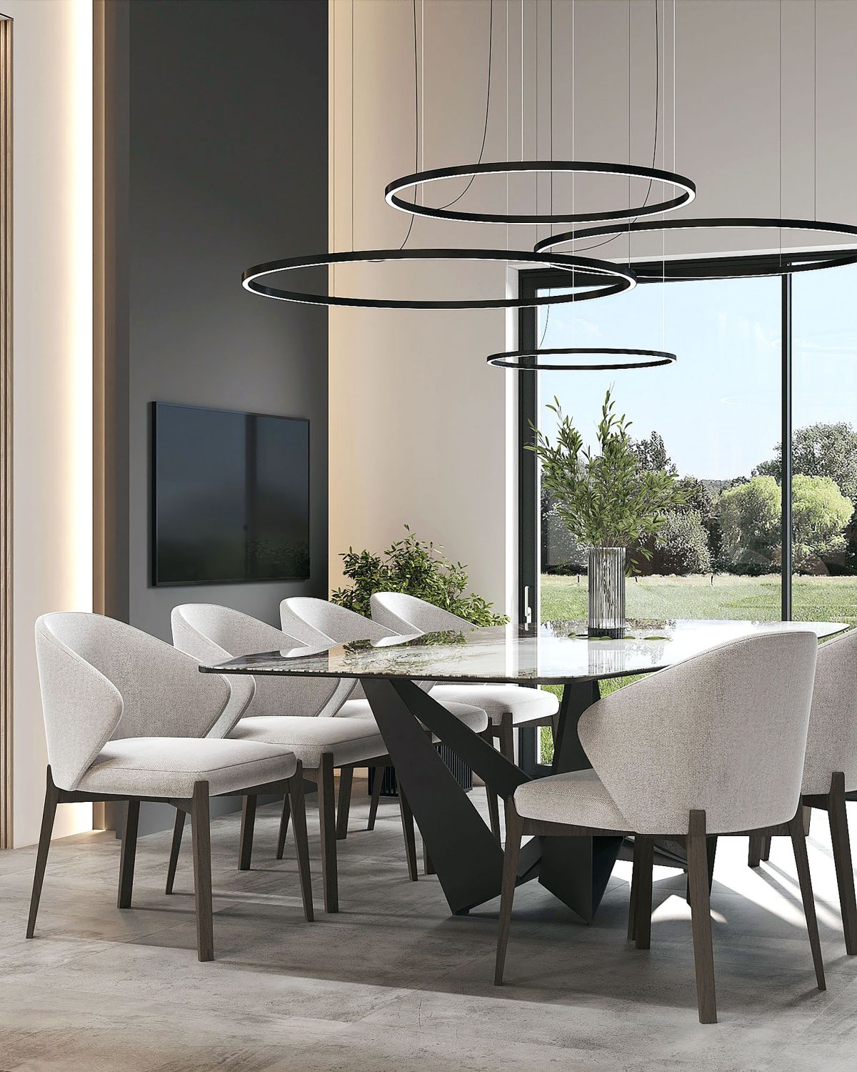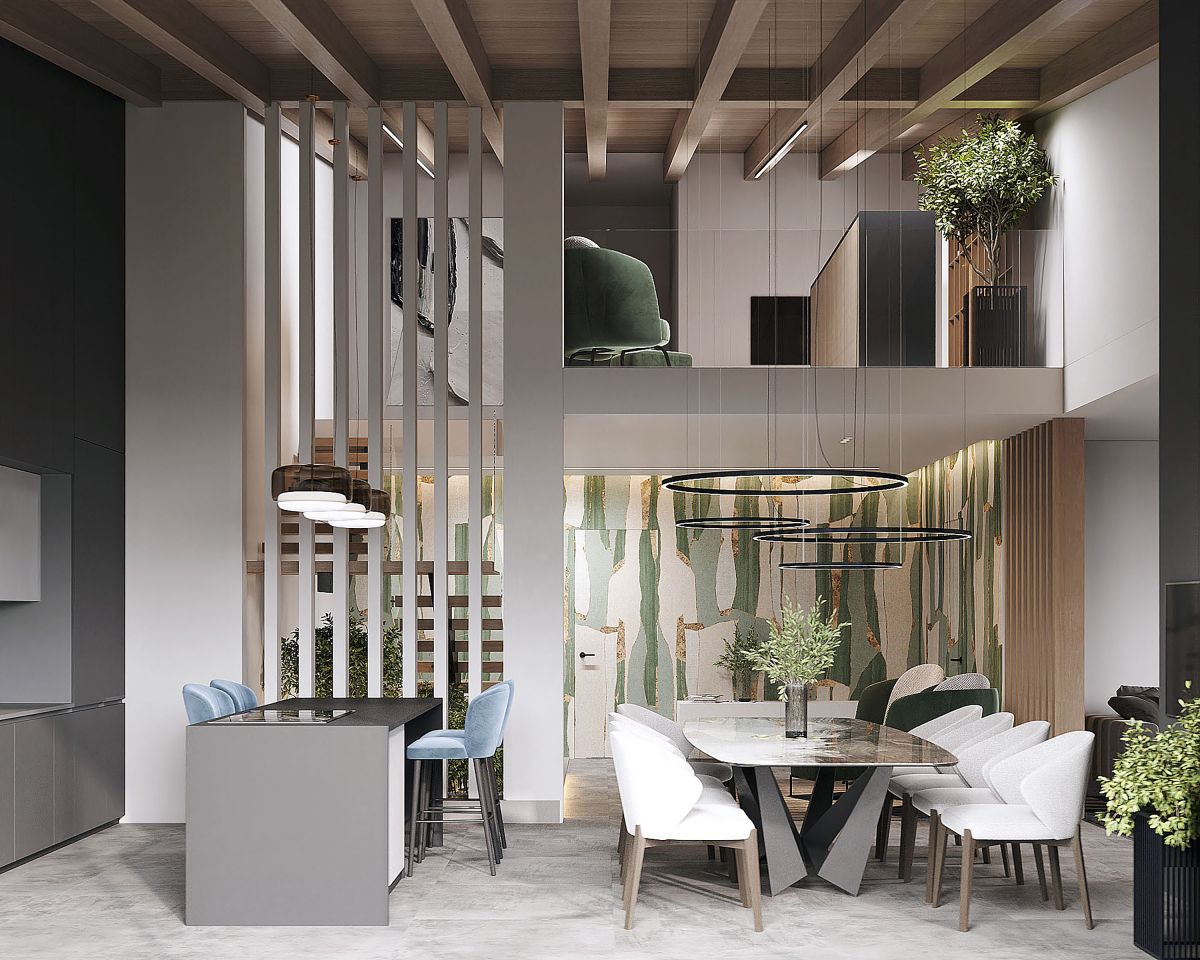 Открытое пространство на первом этаже обеспечивает ощущение свободы и визуально связывается с внешним миром на каждом углу, усиливая единение с природой.