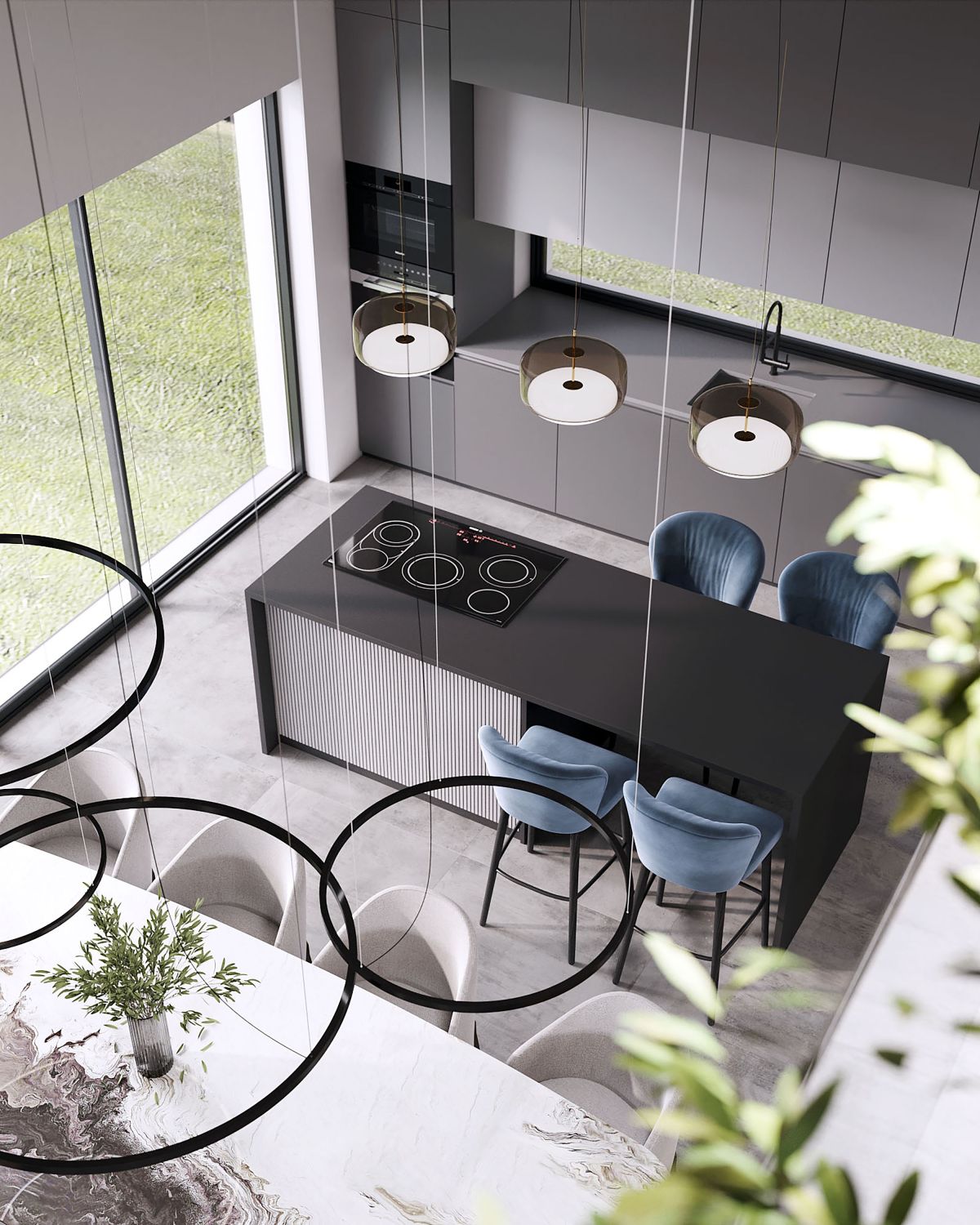 Дом, созданный для молодой пары, желающей жить в гармонии с природой, но в то же время наслаждаться высоким уровнем комфорта и технологий, идеально вписывается в окружающую среду, создавая баланс между человеком, архитектурой и ландшафтом.
