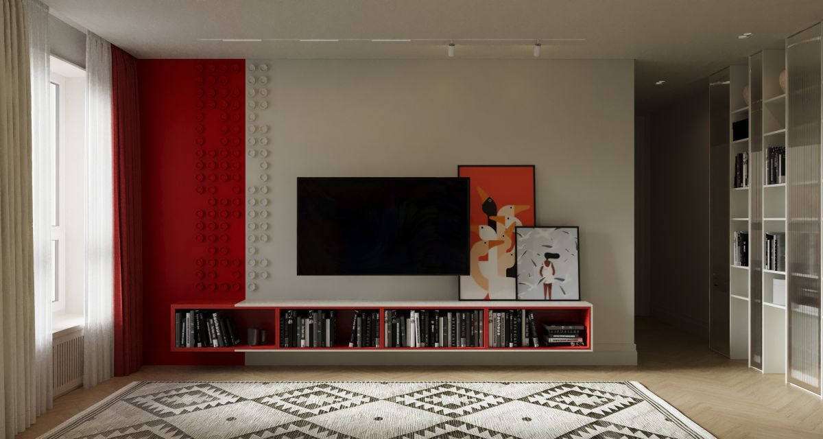 Основное место релакса — модульный диван, который можно трансформировать и использовать как для большой компании, так и для уютных домашних посиделок. Также декорировали радиаторы отопления шпонированными фрезерованными панелями и углубили подоконники, организовав дополнительную зону отдыха. На кухне использовали глубокую столешницу из натурального камня, интегрировав в неё встраиваемую вытяжку. Обыграли выступ вентиляционной шахты колонной из стеклоблоков. Применили современные технологии умного дома и голосовое управление.