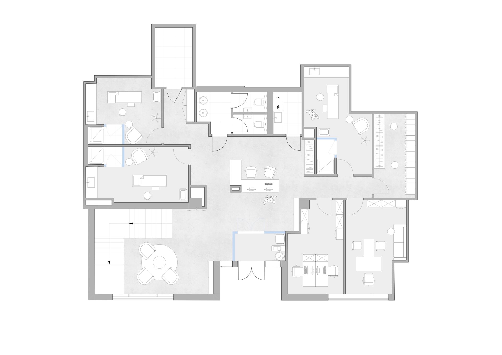 Клиника ориентирована на клиентов бизнес-сегмента. Важной задачей было создание премиального, запоминающегося интерьера первой из сети клиник. Мы стремились придумать и создать стильное и уютное пространство, в которое захочется возвращаться снова и снова.