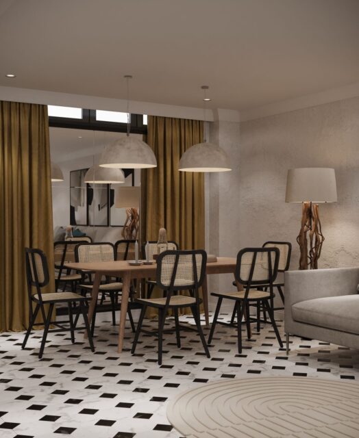 • Материалы: Практичные и долговечные – дерево для уюта, металл для прочности, декоративная штукатурка для современного акцента.