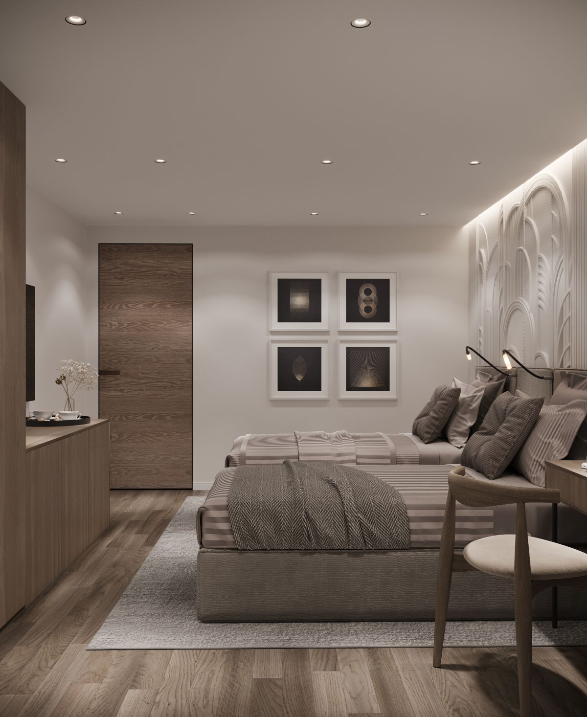 Этот проект демонстрирует баланс функциональности, эстетики и уюта, создавая комфортную атмосферу для гостей.
