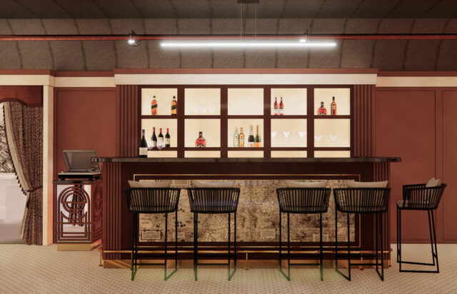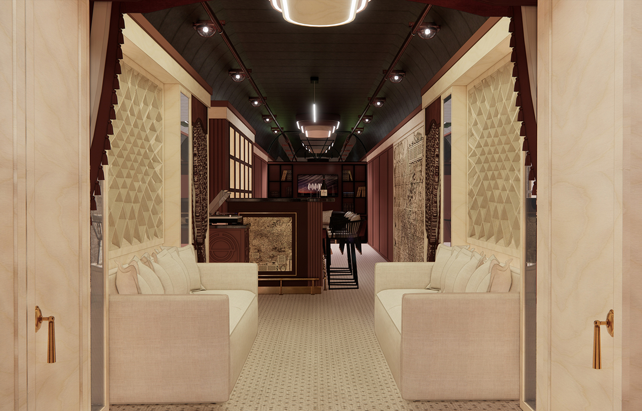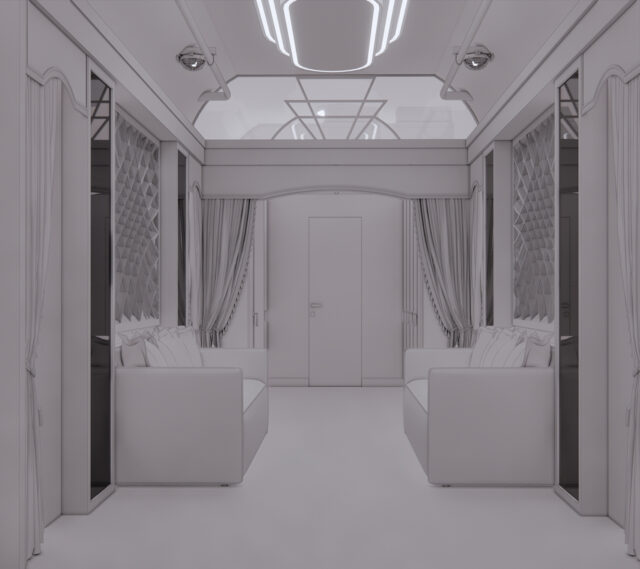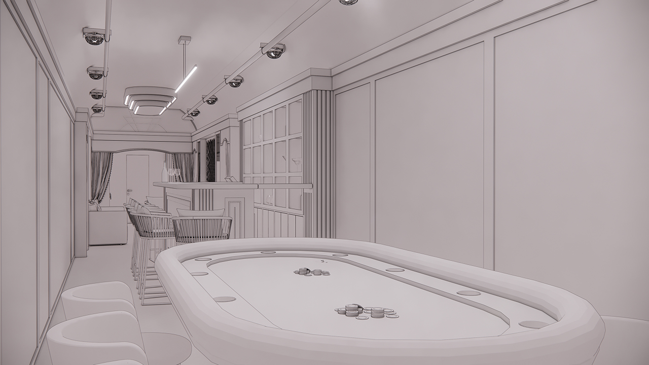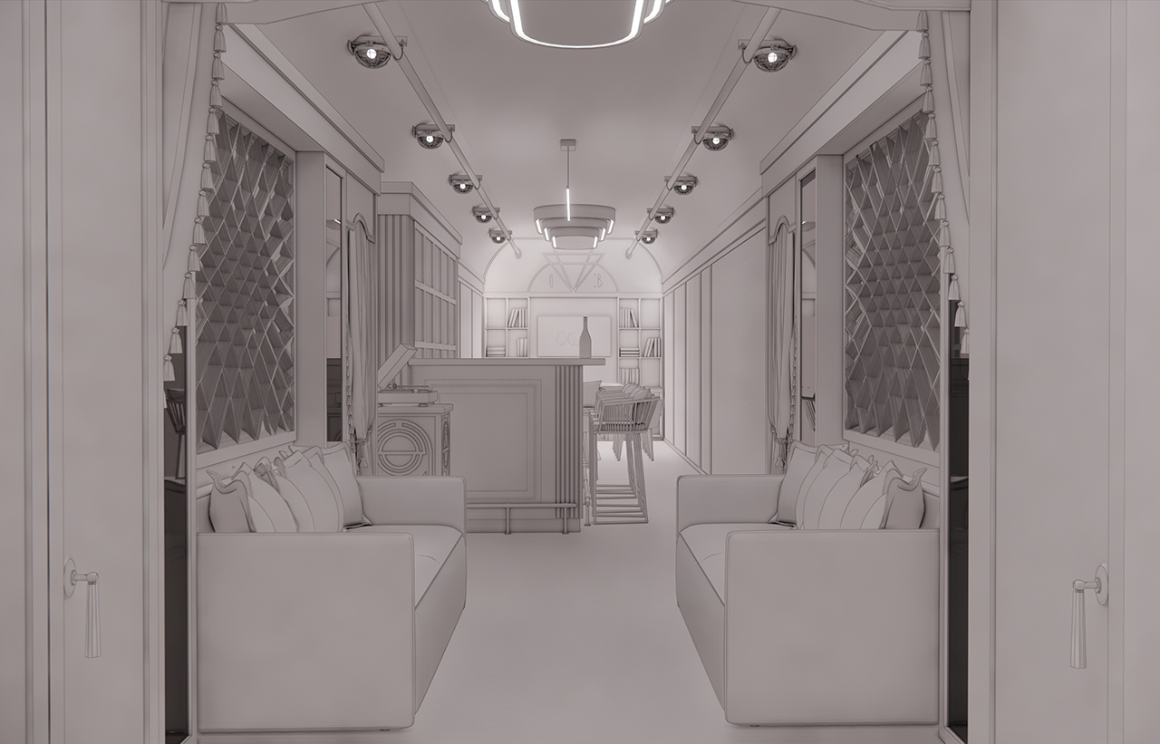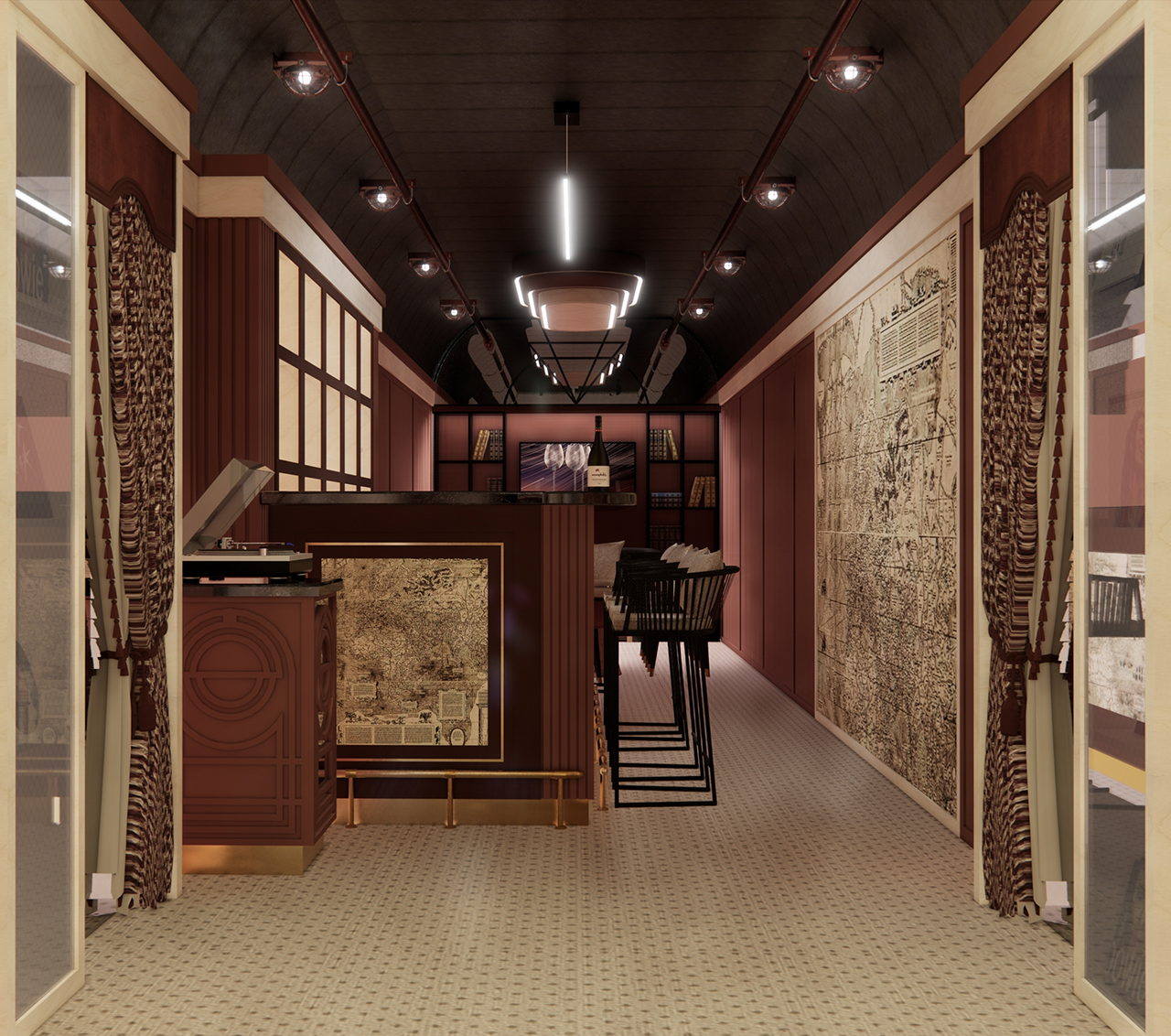 Вызовом на данном проекте стала задача по постановке военного вагона на мирные рельсы. Заказчик планирует трансформировать вагон некогда боевого железнодорожного ракетного комплекса в закрытый мужской клуб с покерным столом, баром, дорогой акустической системой и шикарной коллекцией виниловых пластинок.