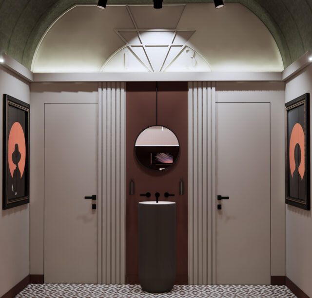 Оригинальный потолок, изначальное «техническое» освещение – фокус пространства, который «собирает» все элементы воедино и создает особую атмосферу, уважительную к истории объекта, но при этом абсолютно уютную и расслабляющую.
