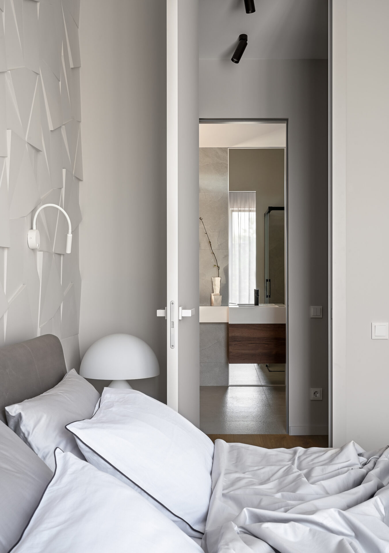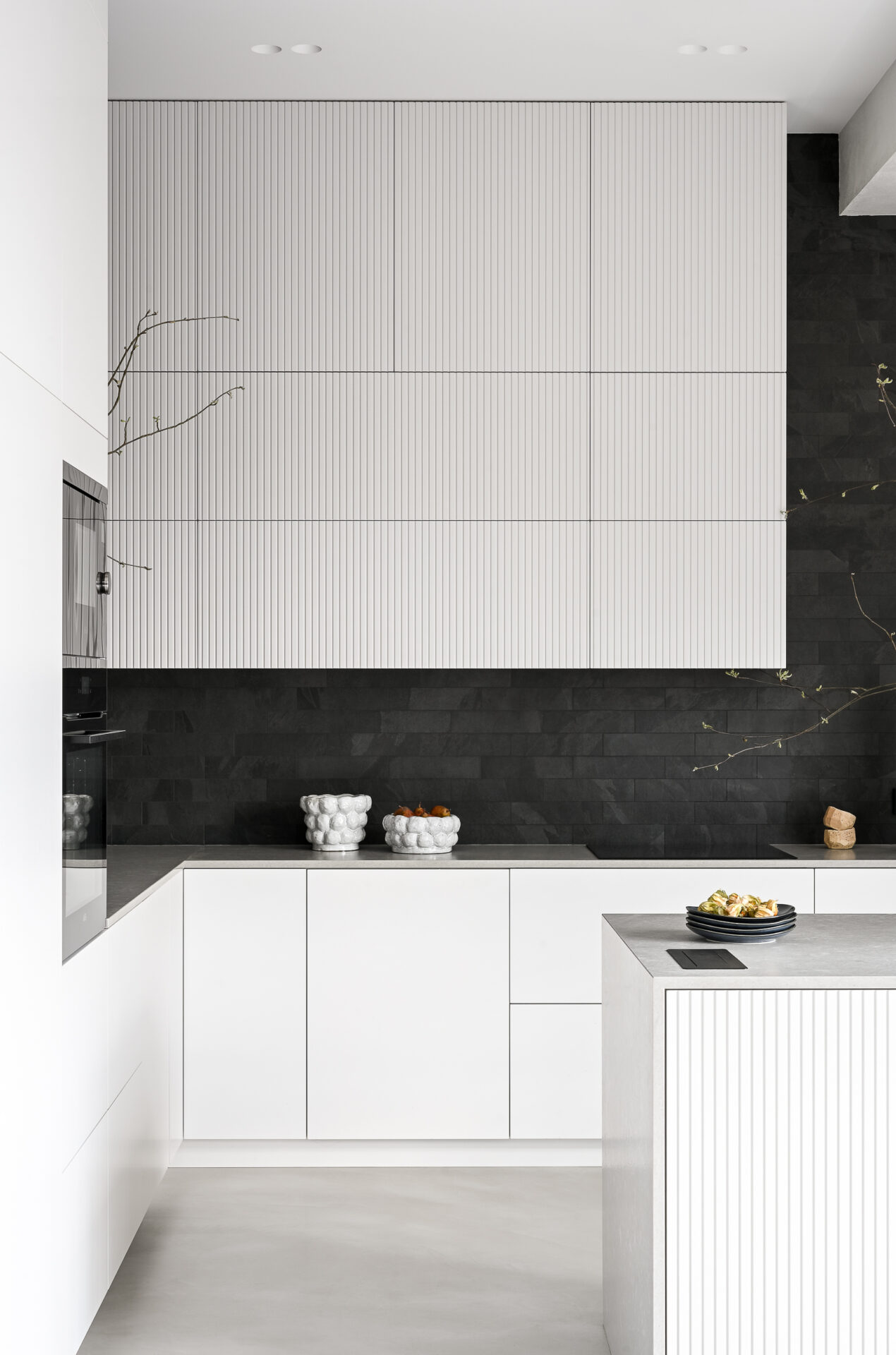 Основная концепция интерьера — создание уютной спокойной атмосферы с преобладанием белых и серых тонов, для акцента добавили темно-графитовые оттенки, плюс хотелось немного цвета в деталях, но чтобы это вышло ненавязчиво. Для создания такого интерьера старались использовать натуральные природные материалы. В целом стилистику можно отнести к уютному минимализму.