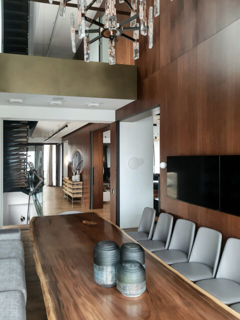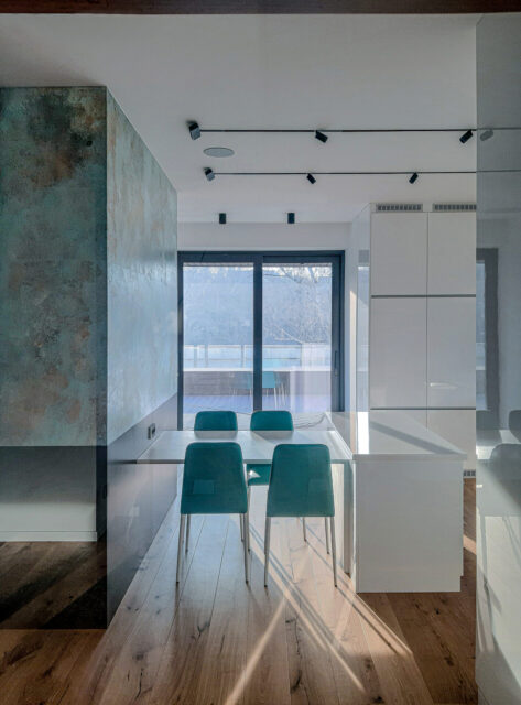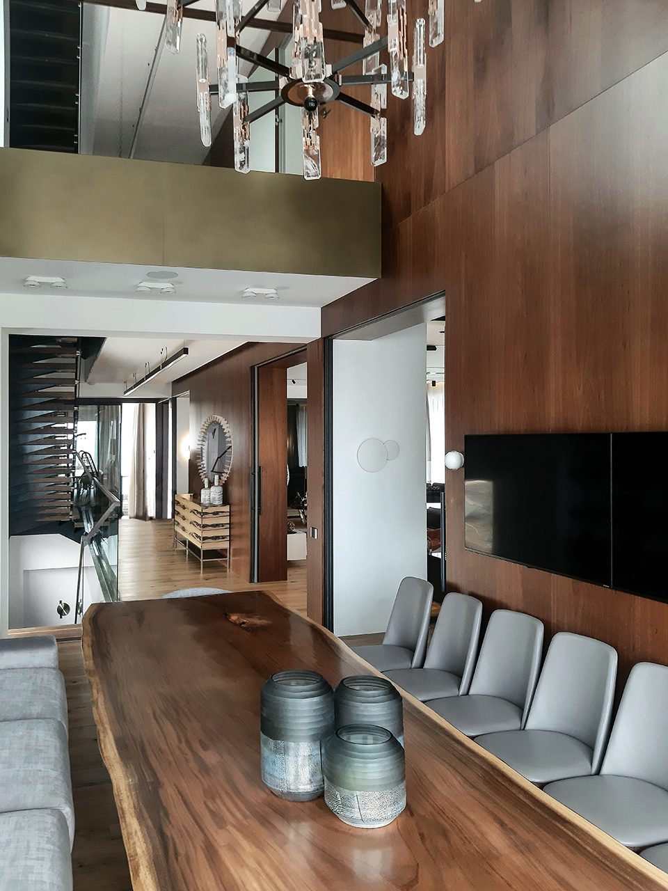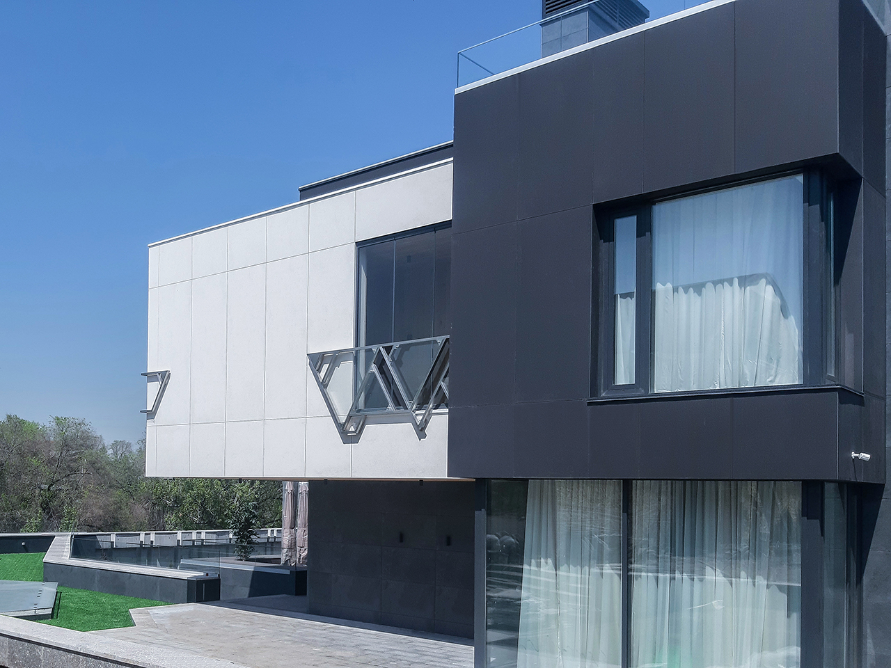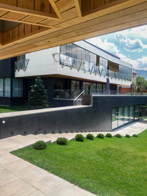 Данный проект был реализован в 2021г. Вилла расположена в верхней части Алматы, в горной местности. Площадью 850 кв.м, имеет 4 этажа, также просторный летний домик. Дом реализован в современной стилистике. Все материалы интерьера — натуральные (мрамор, шпон, металл). В данном проекте были реализованы много оригинальных архитектурных и конструктивных решений.