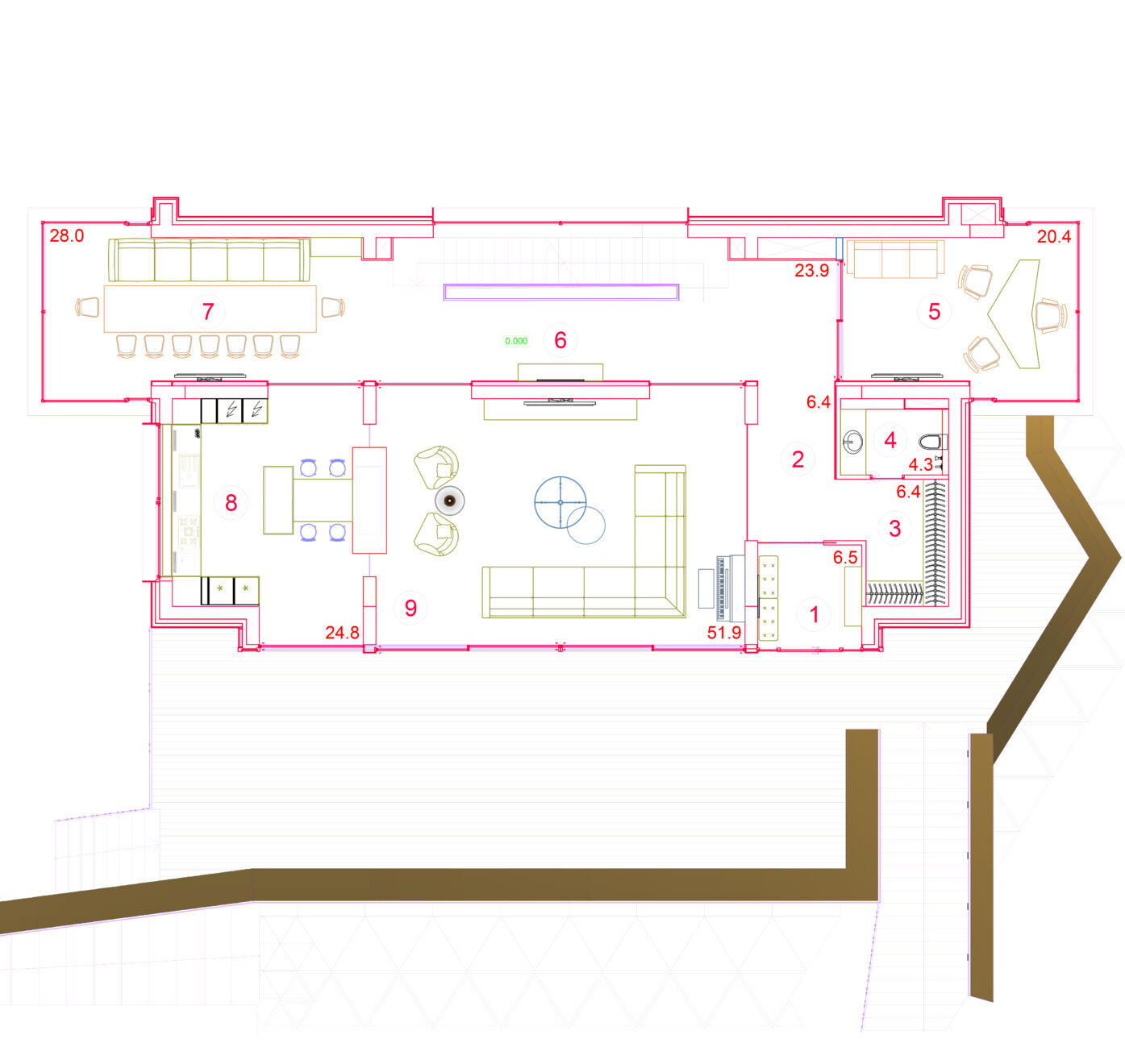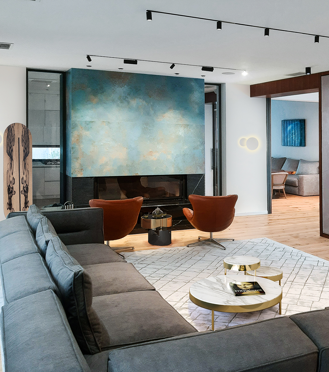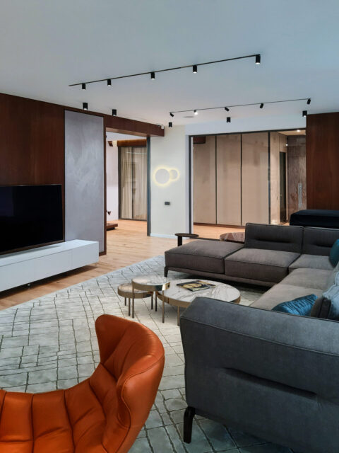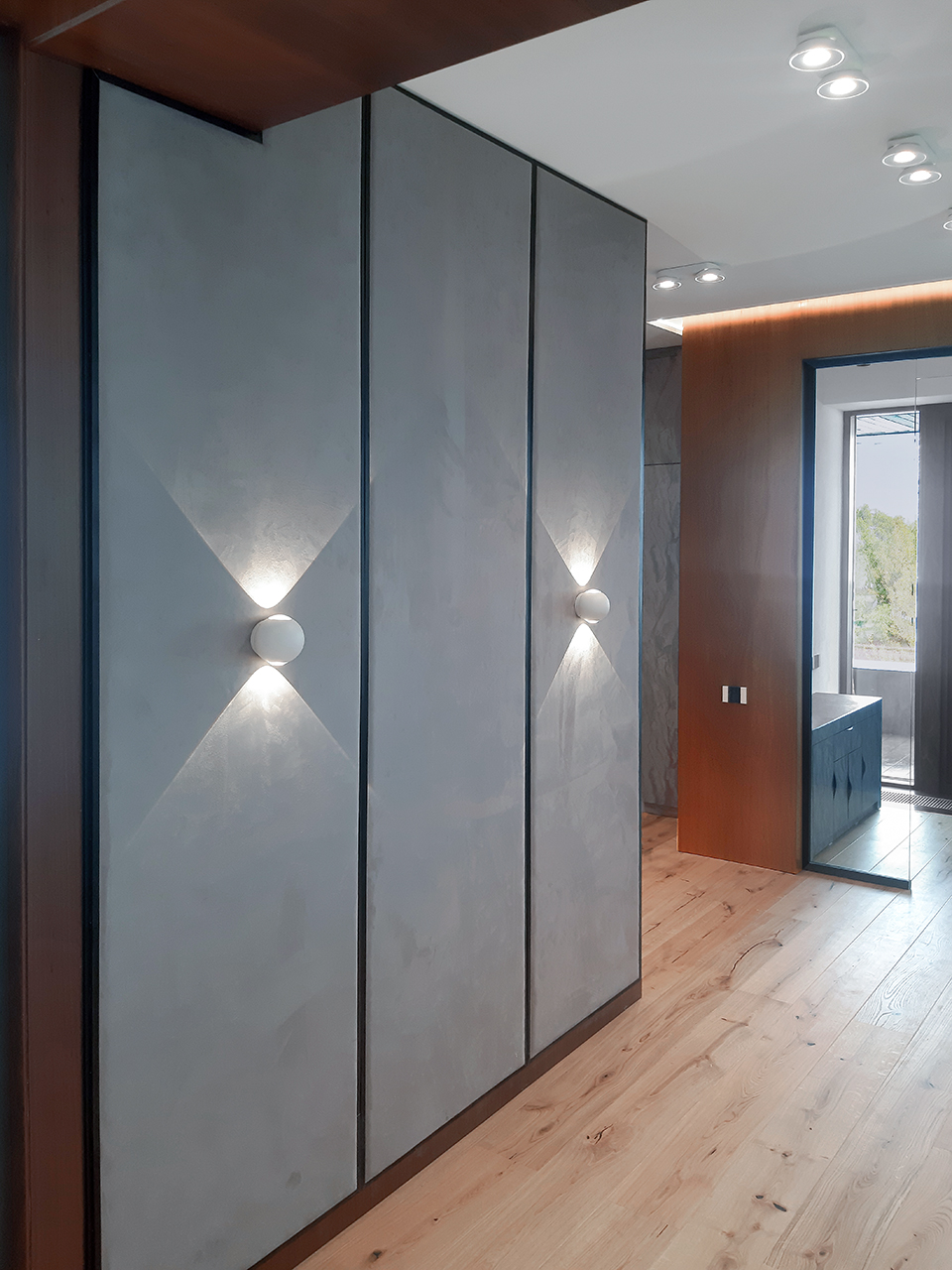 Данный проект был реализован в 2021г. Вилла расположена в верхней части Алматы, в горной местности. Площадью 850 кв.м, имеет 4 этажа, также просторный летний домик. Дом реализован в современной стилистике. Все материалы интерьера — натуральные (мрамор, шпон, металл). В данном проекте были реализованы много оригинальных архитектурных и конструктивных решений.