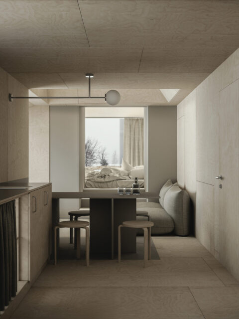 Проект модульного дома для семьи с детьми в Браславском районе. Проект представляет из себя компактное быстровозводимое каркасное жилье для отдыха на приобретенном участке во время строительства основного дома.