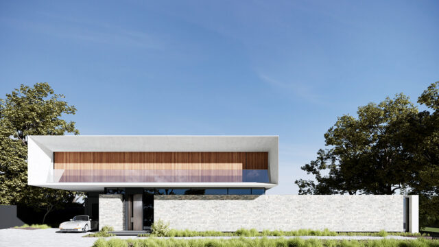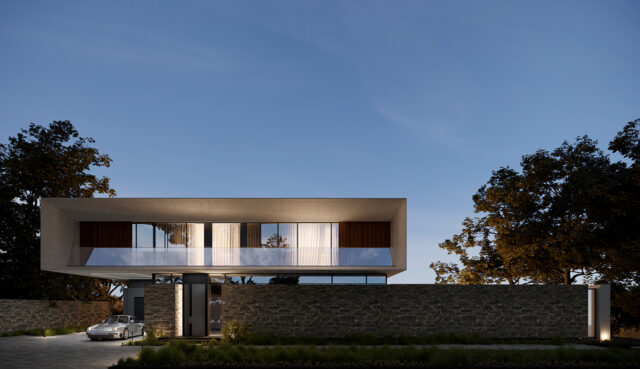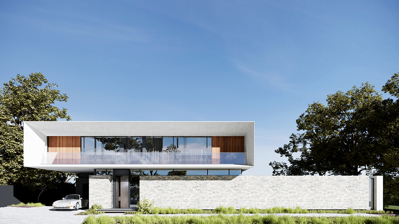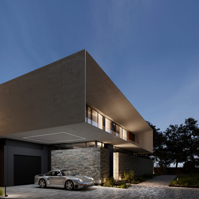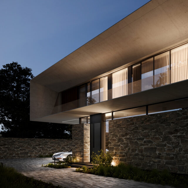Этот частный дом находится в живописном месте с хорошим видом. Участок примыкает к дороге и дом, своим главным фасадом, смотрит практически на юг. Вследствие этого мы использовали сдвижные элементы солнцезащиты на втором уровне, что делает времяпровождение комфортным в любое время и погоду.