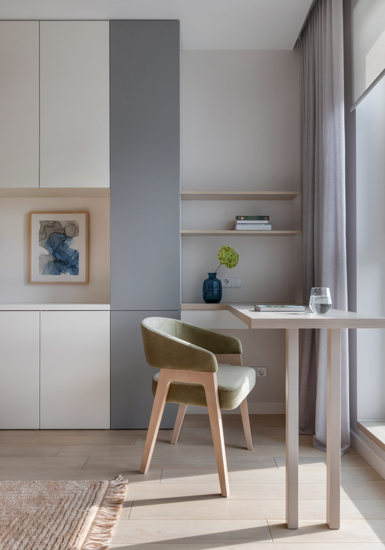 Дизайнер Алёна Никитина создала интерьер, в котором, действительно, ничего не хочется делать, кроме как наслаждаться своими любимыми делами, готовить и простую и изысканную еду, встречать родных и друзей, потягивать хорошее вино, общаться и смеяться о души…и ещё очень много ничего серьёзного, но такого важного для нас и наполняющего радостью жизнь.