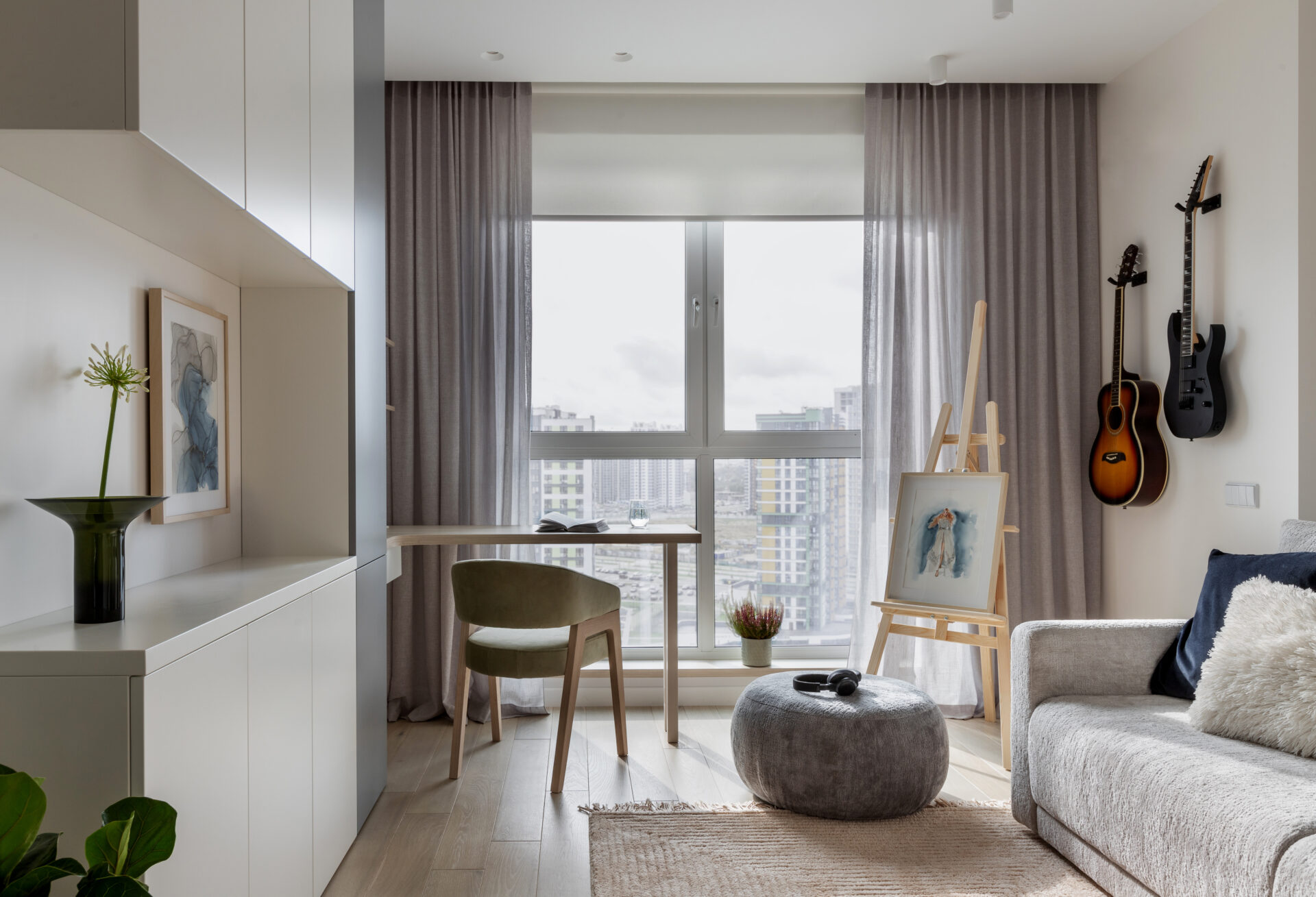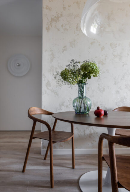 Декор, который я использовала для съёмки, подчеркнул эту философию, наполнил пространство деталями, сделал его многослойным, а искусство — придало интерьеру уникальности и характера.