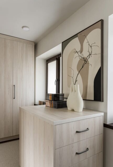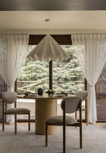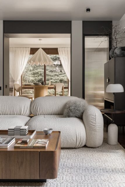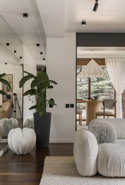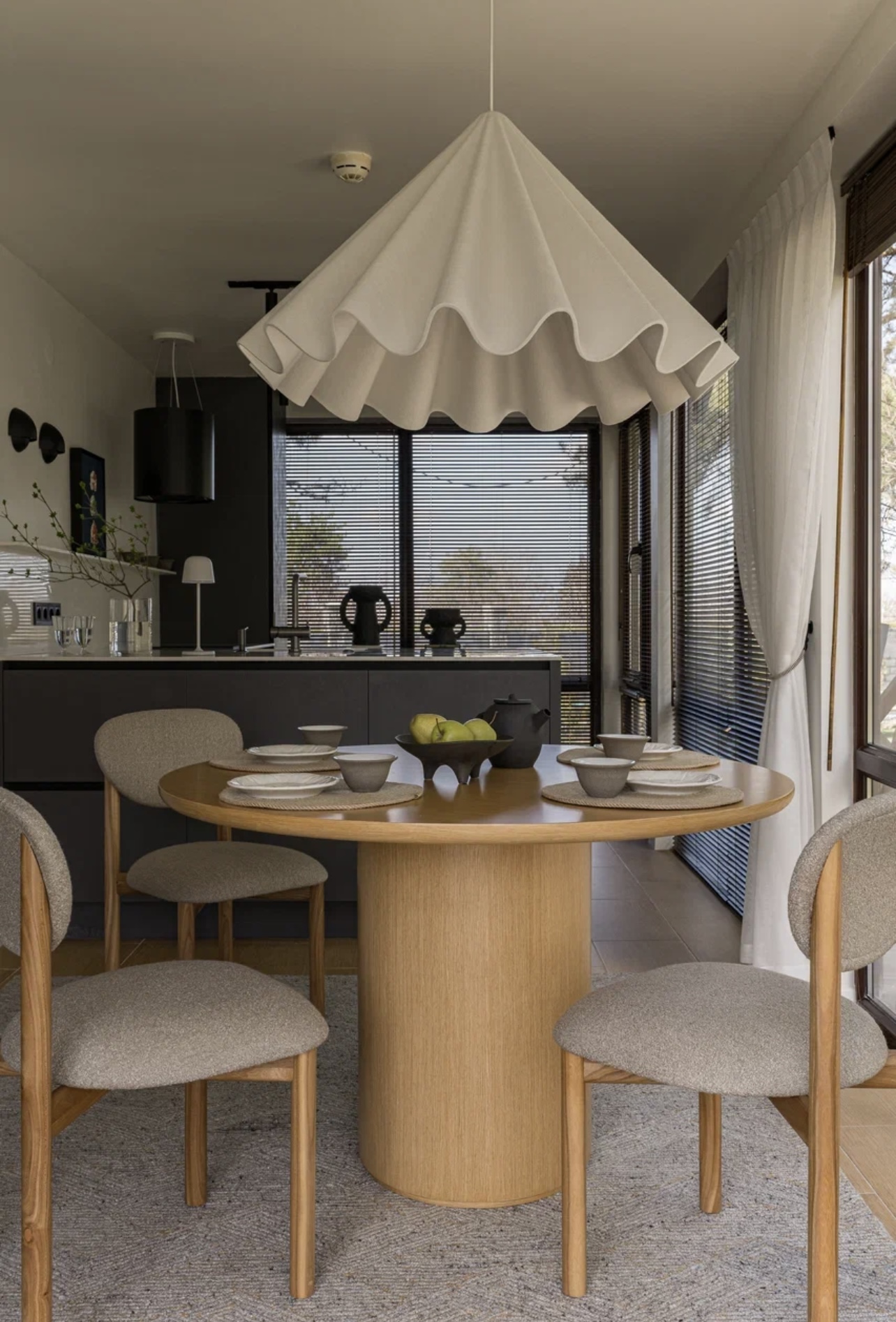 Загородный домик площадью 70 кв м. Домик имеет открытую террасу и находится загородом в небольшом лесном массиве. Был запрос на косметический ремонт, зонирование, комплектацию мебелью и общую стилизацию. Был проведен: ремонт, замена света, заказ всей мебели, текстиля, подбор всего декора. Хотелось создать уютный расслабленный вайб загородного домика с интеллектуально-творческим налетом. Создать дом, где читают книги, любят искусство, где много арта и керамики.
