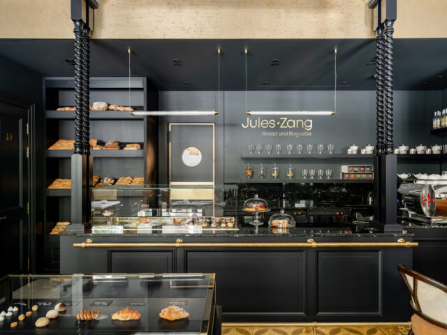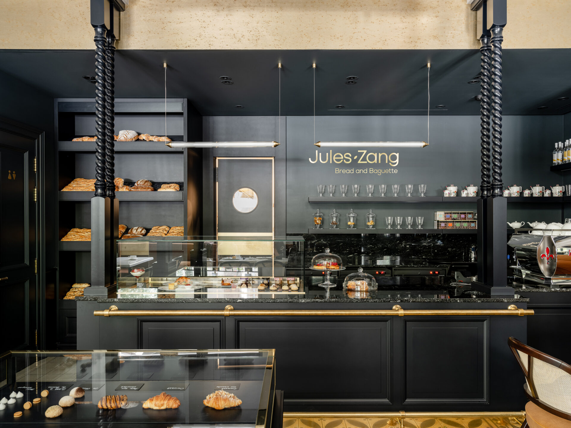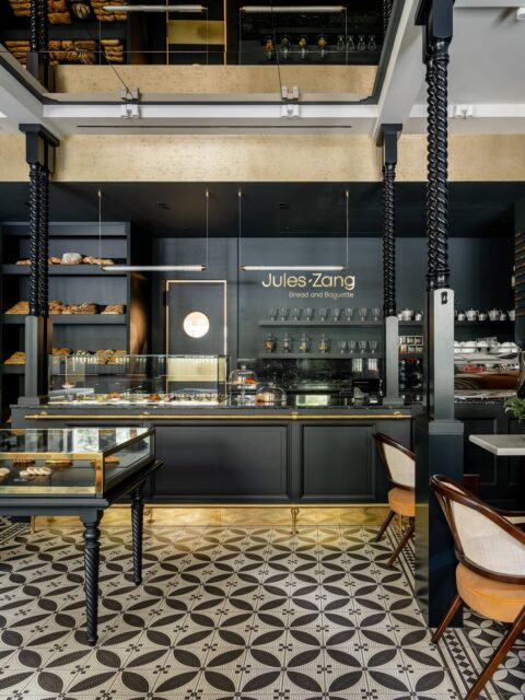 В проекте французской булочной Jules Zang в Москве мы стремились воплотить французскую культуру свежей выпечки. Владелица заведения жила в Ницце и хотела создать место, где можно попробовать такие же ароматные багеты и круассаны, как на Лазурном берегу. Интерьер Буланжерии задумывался вне стилистических рамок или прямых отсылок. Должно было получиться что-то вневременное, очаровательное, с легким флёром эстетики французских колоний.