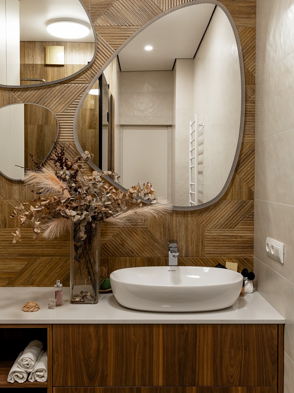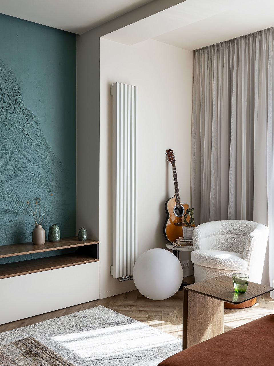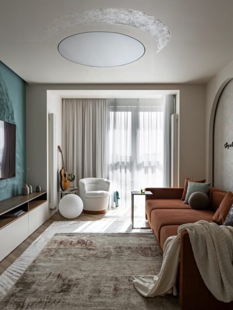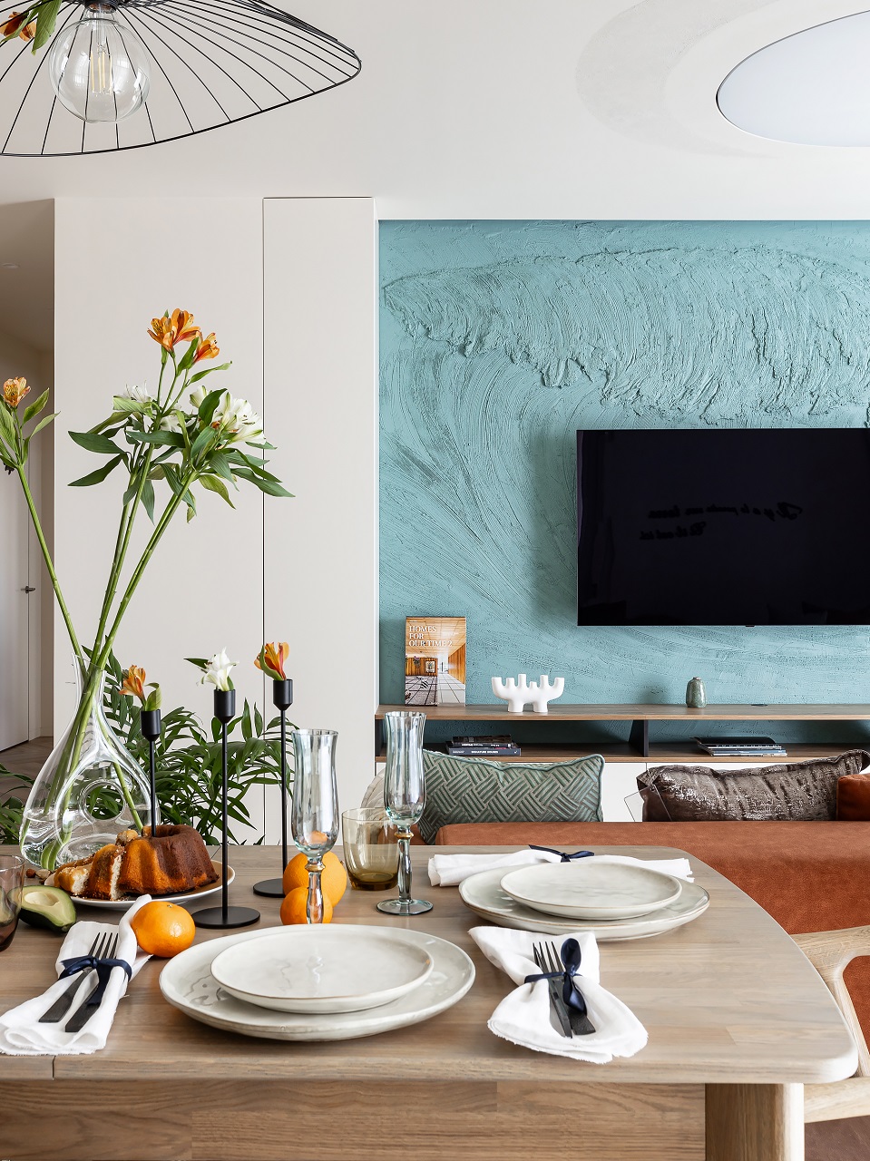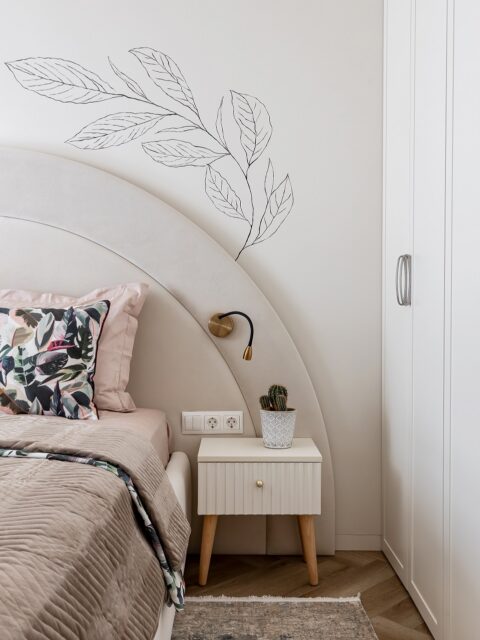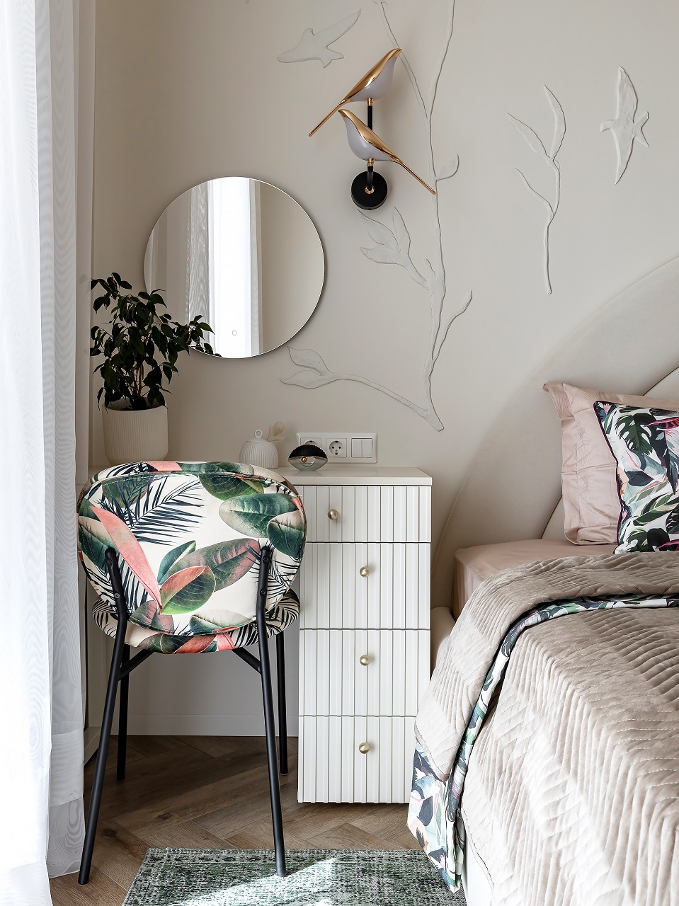 героини проекта и началась зарождаться его история… История, не так давно которая обрела жизнь и стала реальностью! История, в каждой комнате которой автор проекта написал ее частичку собственными руками, подняв над уровнем моря (и гостиной)) игривую волну, поселив волшебных птиц в райский уголок спальни и усыпав стены в нескольких комнатах тропическими гигантскими листьями…