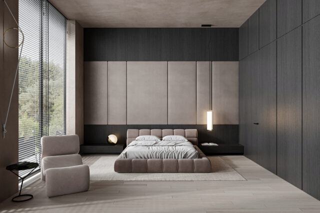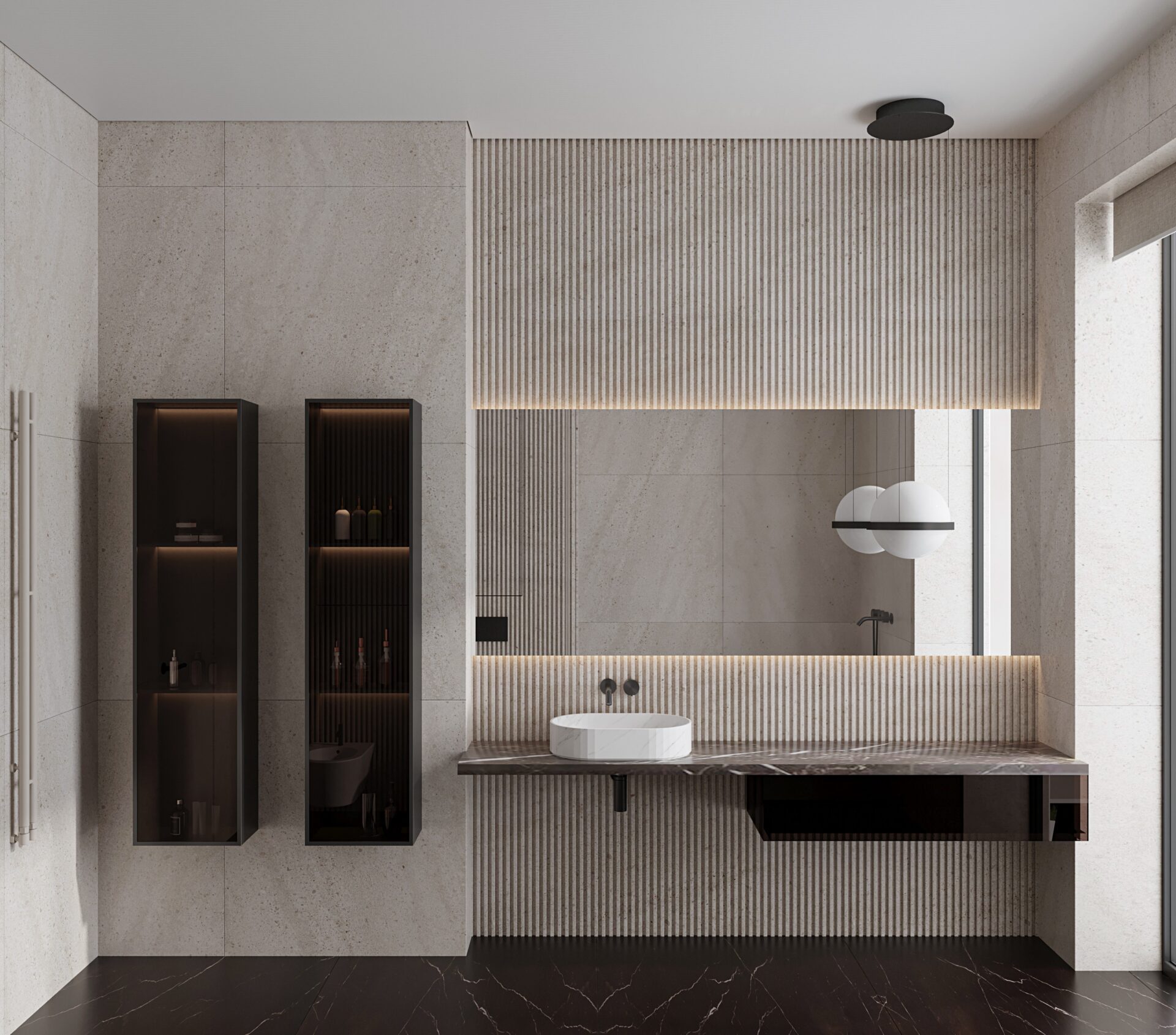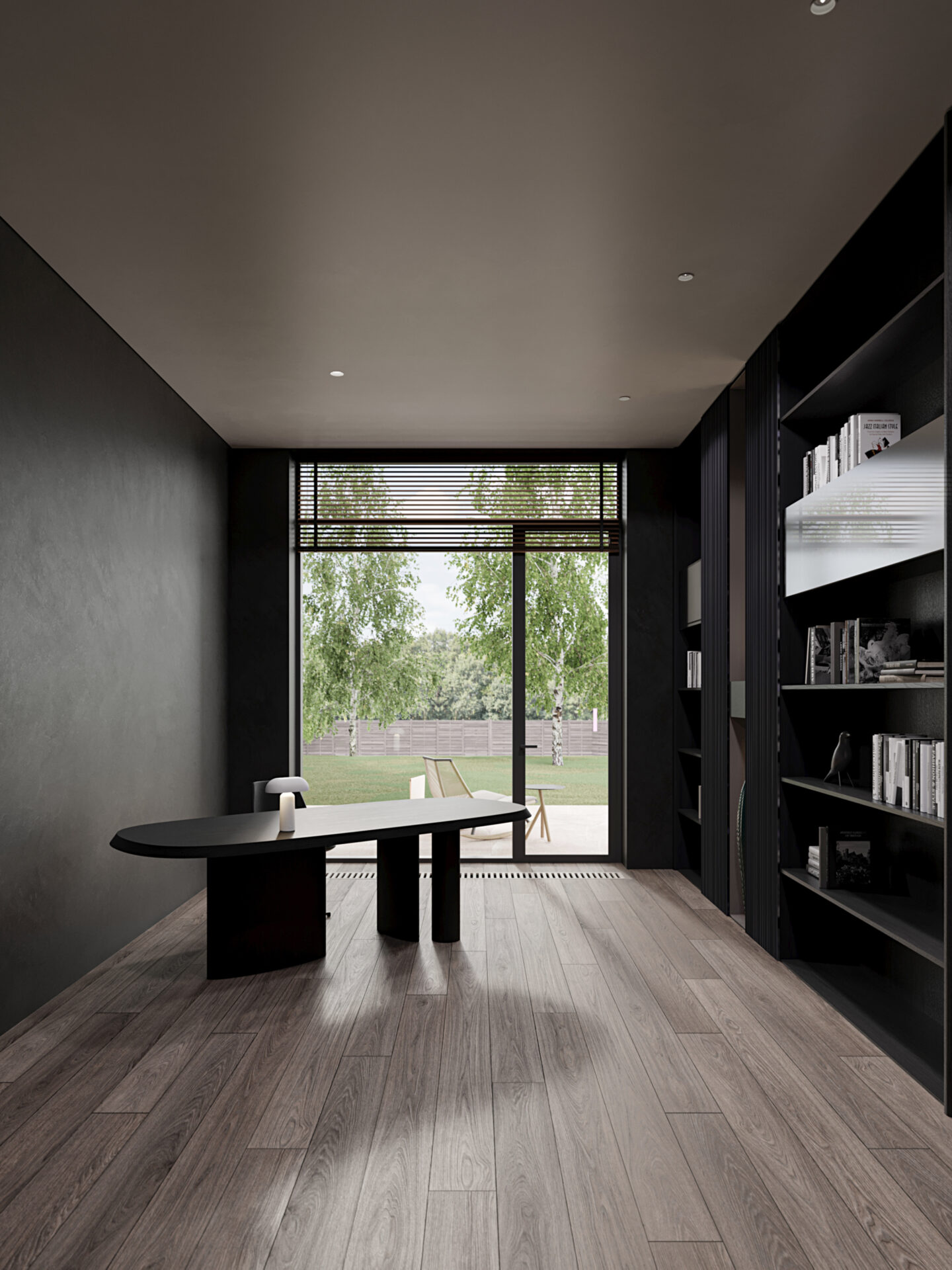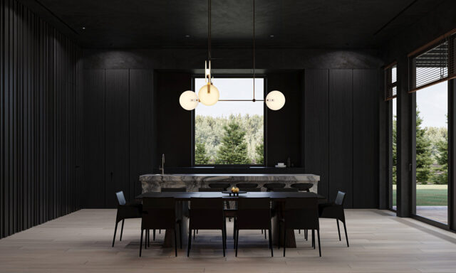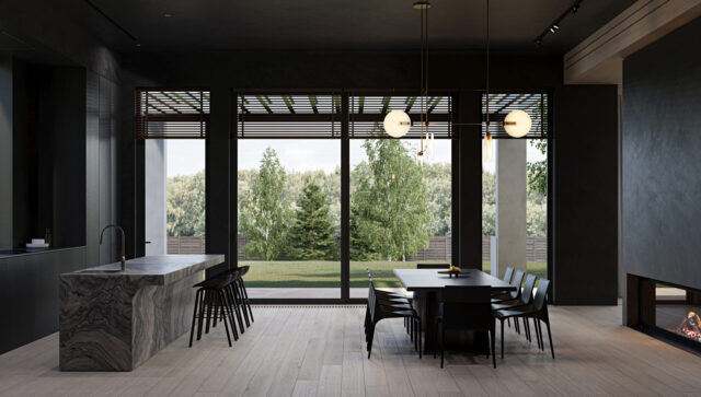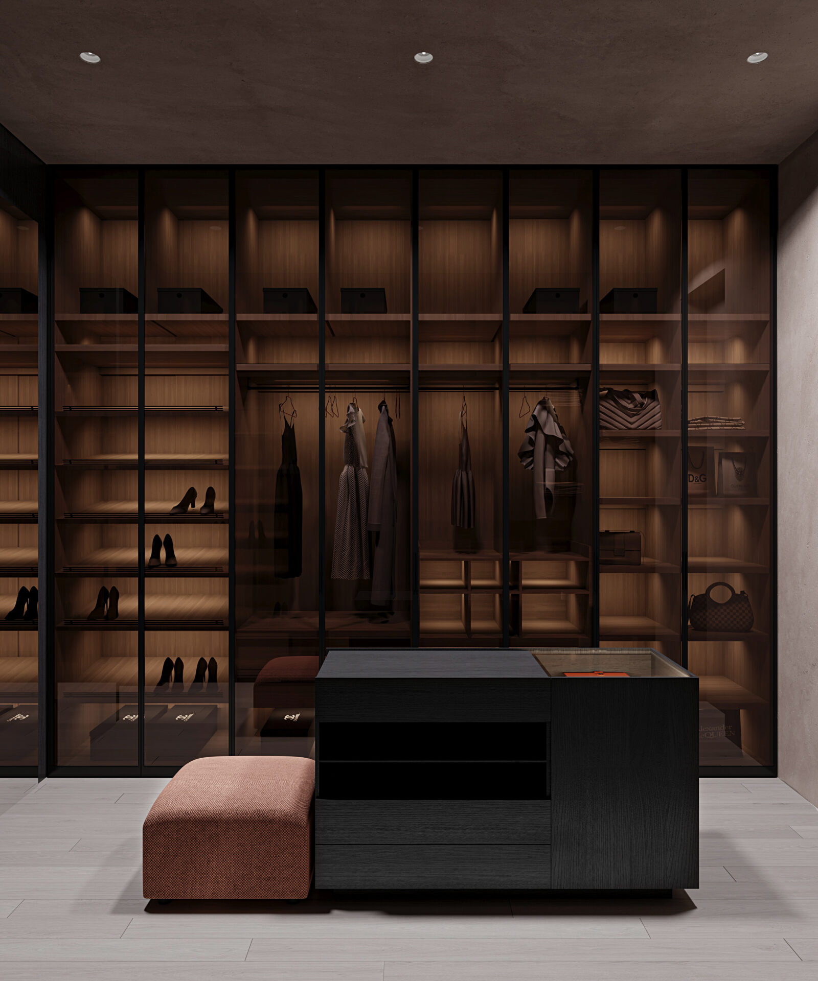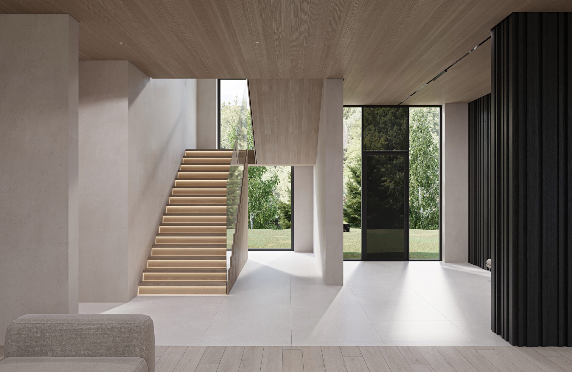 Задачей данного проекта было подчеркнуть современную архитектуру дома и сделать его максимально комфортным для образа жизни заказчиков. Особым пожеланием клиентов было создать интерьер насыщенный темными, обволакивающими оттенками, но при этом сохранить легкость, воздух и свободное пространство. Стилистика интерьера отсылает к эстетике минимализма, в отделке использованы утонченные формы, натуральные материалы и аккуратный баланс природных оттенков и фактур.