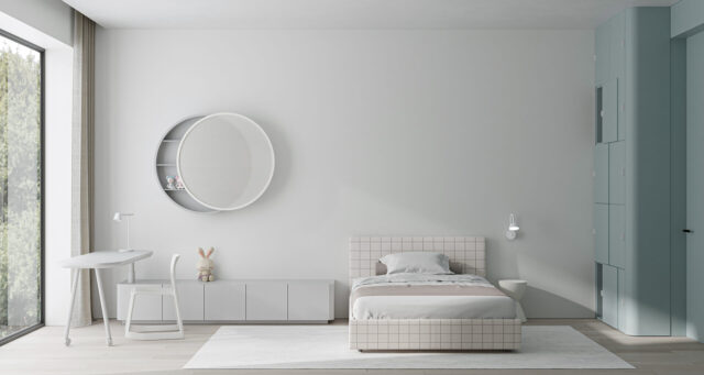 На первом этаже расположились просторная гостиная, совмещенная с кухней и обеденной зоной и с выходом на террасу. Рабочая кухня со всем необходимой техникой, гардеробная и постирочная. Кабинет с видом на речку и гостевая спальня. На втором этаже были запланированы спальни для всей семьи и гостей. Зона родителей спроектирована так, чтобы у каждого супруга была своя гардеробная и ванная комната, из просторной мастер-спальни открывается великолепный вид на лес. Интерьер детских получился особенным: светлым, мягким и универсальным, он соответствует возрасту детей, но при этом долго будет сохранять свою актуальность. Все комнаты дома имеют панорамный вид и выходят на живописный лесной участок заказчиков. Окружающая природа создаёт особую атмосферу, которую дополняет лаконичный интерьер и настраивает на спокойствие, отдых и наполнение энергией.