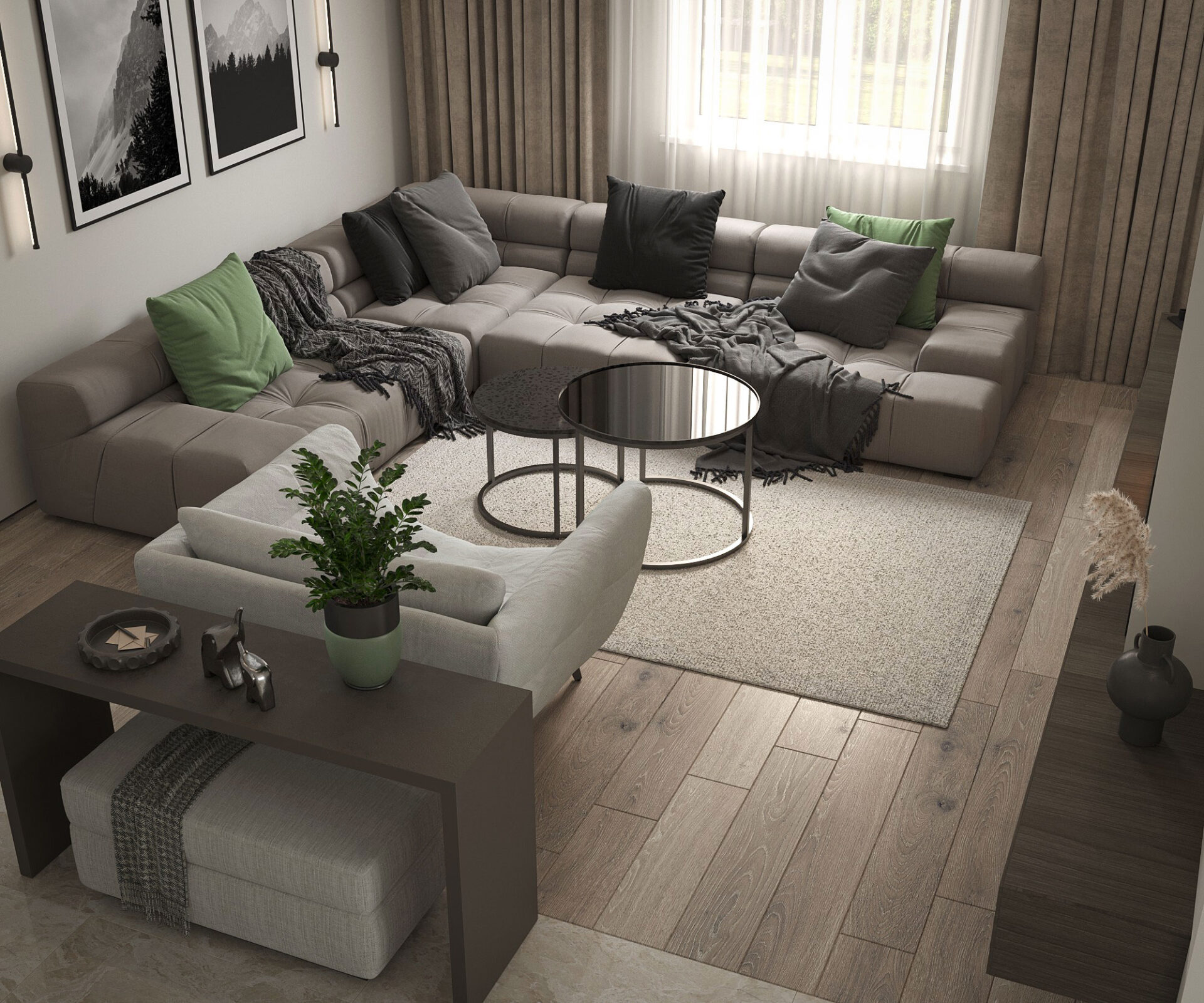 Концепция интерьера мансардного дома 250м2 для семьи из 4 человек отражает уютность и гармонию с природой. Одна из особенностей дома — расположение на опушке леса, что вдохновило меня создать уютное пространство, наполненное теплыми оттенками и натуральными материалами.