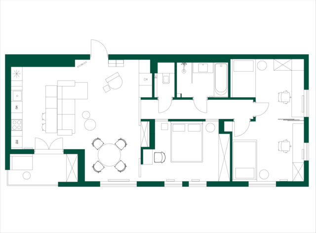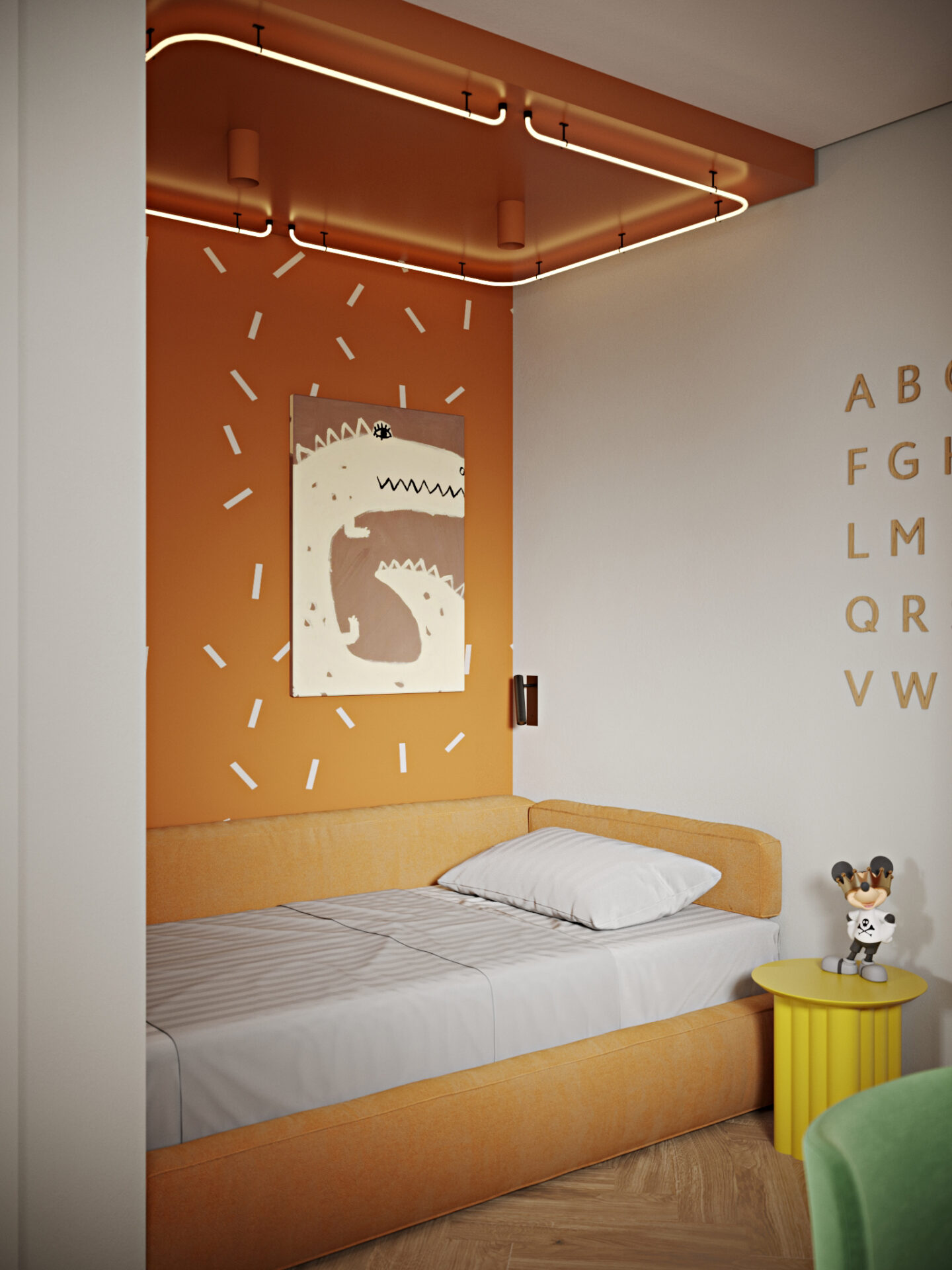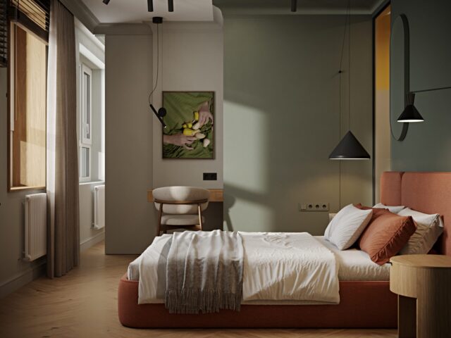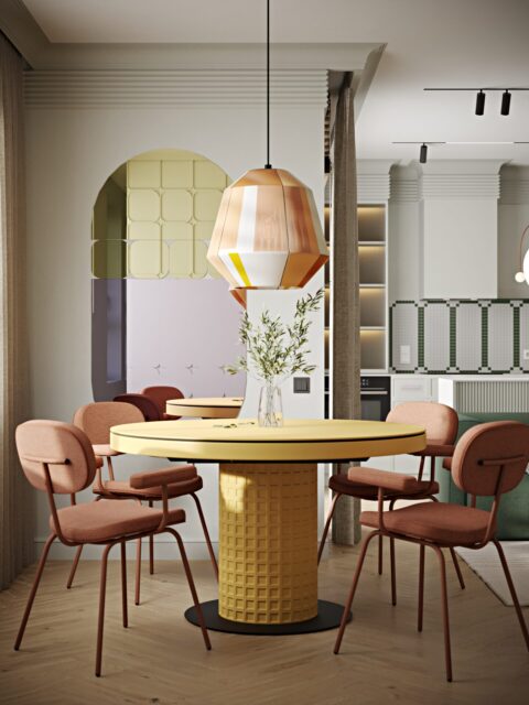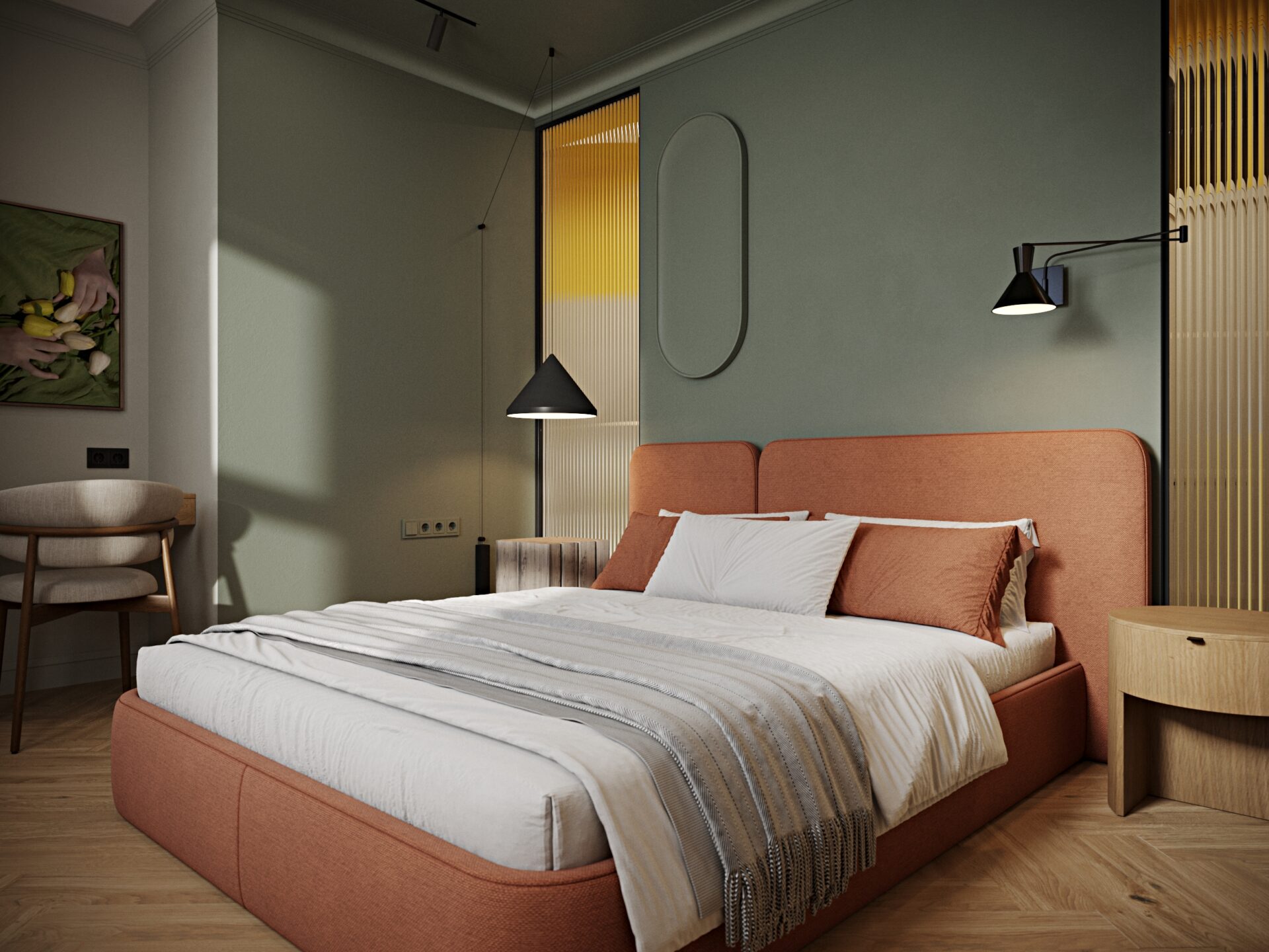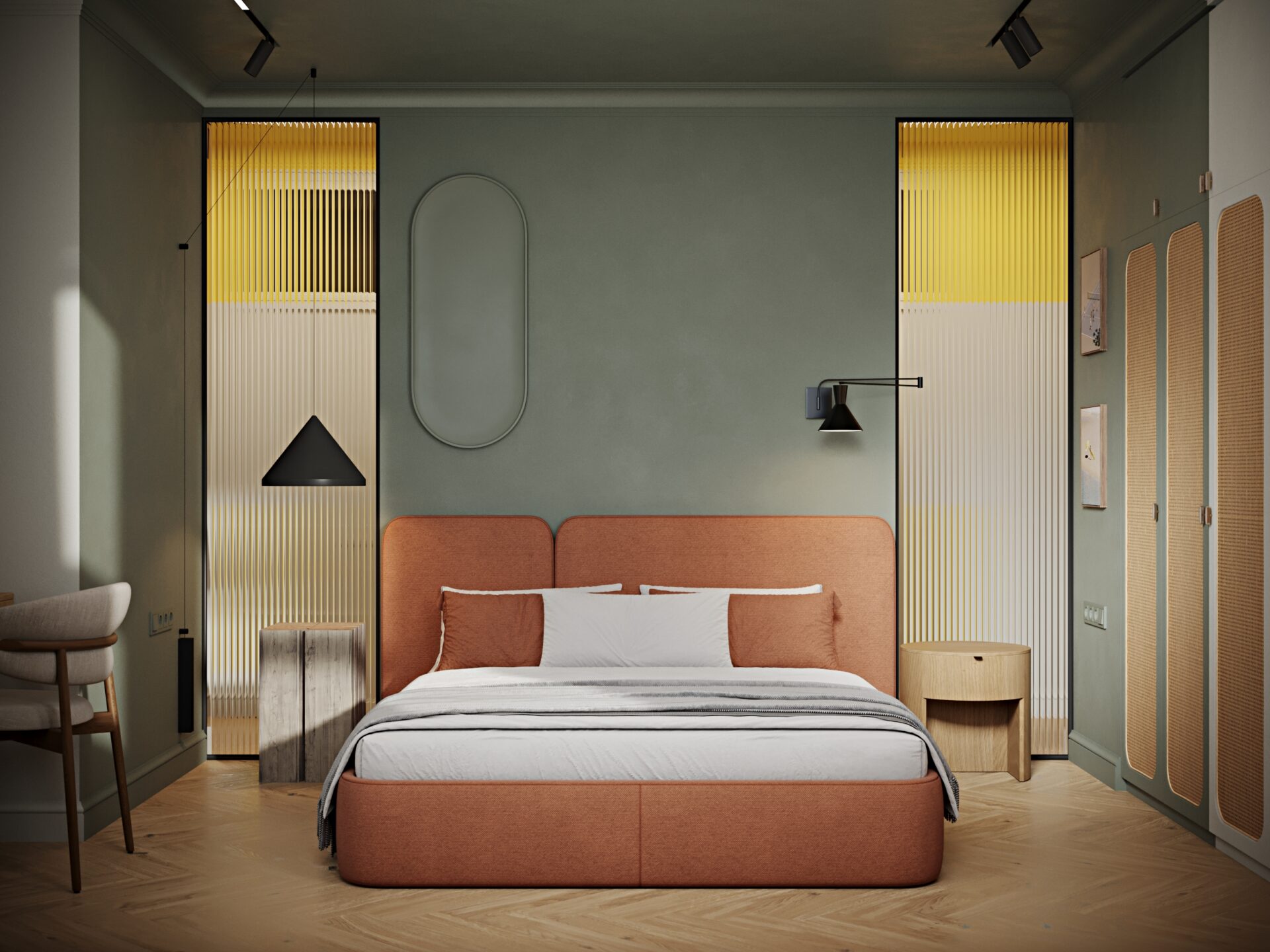 Основной задачей в работе над проектом квартиры в ЖК Левада было создание нетривиального цветного интерьера с индивидуальными, смелыми деталями. При этом важно было сохранить баланс между спокойной натуральностью и насыщенными акцентами.