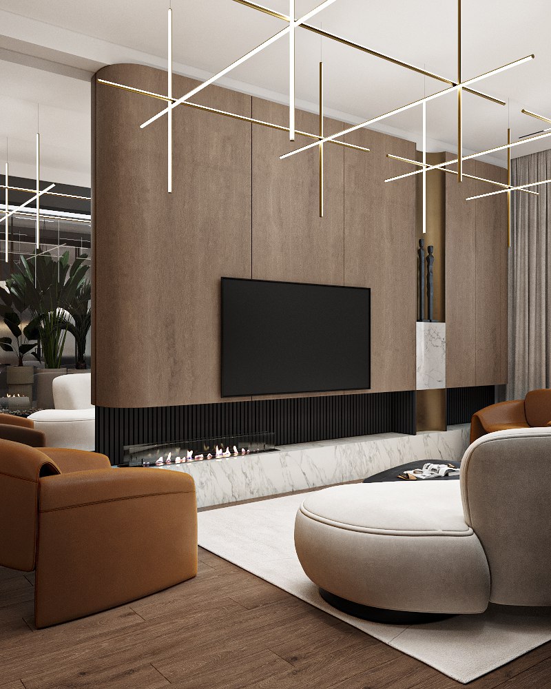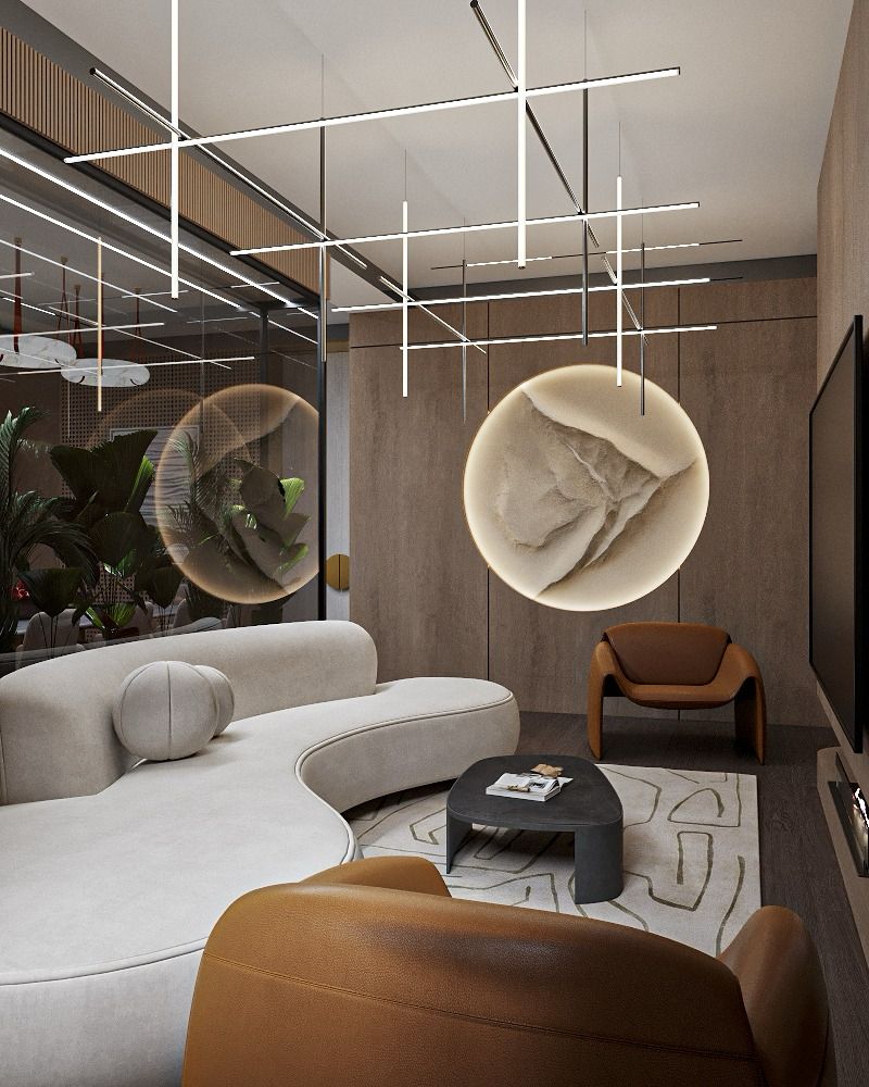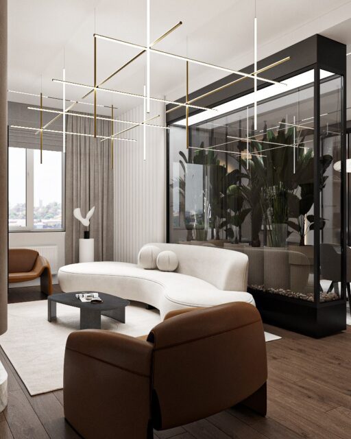 Современный интерьер 6 комн. двухуровневого Пентхауса в Жилом Комплексе Туран с террасой , площадью 250 кв.м.