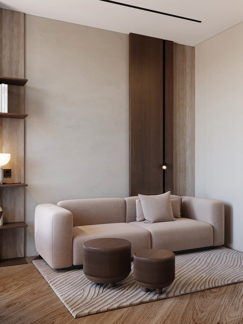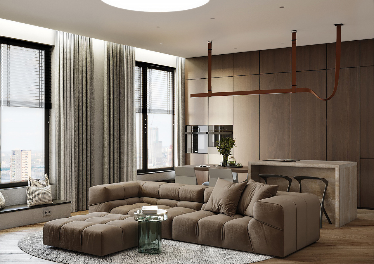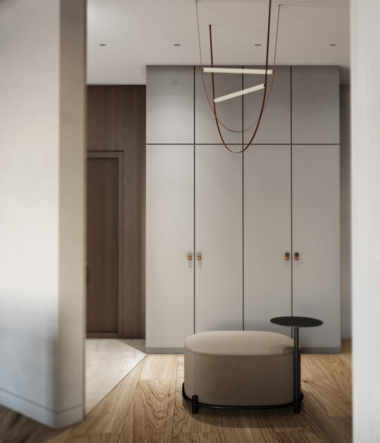 Этот проект был разработан для молодого мужчины, чья деятельность связана с морем. Наша задача заключалась в создании спокойного и уютного интерьера, который в то же время олицетворял бы морскую тематику. С первого взгляда может показаться, что связь с морем незаметна, но так было задумано. Мы стремились внедрить ее аккуратно и ненавязчиво, через формы и материалы.