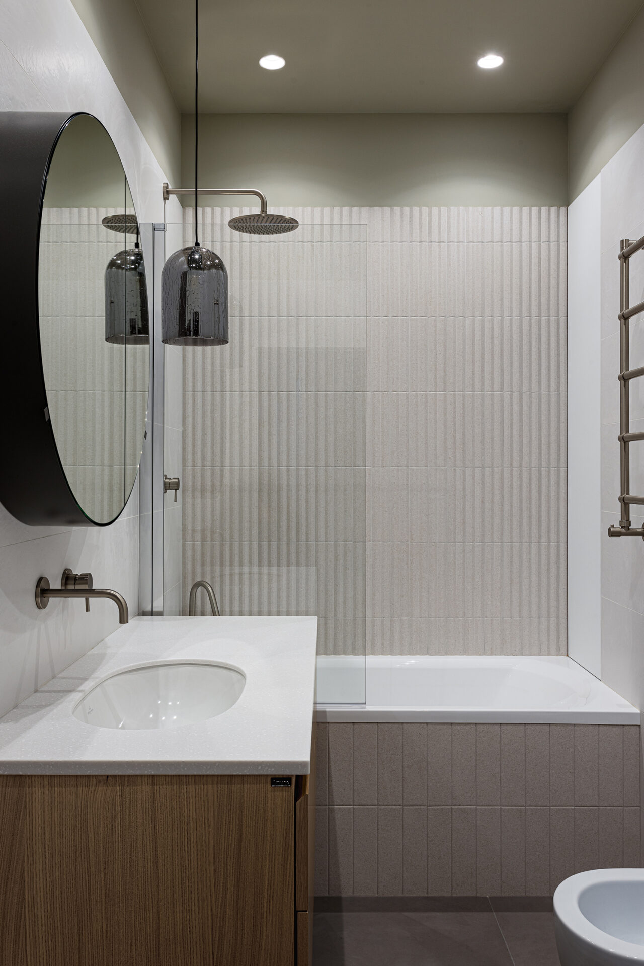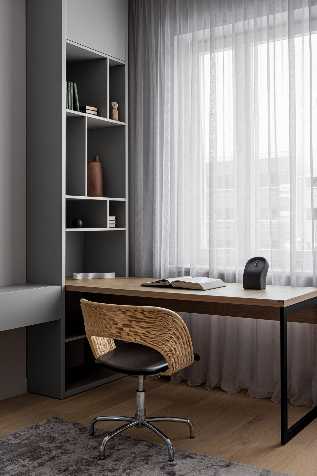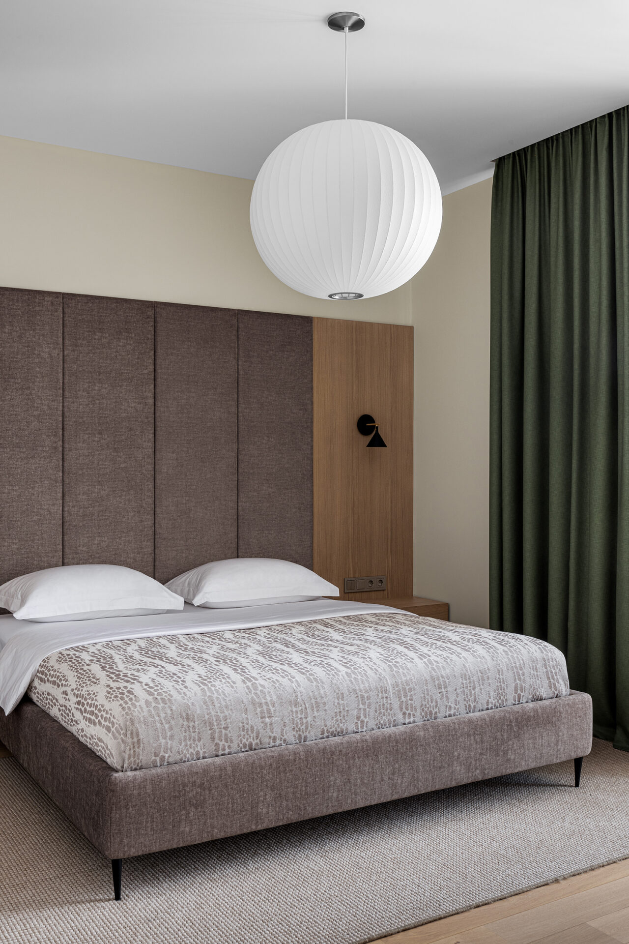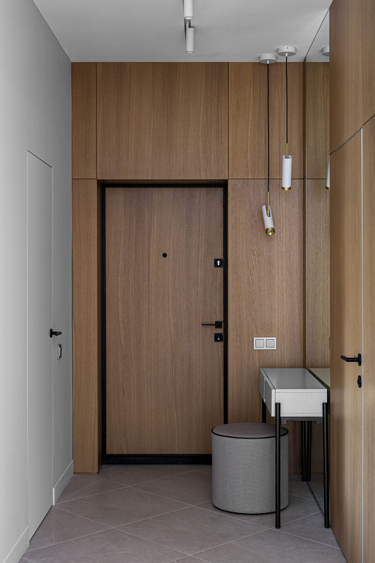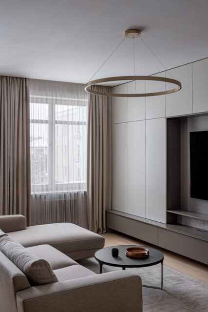 Заказчица с семьей уже много лет живет в частном доме в классической стилистике с ярко-синими акцентами, которая успела за годы всем наскучить, поэтому в новой квартире ей хотелось создать интерьер спокойный, обволакивающий, сотканный из природных цветов и натуральных материалов, пространство вне времени и трендов, которое не потеряет актуальность.