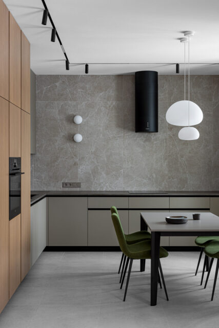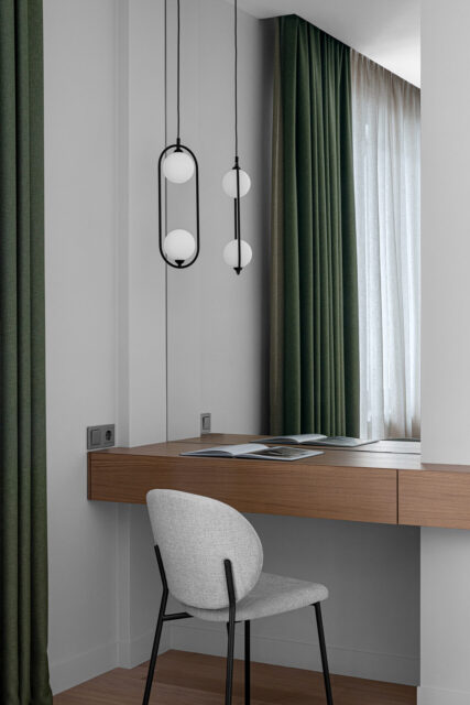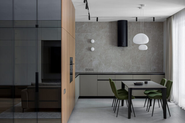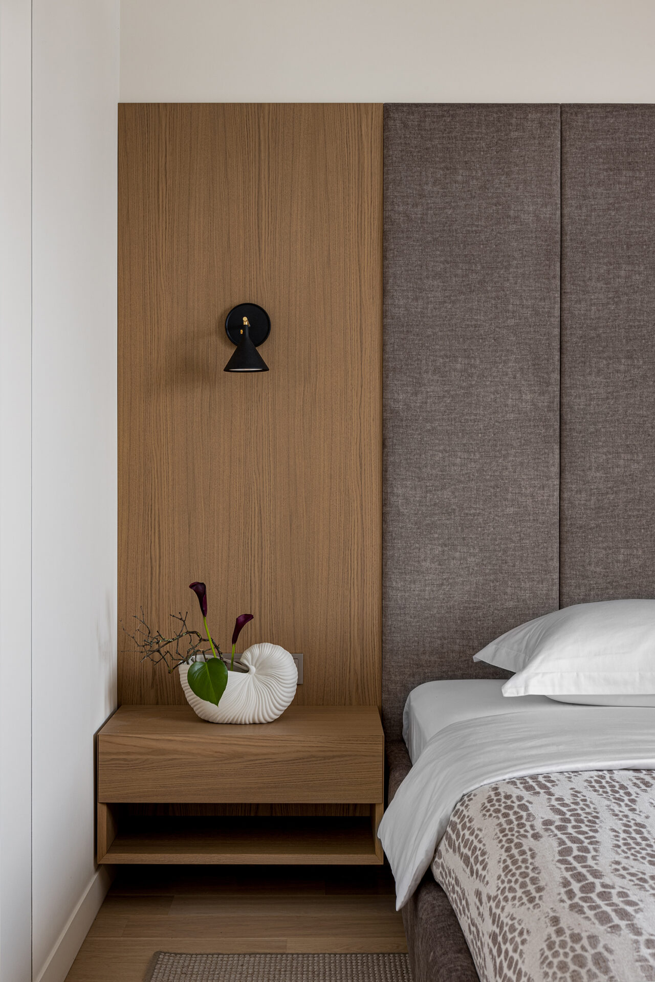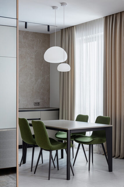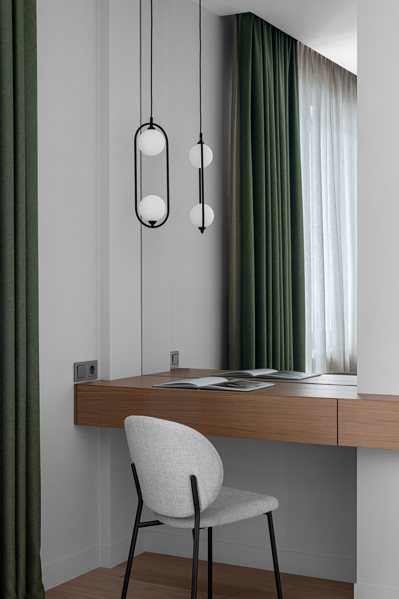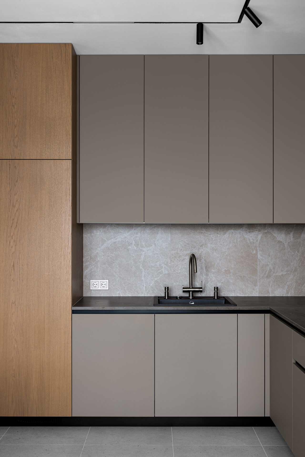 Заказчица с семьей уже много лет живет в частном доме в классической стилистике с ярко-синими акцентами, которая успела за годы всем наскучить, поэтому в новой квартире ей хотелось создать интерьер спокойный, обволакивающий, сотканный из природных цветов и натуральных материалов, пространство вне времени и трендов, которое не потеряет актуальность.