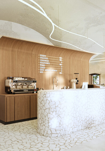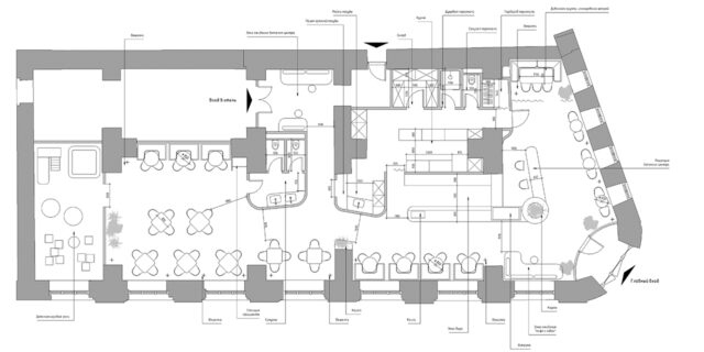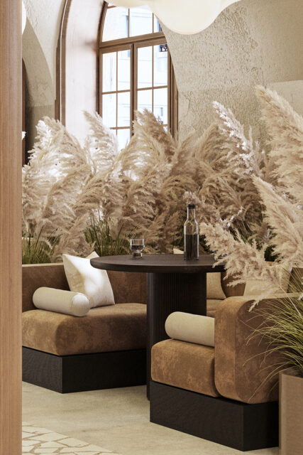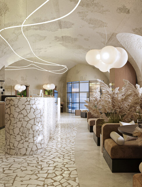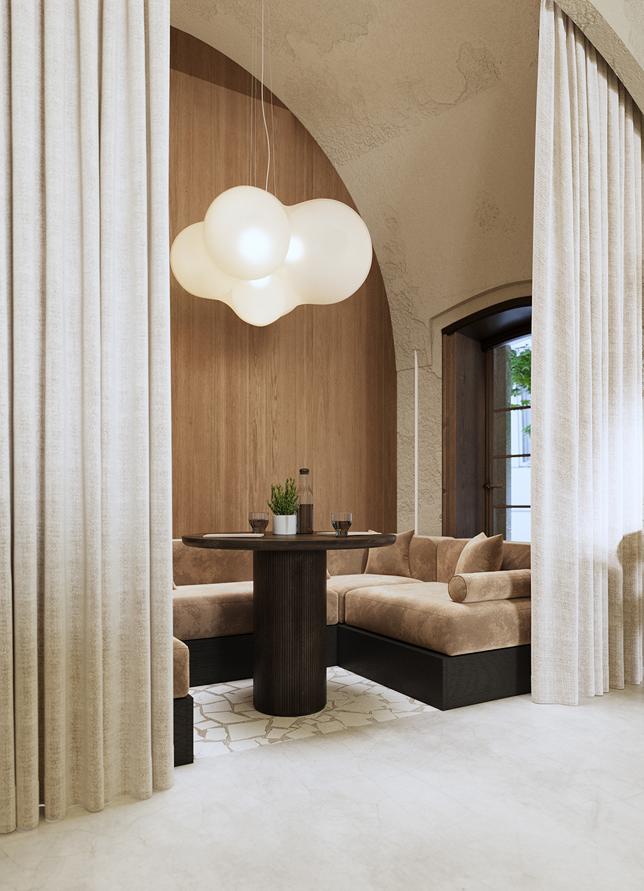 Данный проект ресторана мы разрабатывали в историко-культурном здании старого монастыря. Этот фактор был ключевым при выборе концепции. Ресторан рассчитан на посещение светскими людьми, но должен учитывать «дух» места.