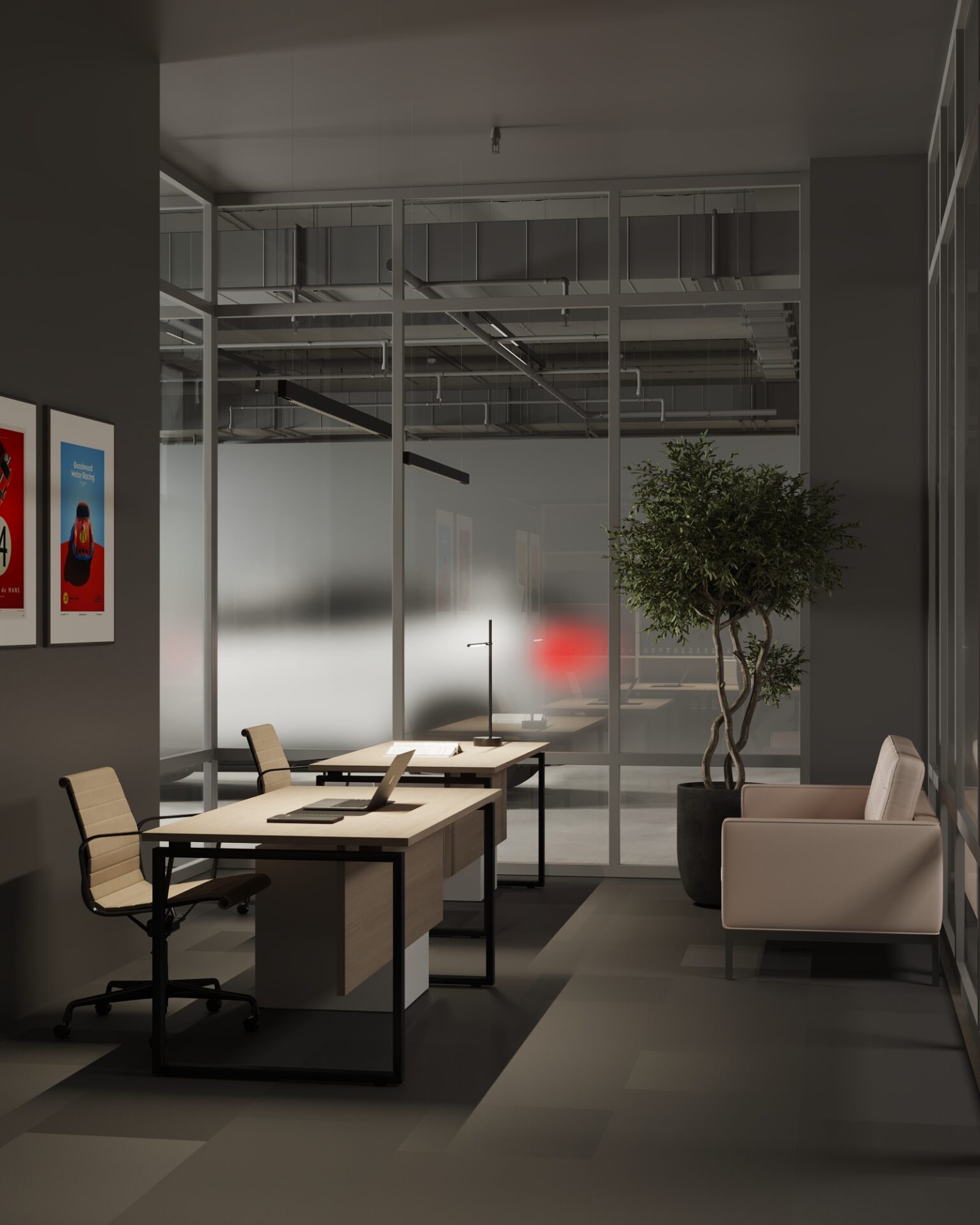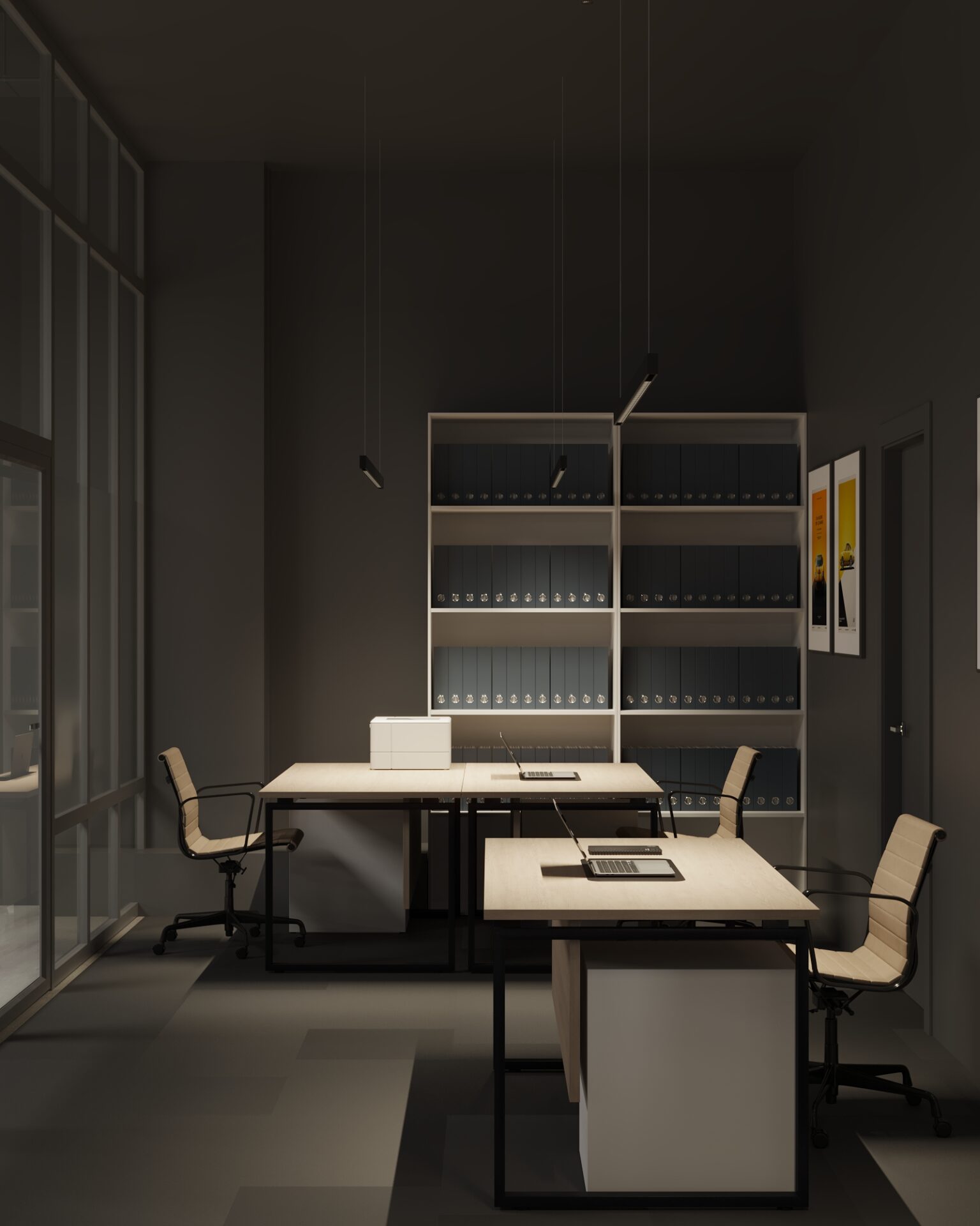Офисная часть продолжает основной лейтмотив зоны работы менеджеров с клиентами.