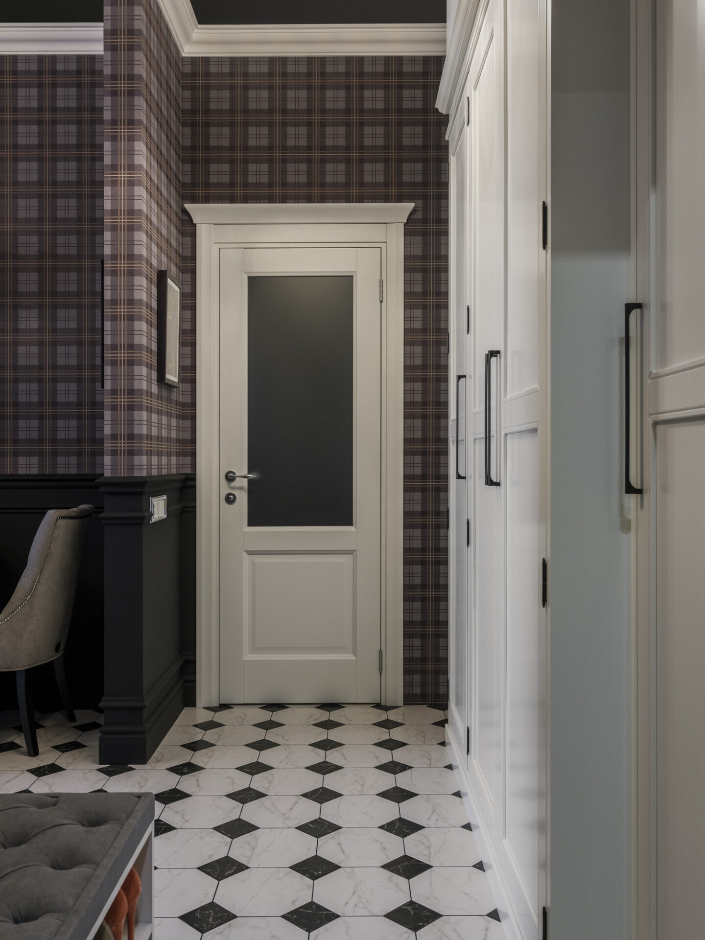 Квартира для активной женщины которая много путешествует, любит красиво одеваться , посещать театры и музеи. Квартира выполнена в английском современном стиле с использованием нестандартных цветовых и планировочных решений.
