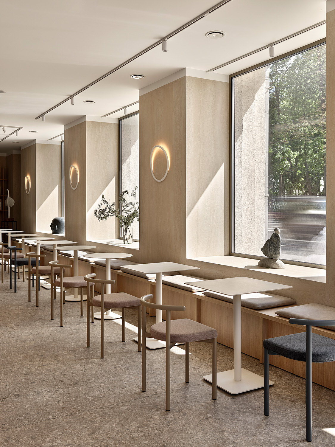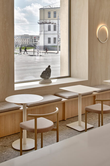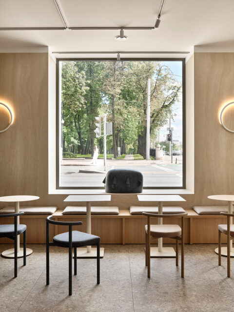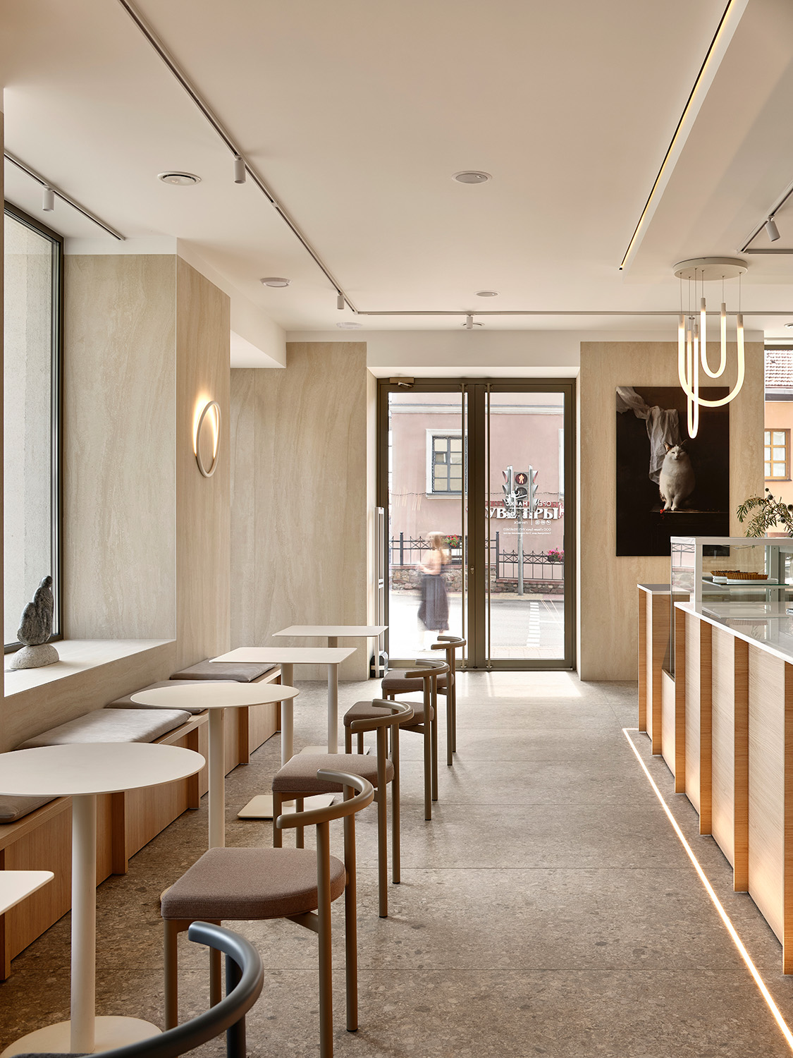 Основная задача — реализовать пространство, которое гармонично объединит поколения, бизнес встречи с приятными посиделками, где быстро можно взять кофе с собой и неспешно позавтракать глядя на городскую суету. Место, куда хочется прийти с детьми, так как их эмоции дополняют, а не мешают посетителям! Где любимых питомцев обласкают в море комплиментов и улыбок. Так и случилось, соседи спускаются за утренним кофе со свежими булочками с корицей, кто-то работает, кто-то заливается смехом либо провожает вечер с бокалом вина.