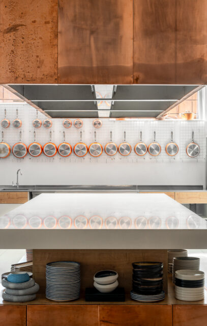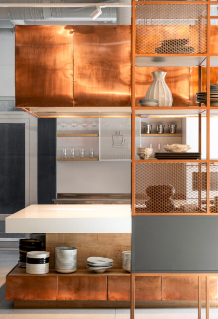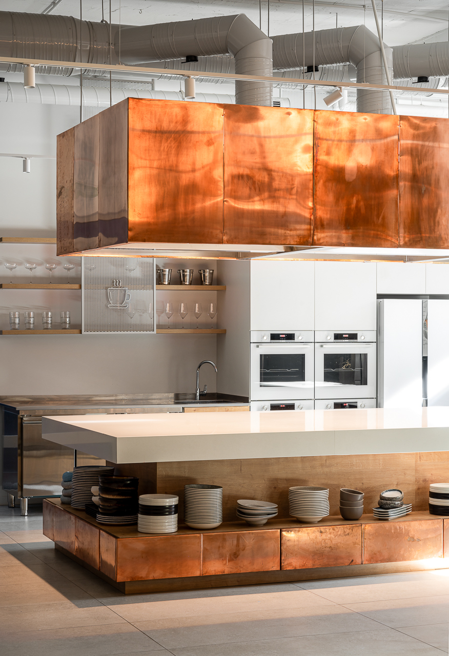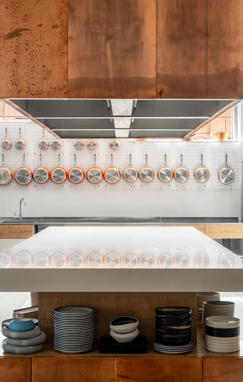 Вдохновением для проекта стала медь, как один из первых материалов использованных человеком, в том числе и для приготовления пищи. Удивительный материал, который обладает не только хорошими утилитарными, но и яркими визуальными свойствами. «Старение» меди непредсказуемо, как и поварское искусство.