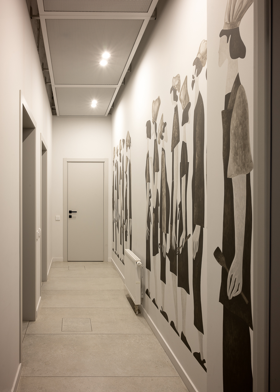 Над росписью в санузле и картиной работала беларуская художница Полина Корзун-Фомченко. В сюжет росписи и картины мы взяли главного человека кухни, повара.